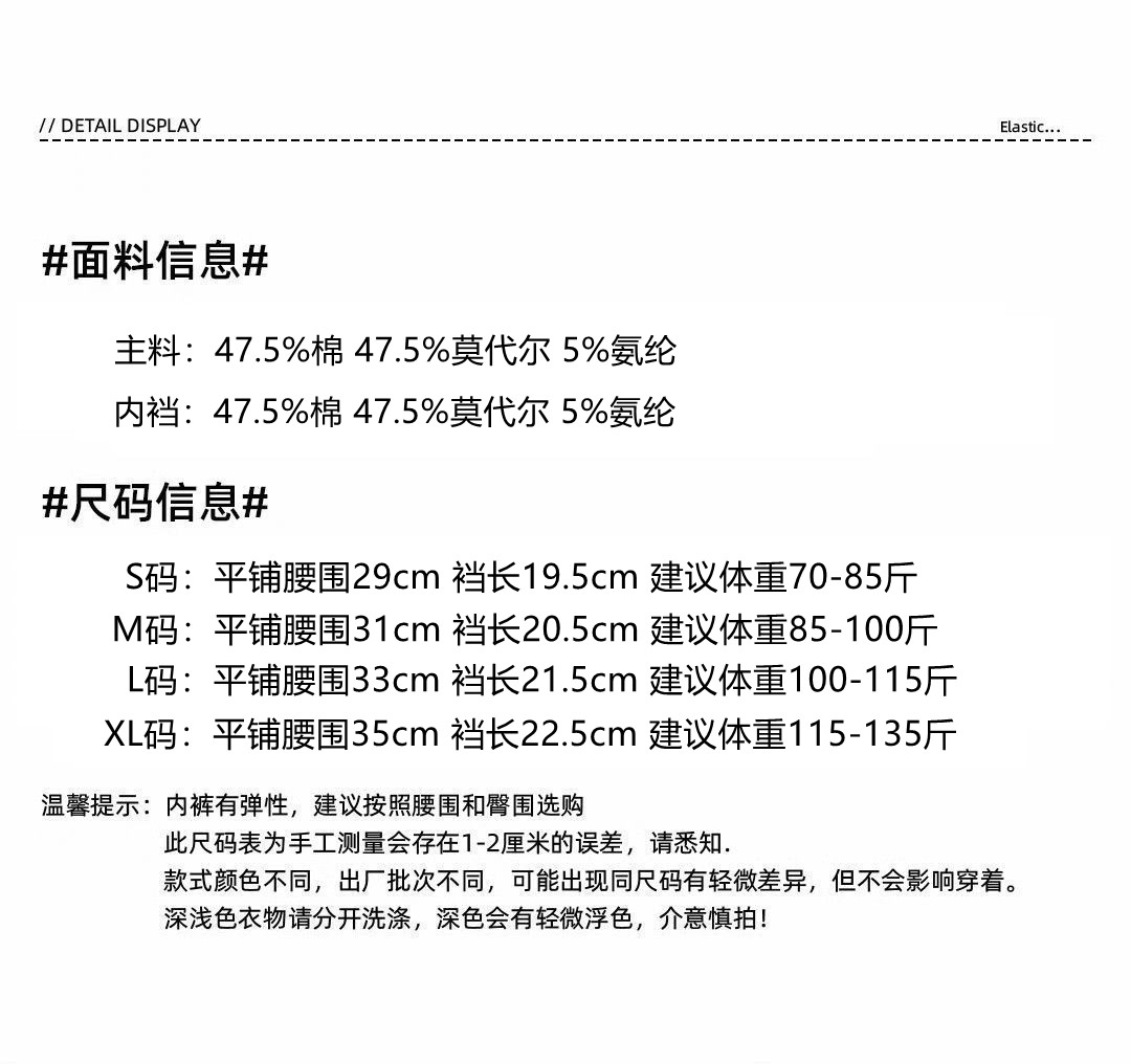 | 材質成分 | 棉47.5% 莫代爾纖維(莫代爾)47.5% 聚氨酯彈性纖維(氨綸)5% |