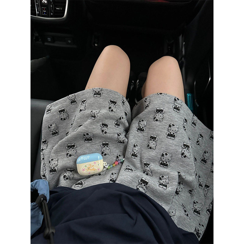 可愛卡通Kitty貓短褲女夏季新款高腰家居休閒濶腿寬鬆外穿運動褲