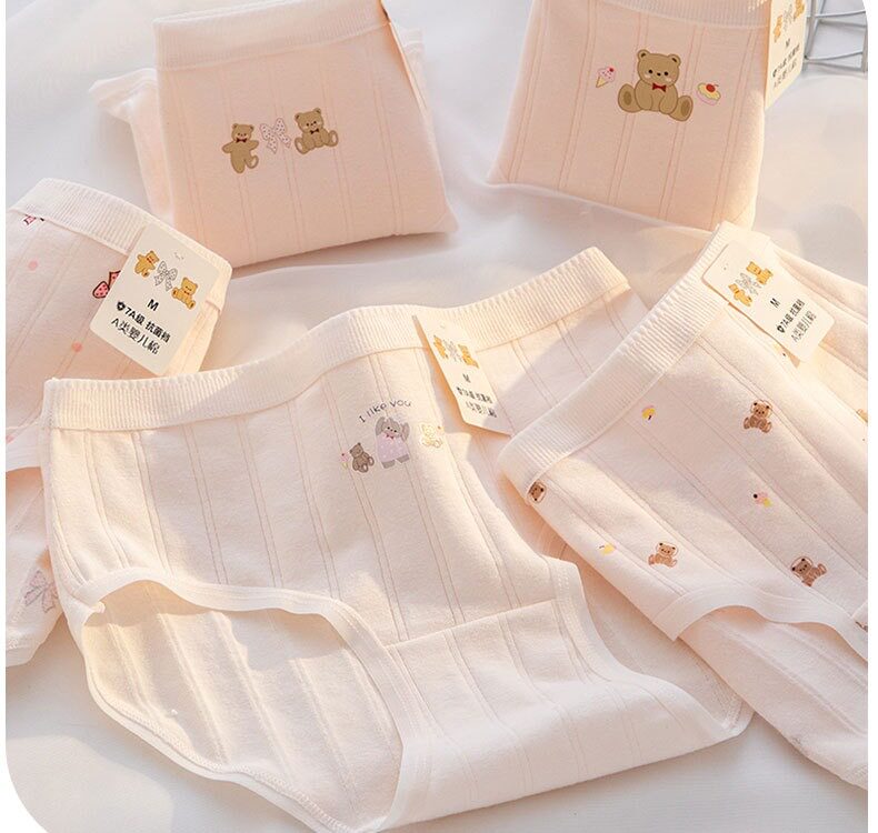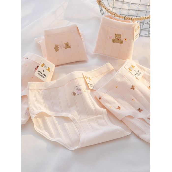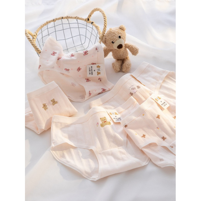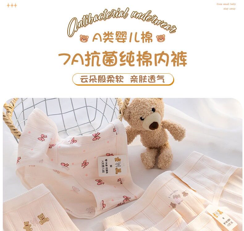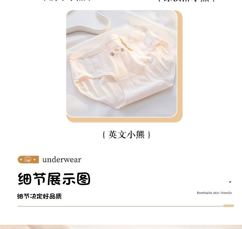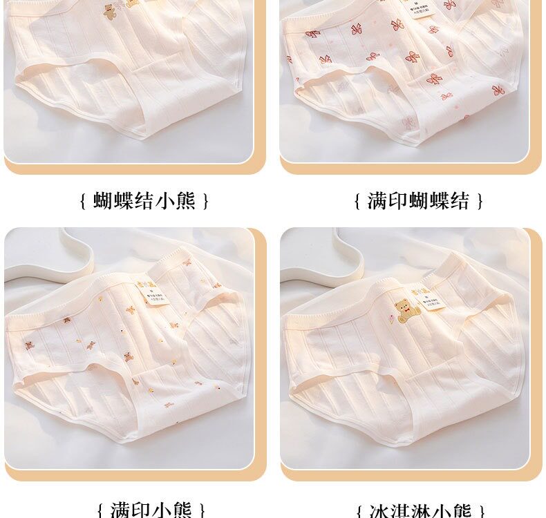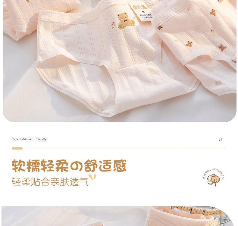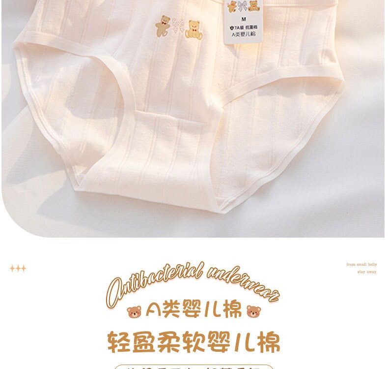女士內褲純棉抗菌襠A類嬰兒棉少女學生可愛卡通小熊中腰三角褲頭