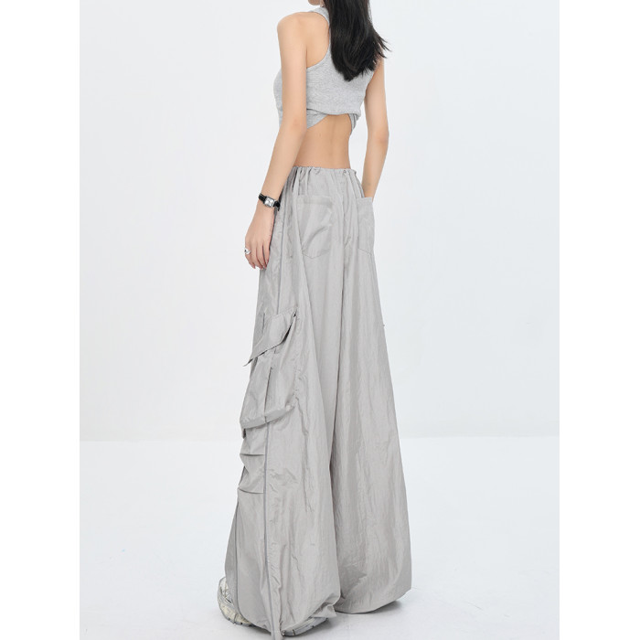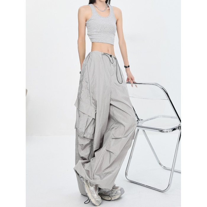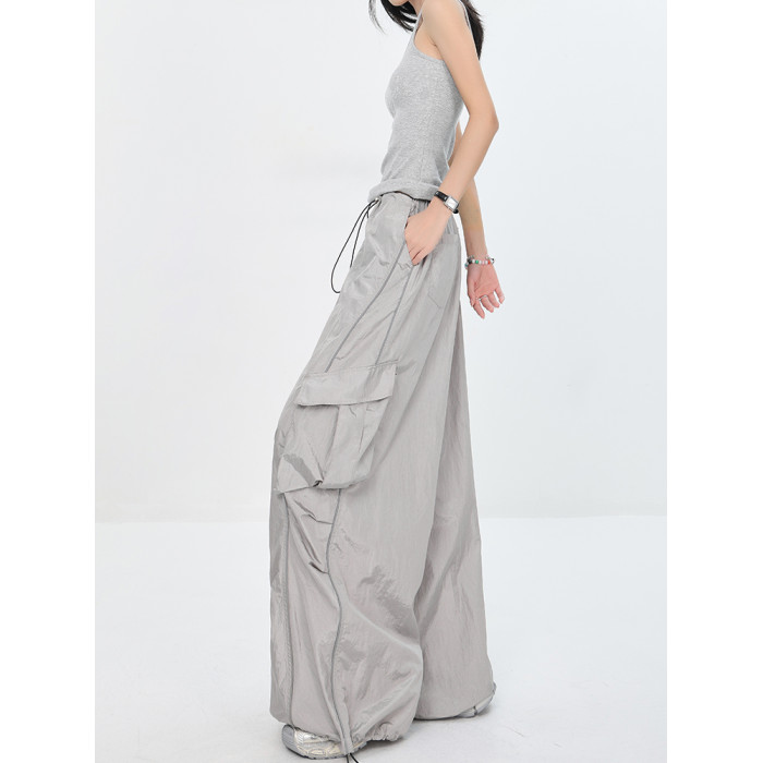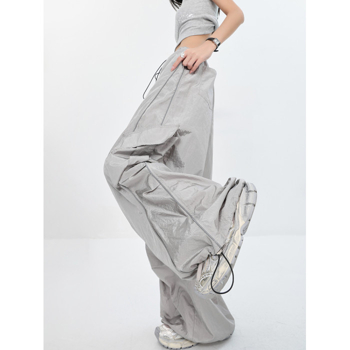 KEN STUDIO夏秋新款美式辣妹爵士舞褲子傘兵速乾薄款灰色工裝褲女