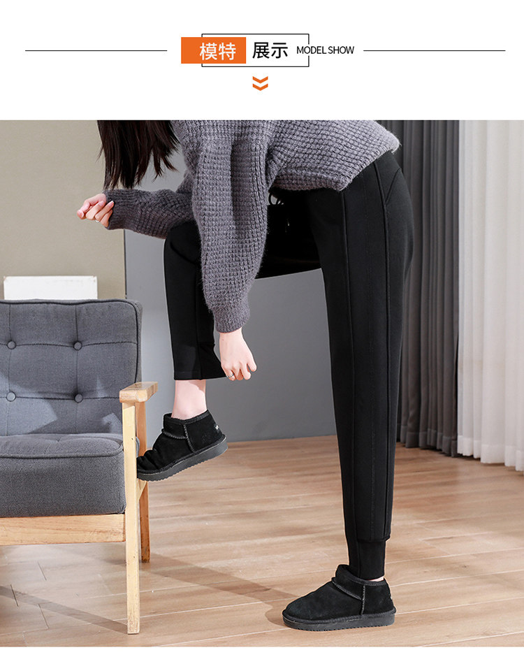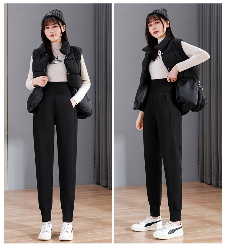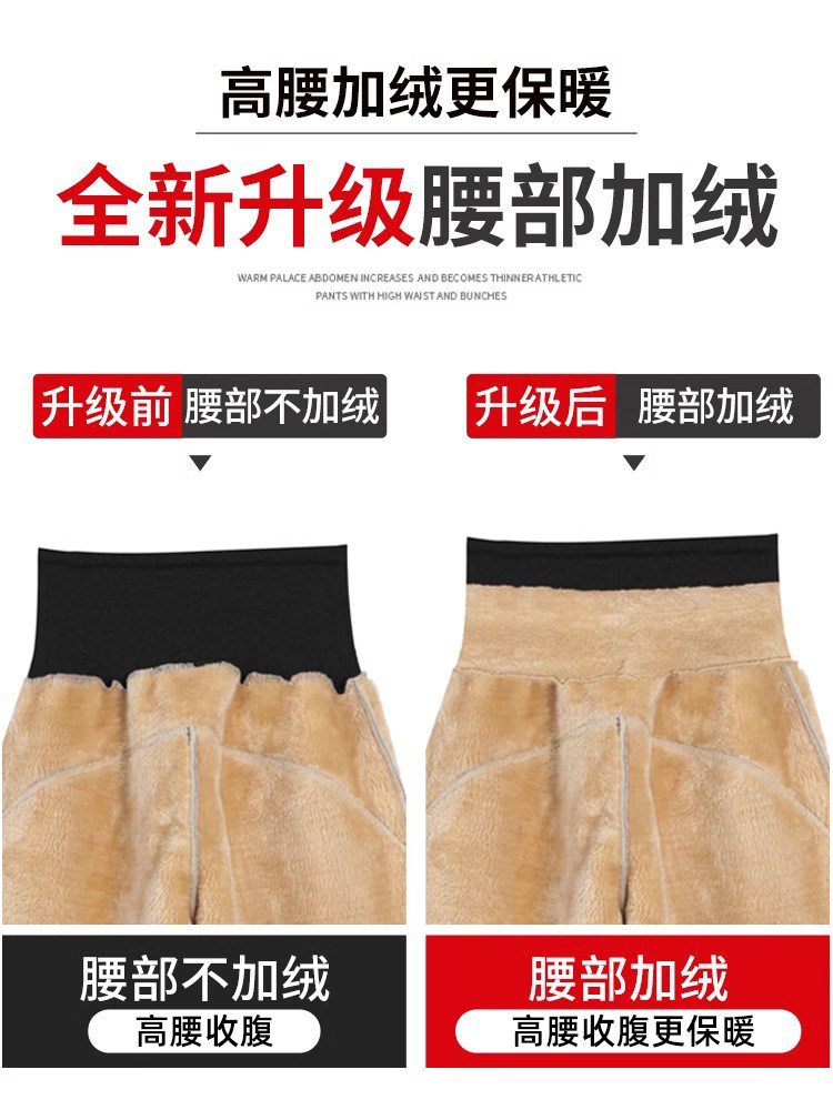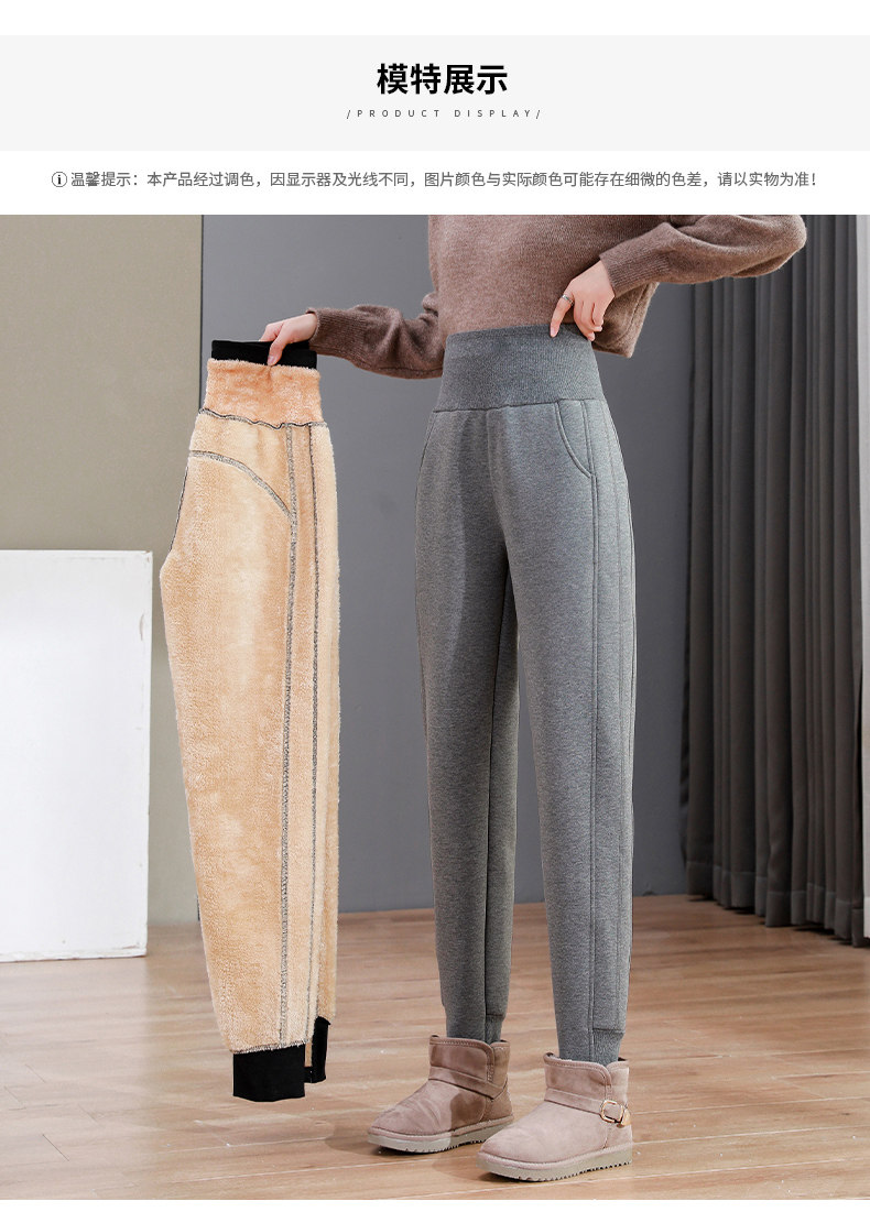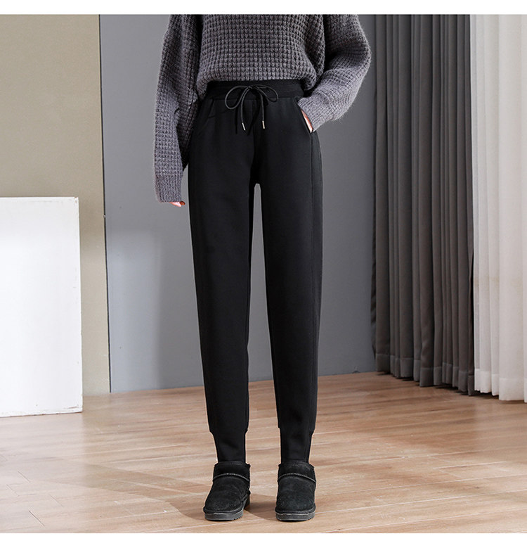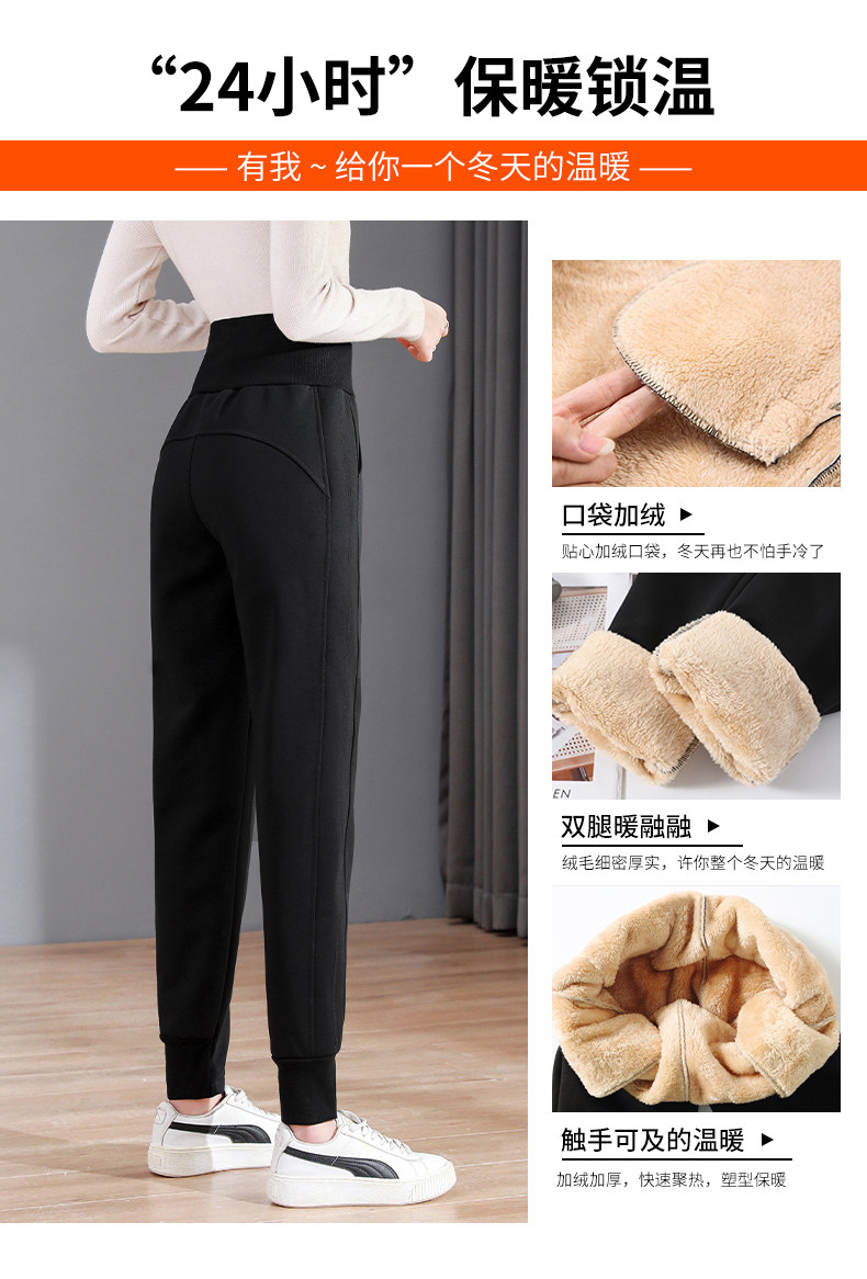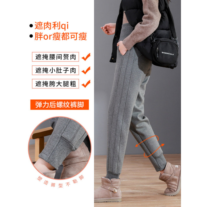 加絨加厚運動褲女秋冬季高腰束腳衛褲防風休閒仿羊羔絨外穿棉褲子