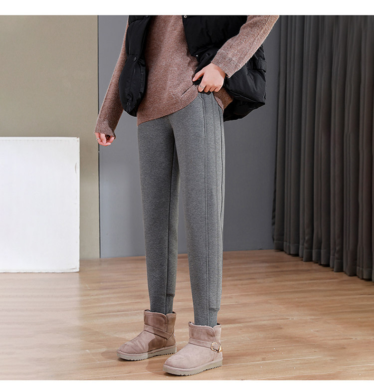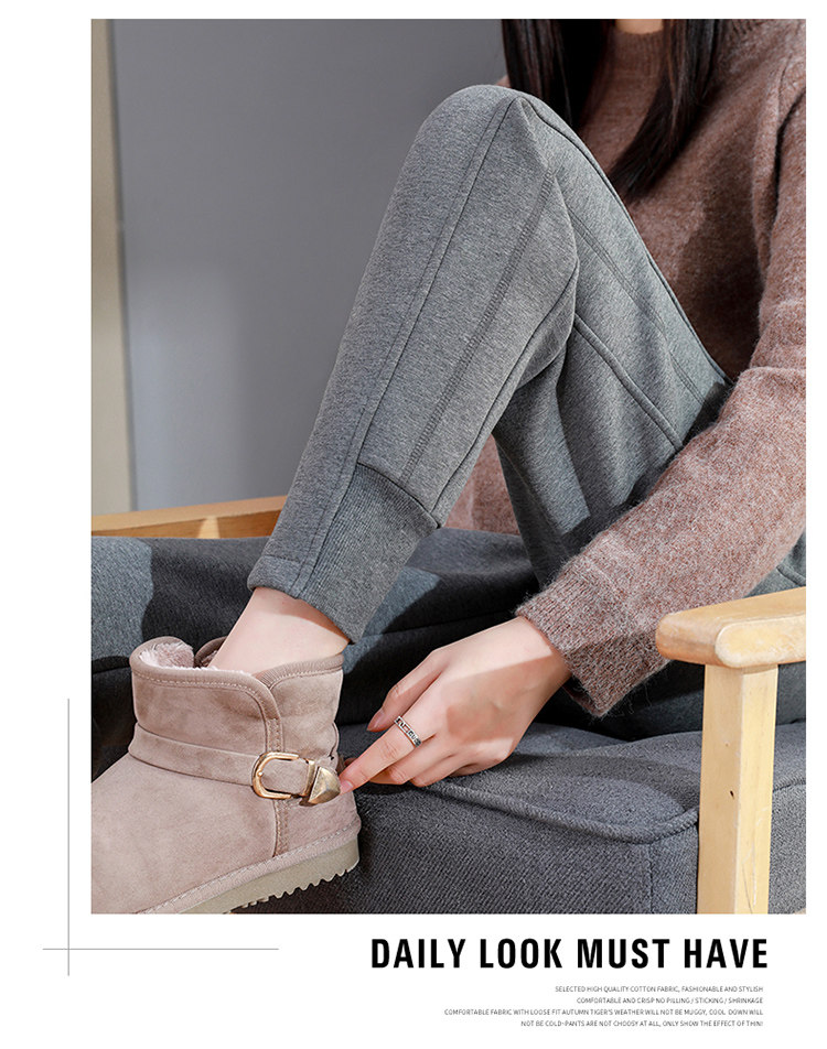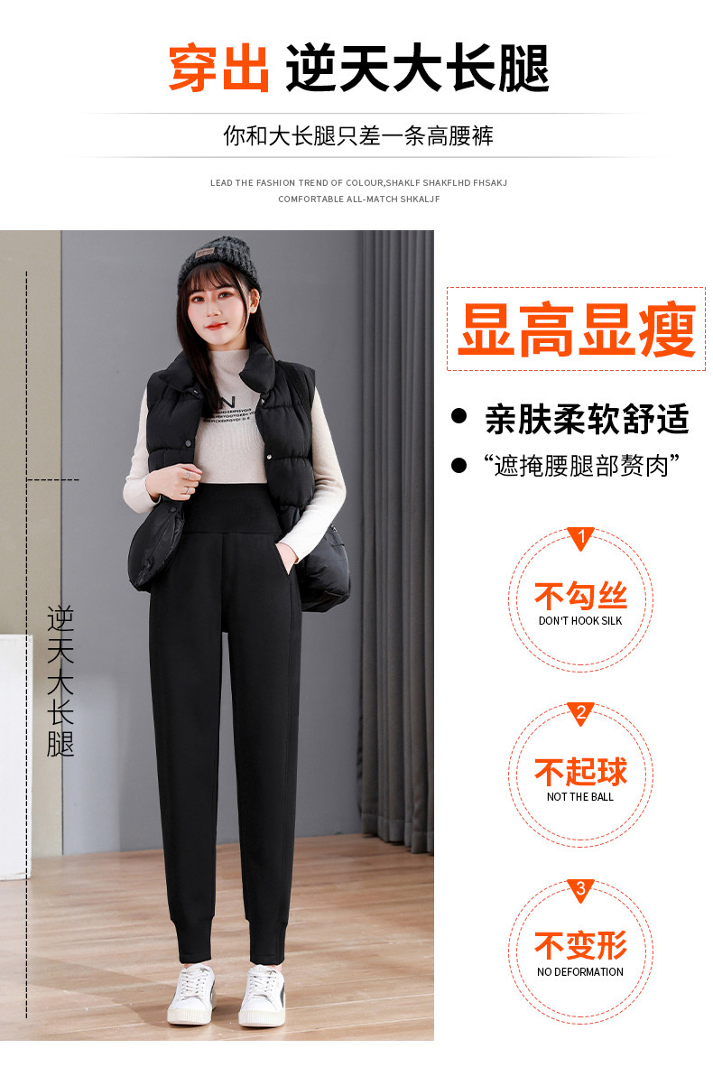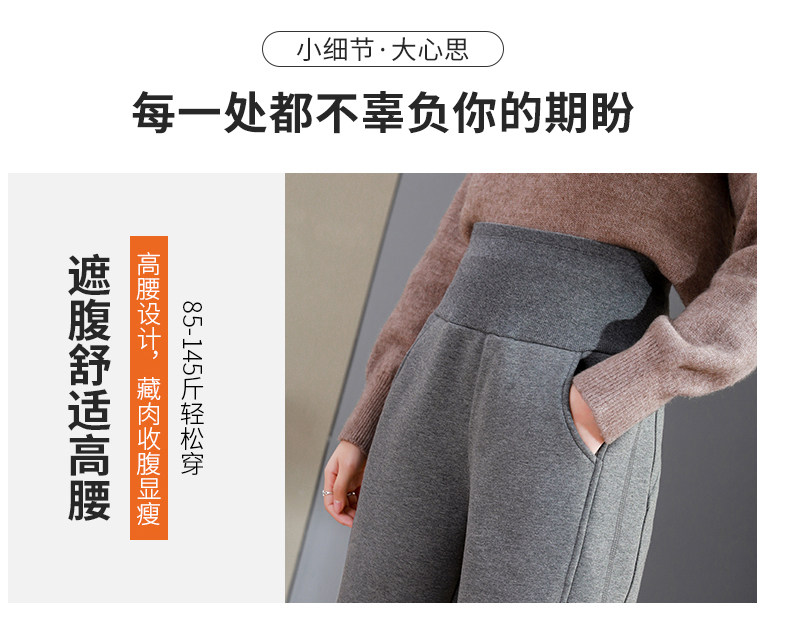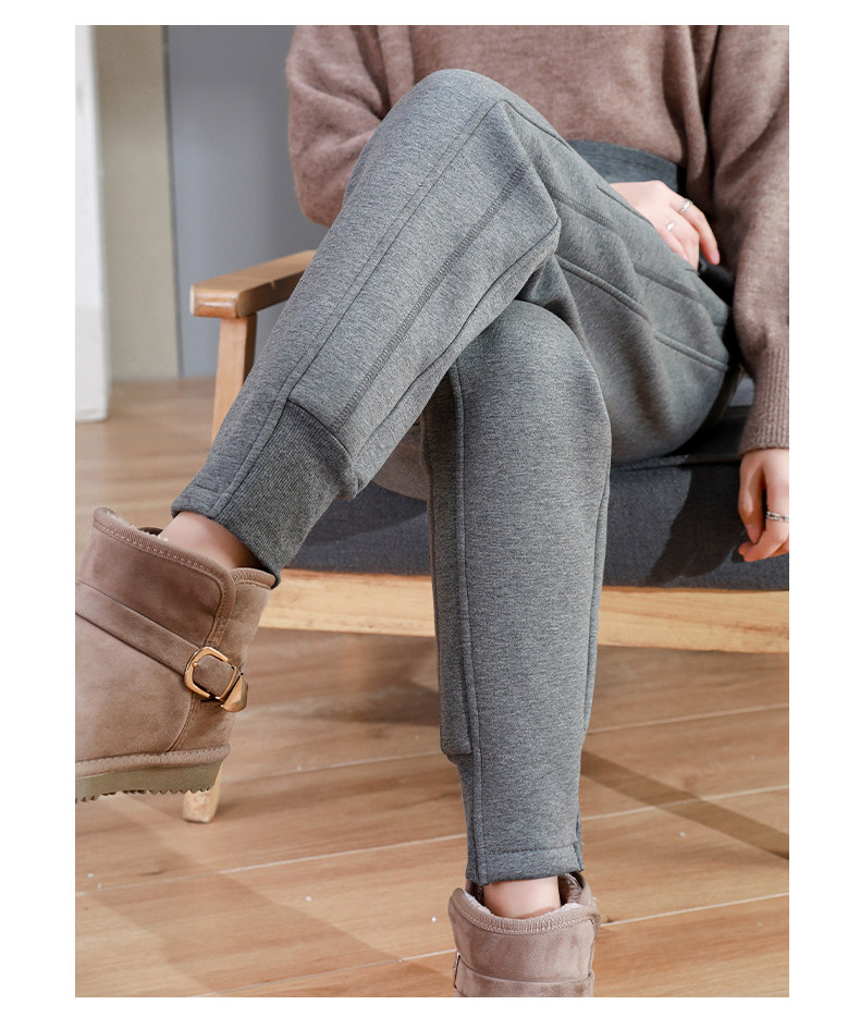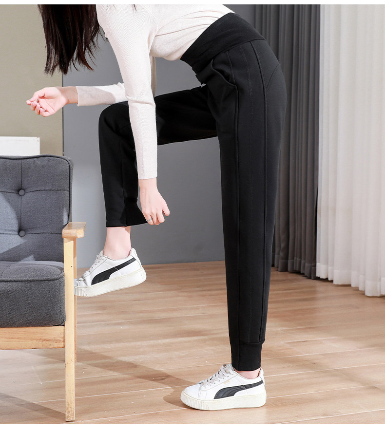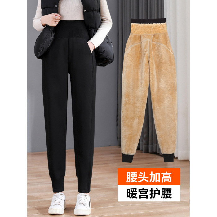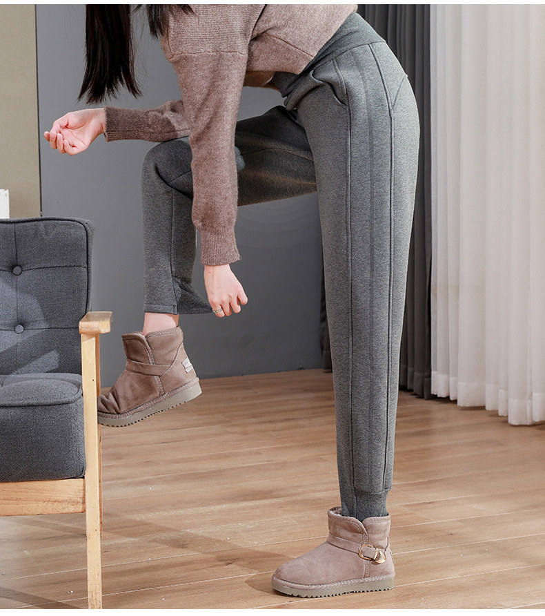 加絨加厚運動褲女秋冬季高腰束腳衛褲防風休閒仿羊羔絨外穿棉褲子