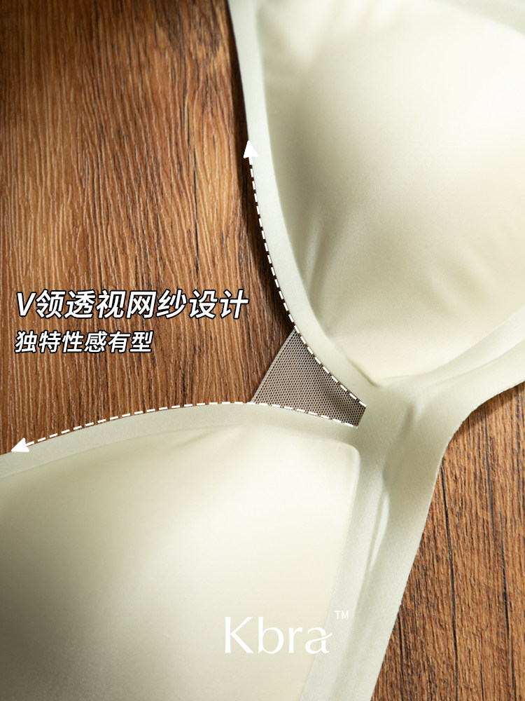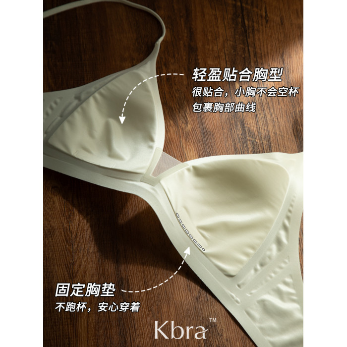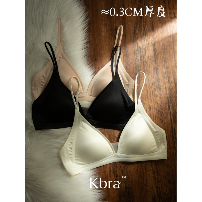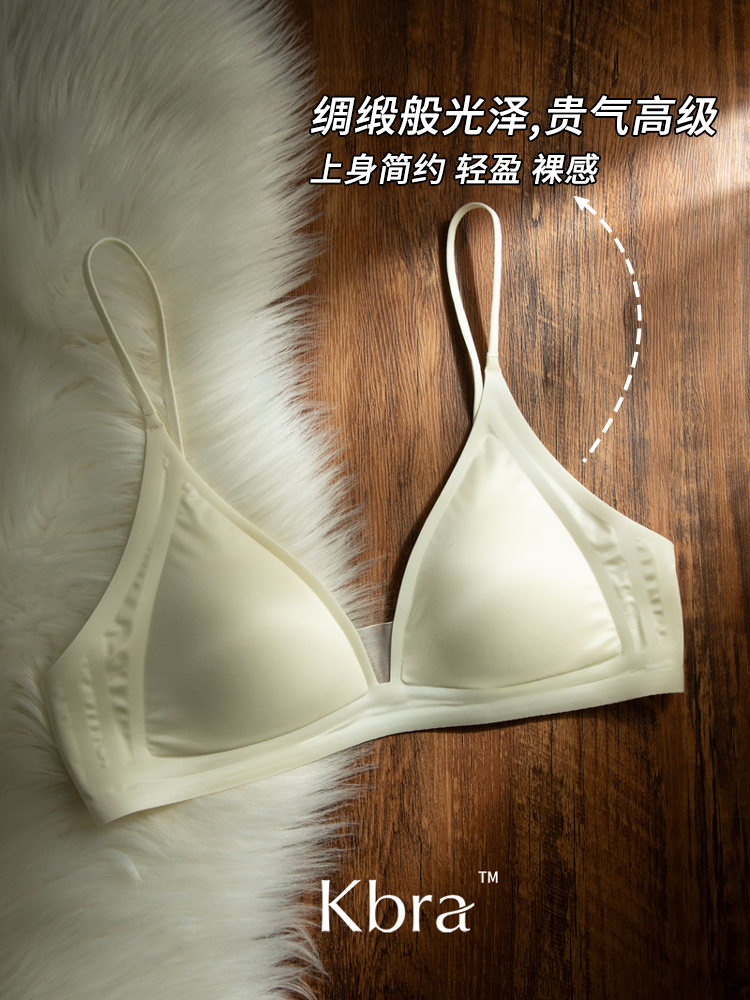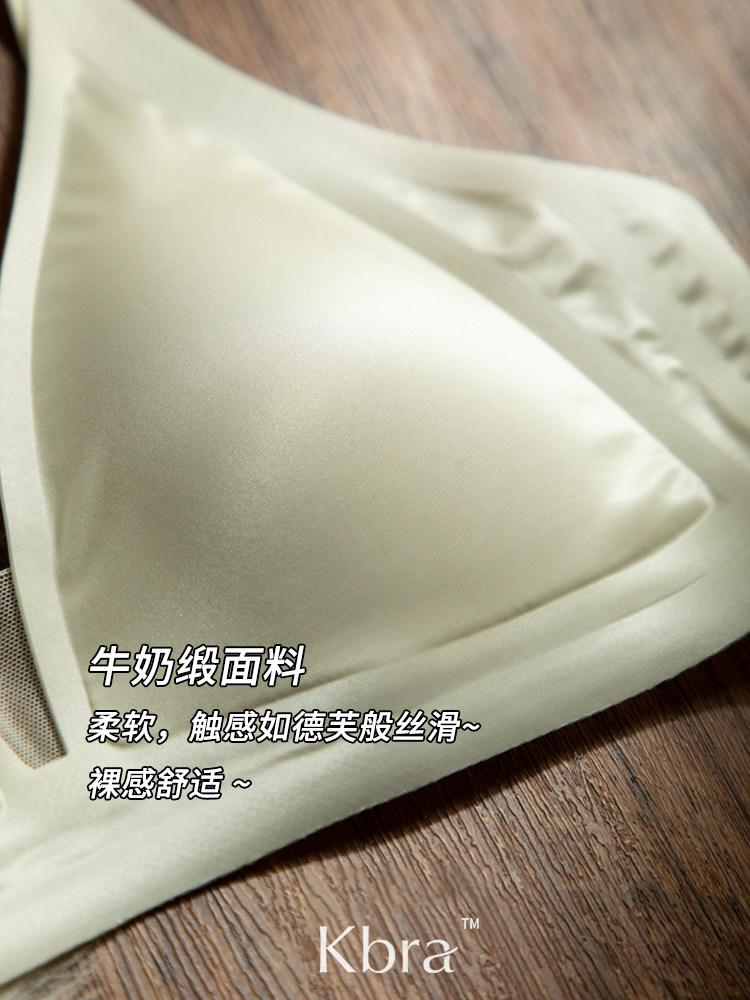 Kbra牛奶緞法式深V領內衣女夏細肩帶無痕三角杯小胸無鋼圈文胸薄