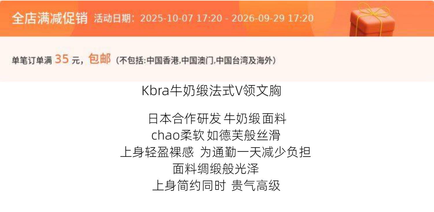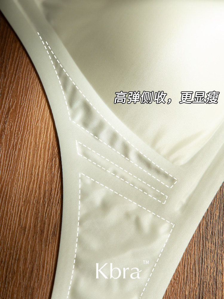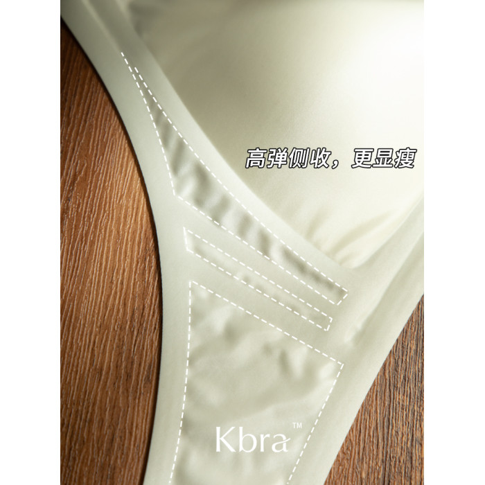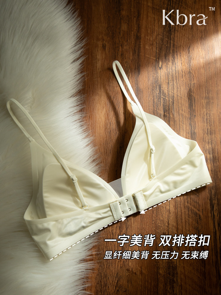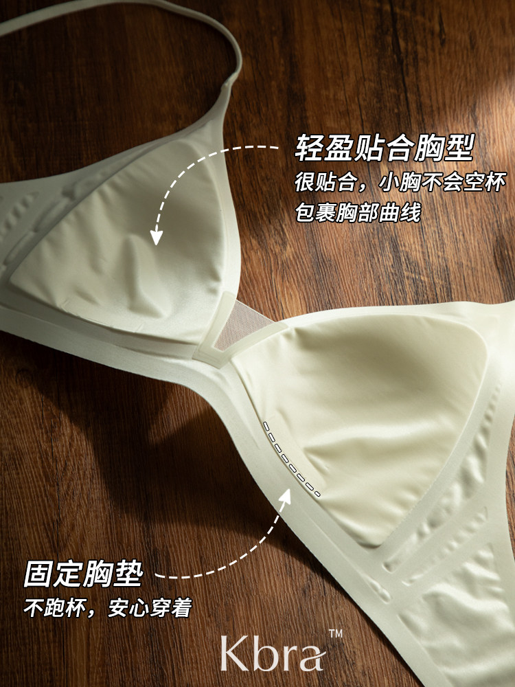 Kbra牛奶緞法式深V領內衣女夏細肩帶無痕三角杯小胸無鋼圈文胸薄