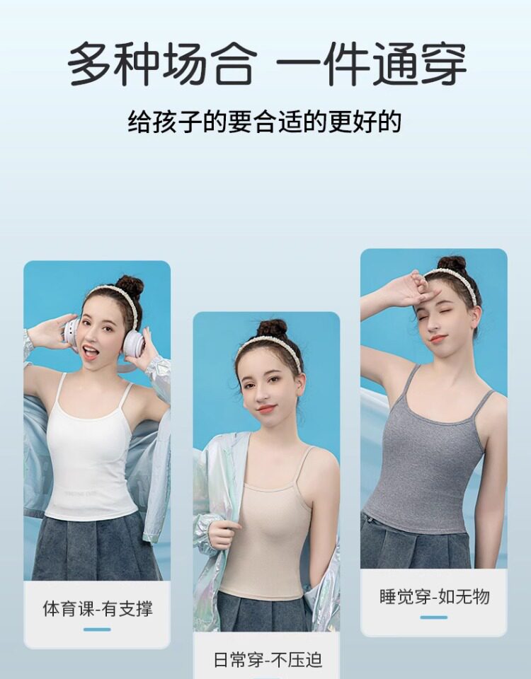 青春期少女內衣高中生發育期17嵗免穿文胸無痕防走光吊帶背心春夏