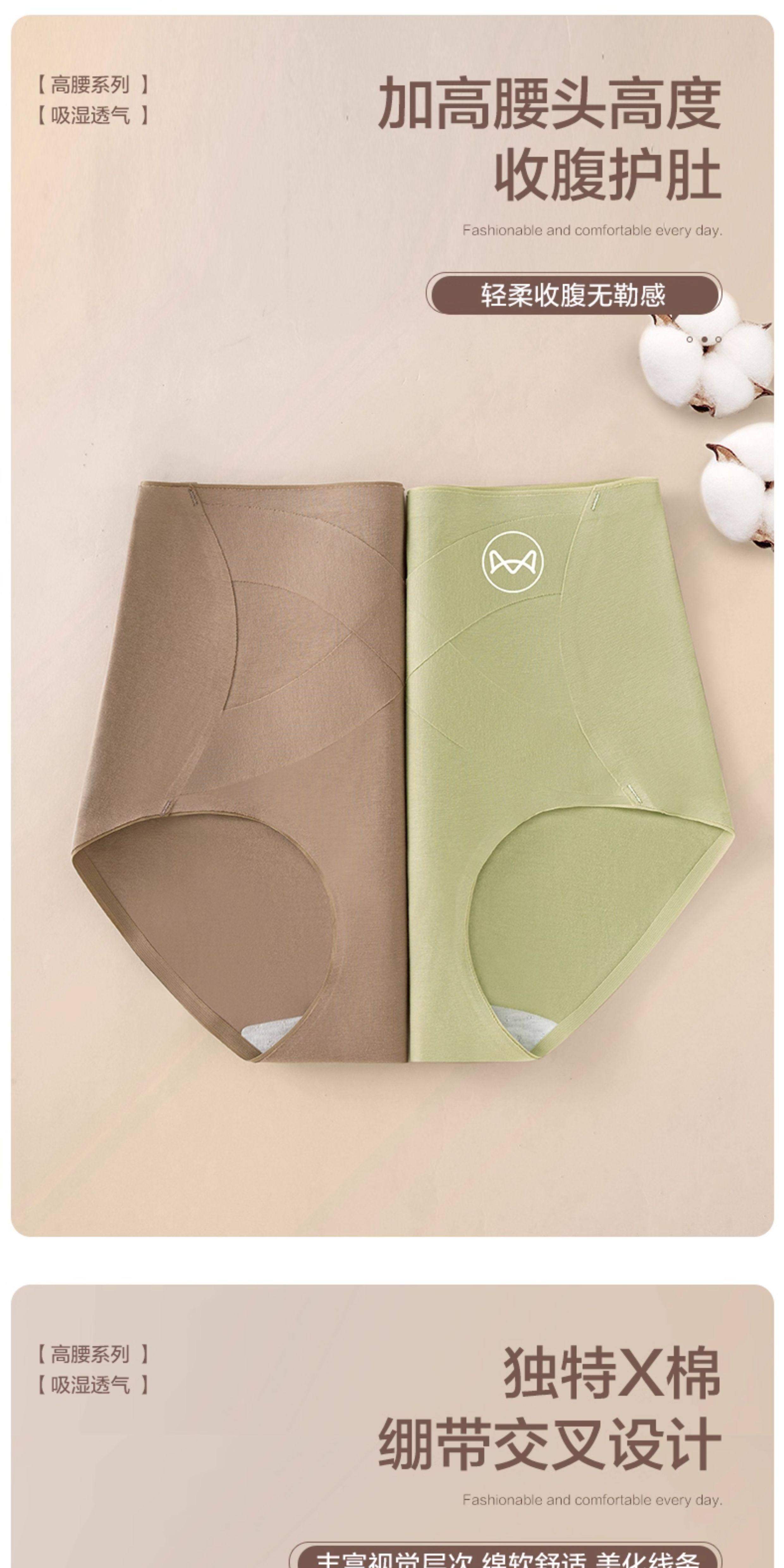 貓人高腰內褲女士純棉7A級抗菌收腹無痕大碼透氣三角褲2026新款