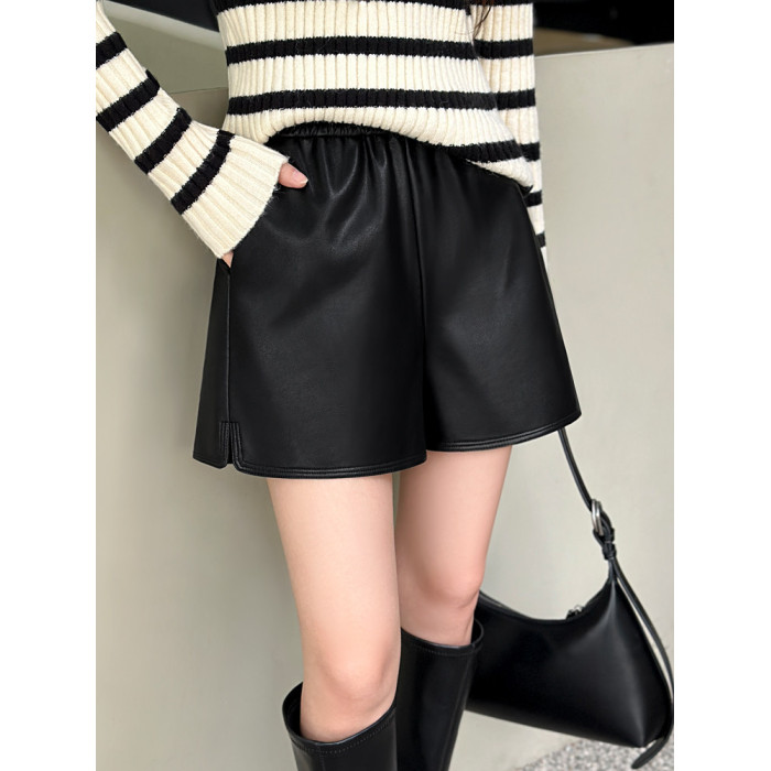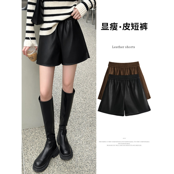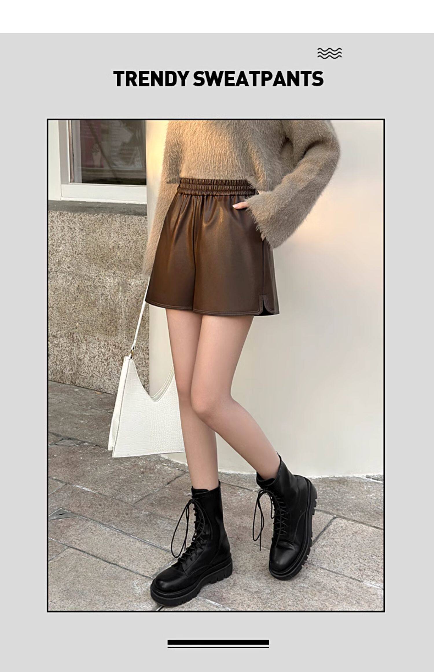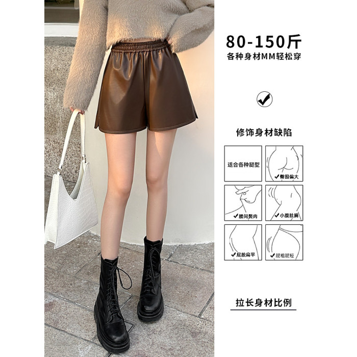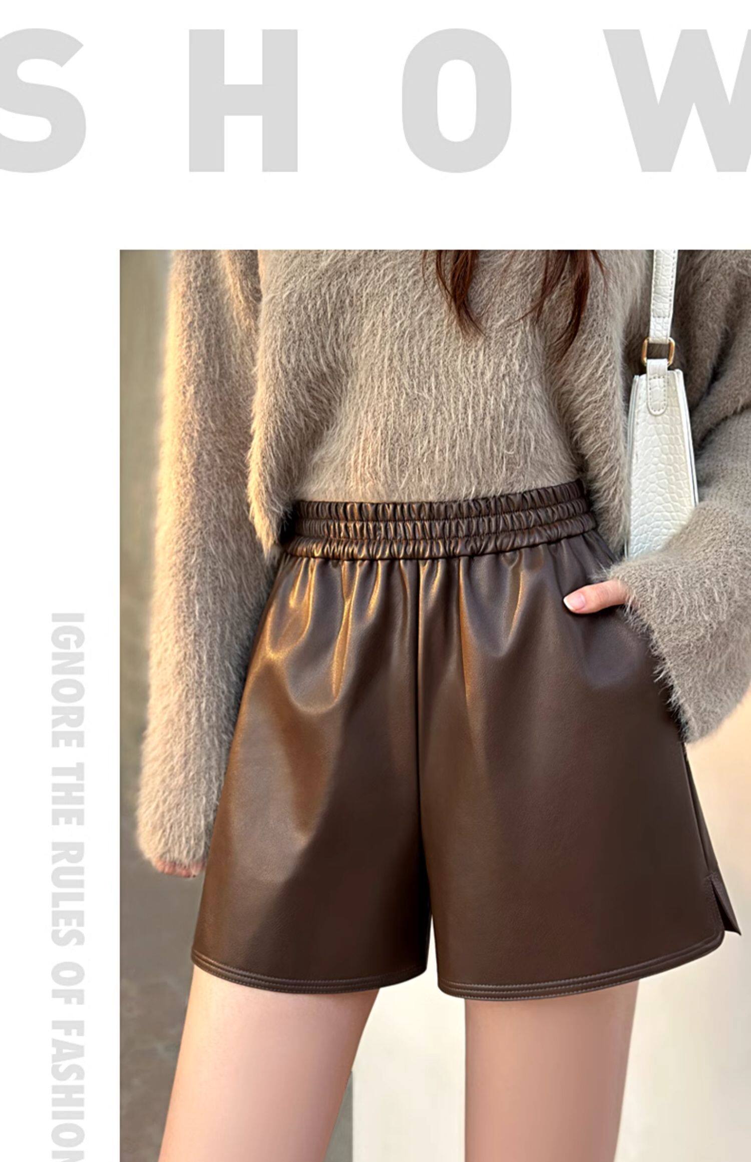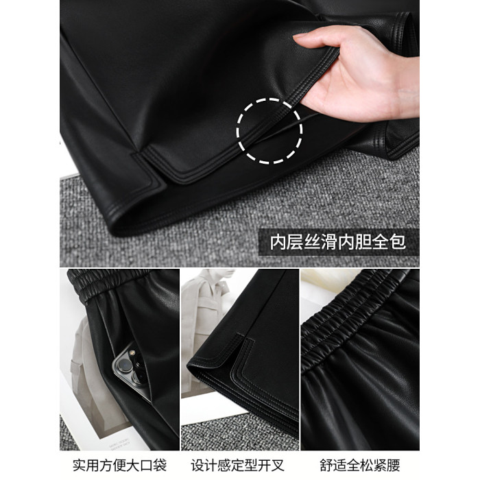 皮短褲女2025新款春秋冬外穿高腰大碼靴褲黑色百搭a字濶腿pu皮褲