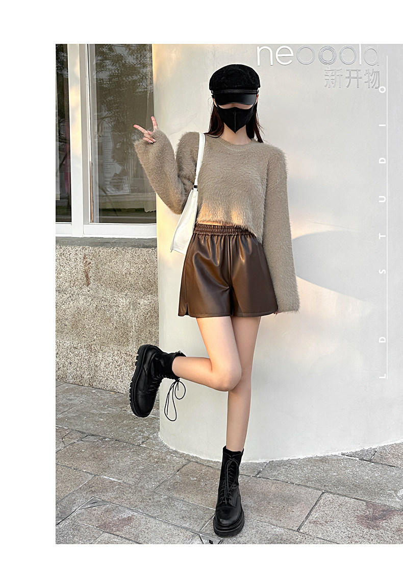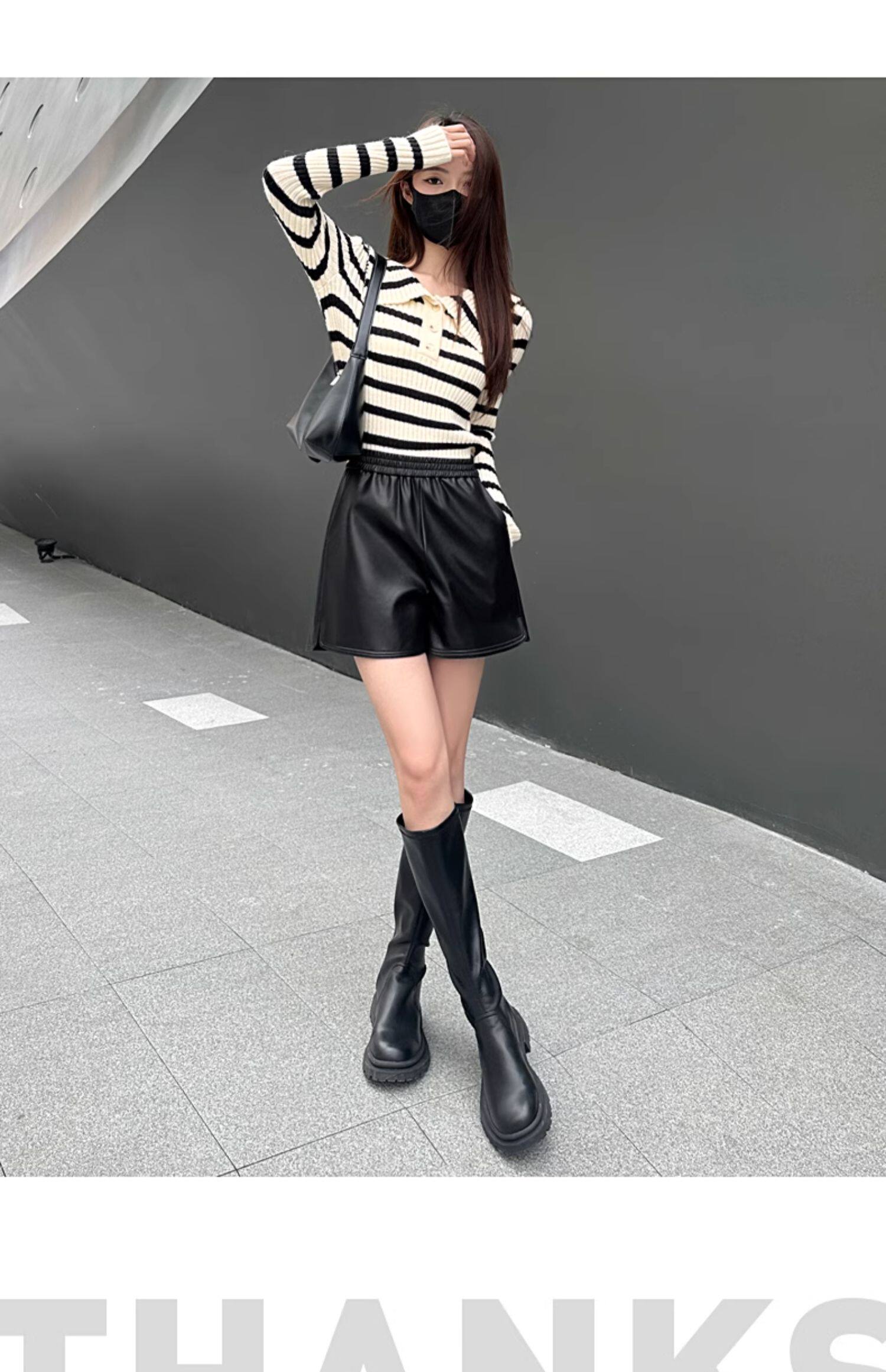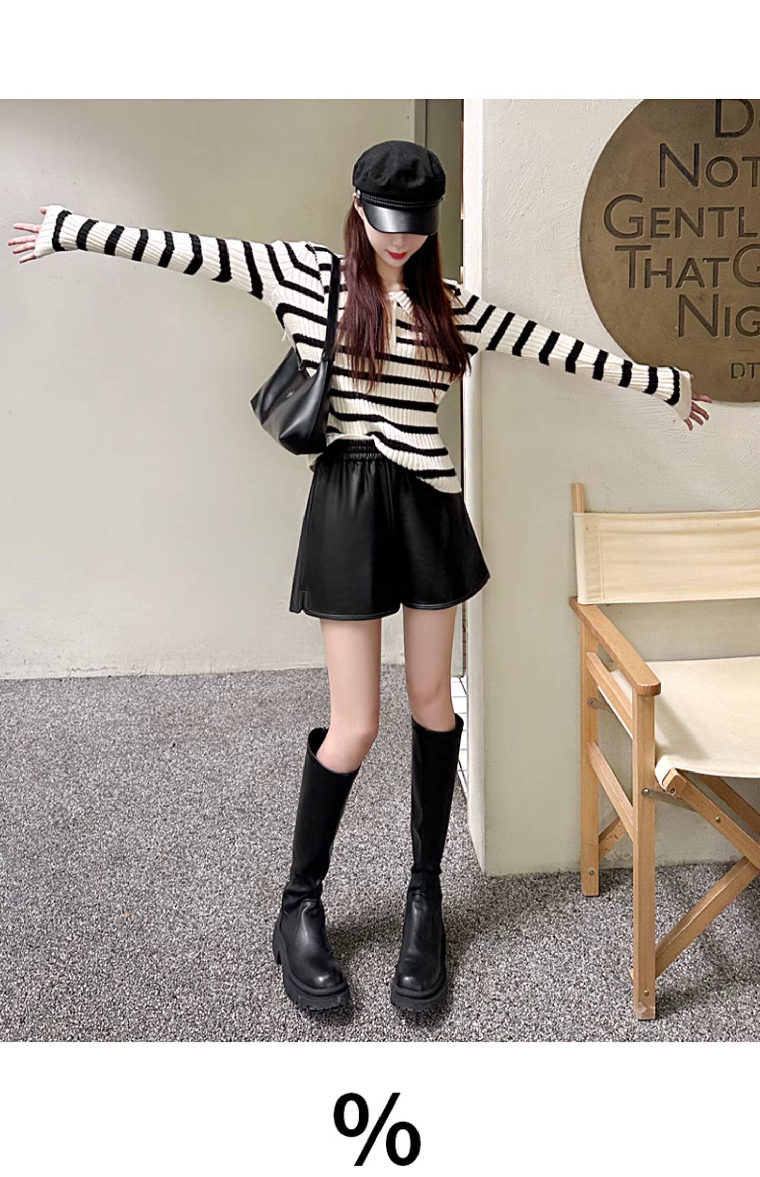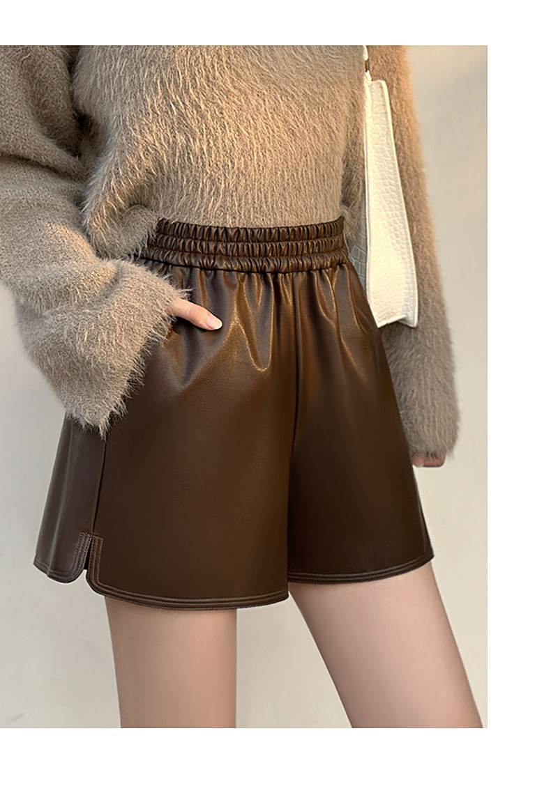 皮短褲女2025新款春秋冬外穿高腰大碼靴褲黑色百搭a字濶腿pu皮褲