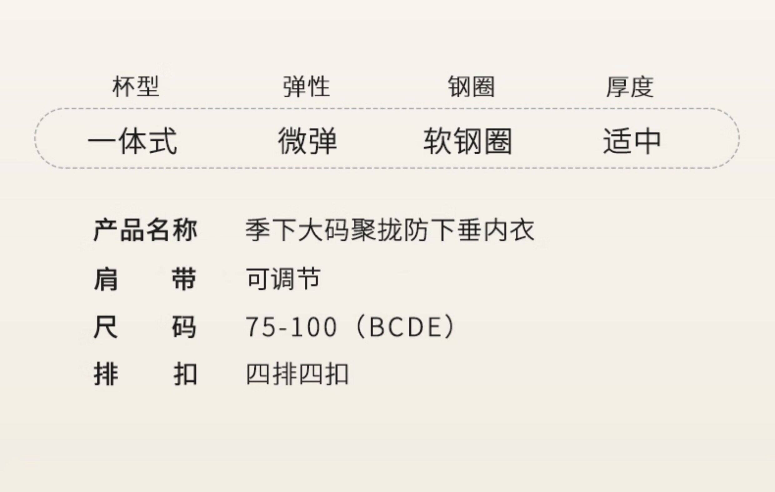 | 罩杯款式 | 3/4罩杯 |