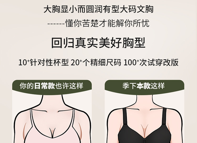 季下內衣胸大顯小上托聚攏收副乳防下垂大碼女胖mm無痕薄款文胸罩