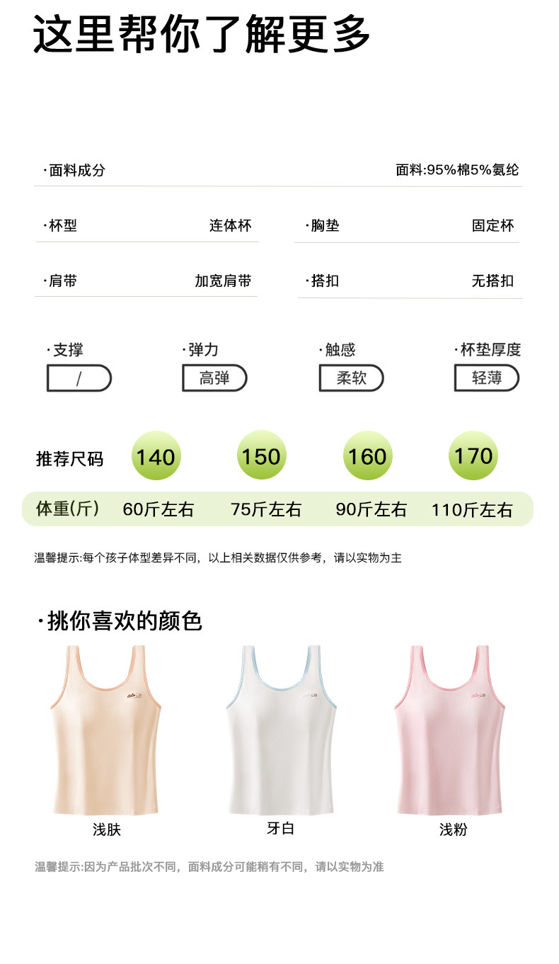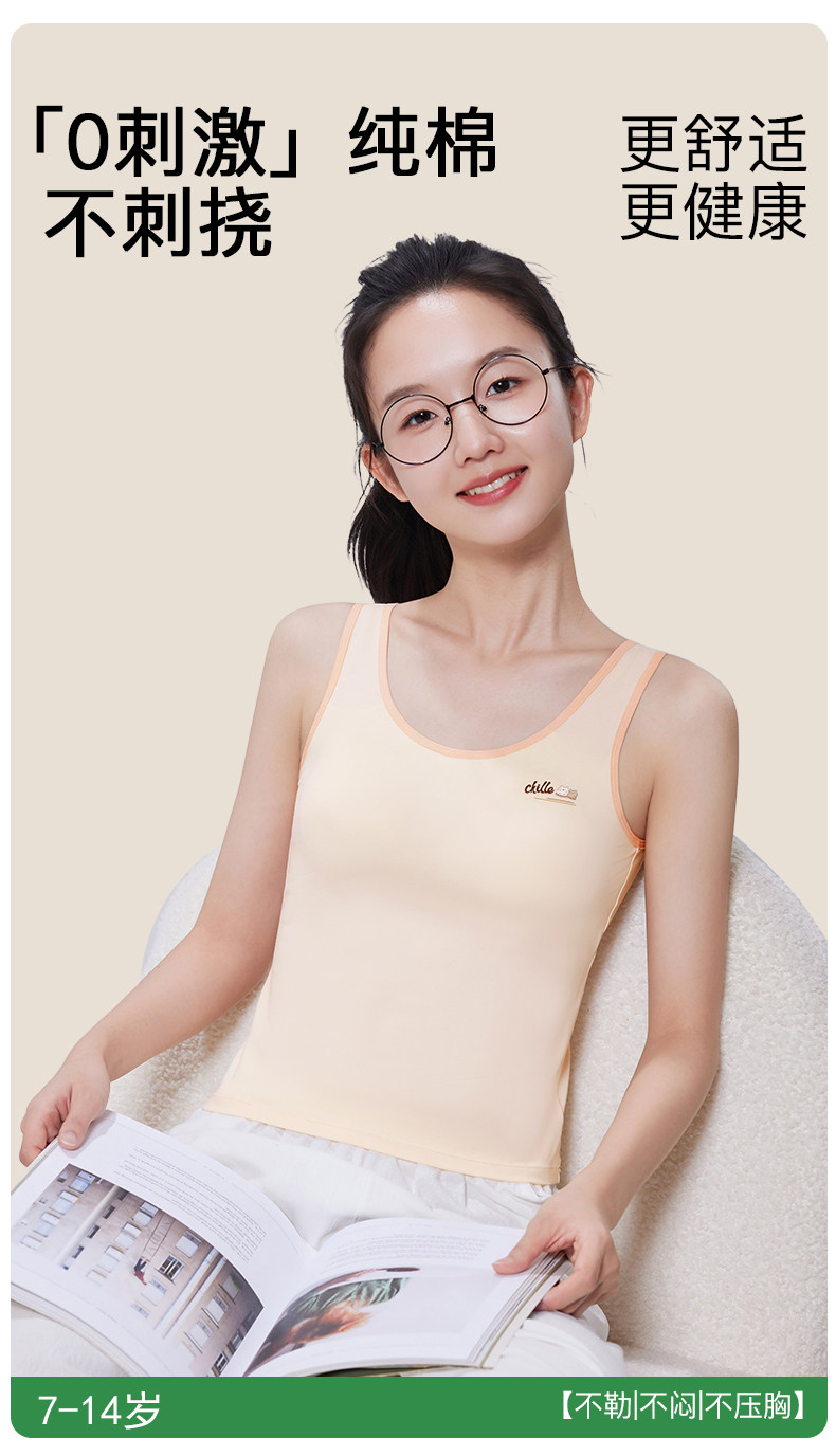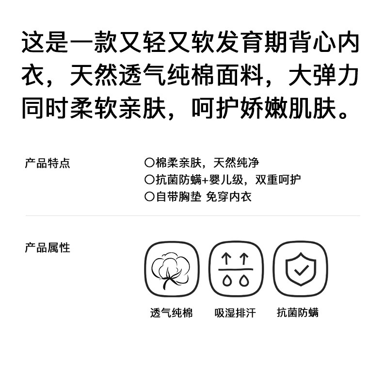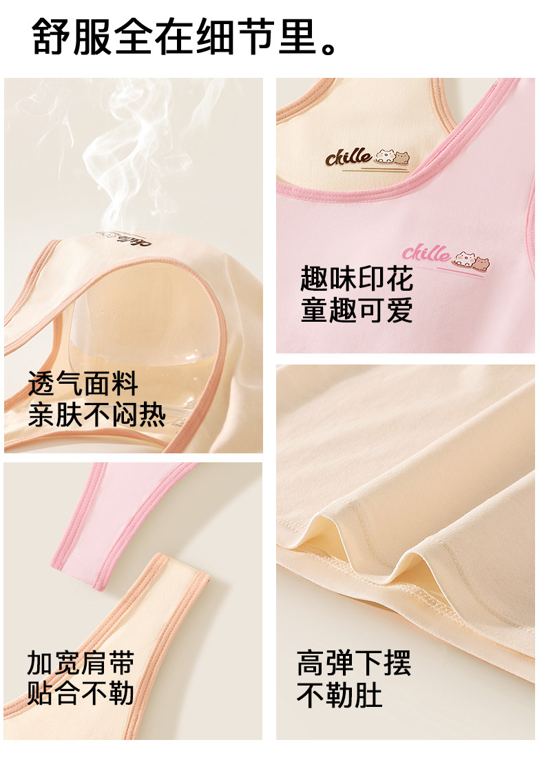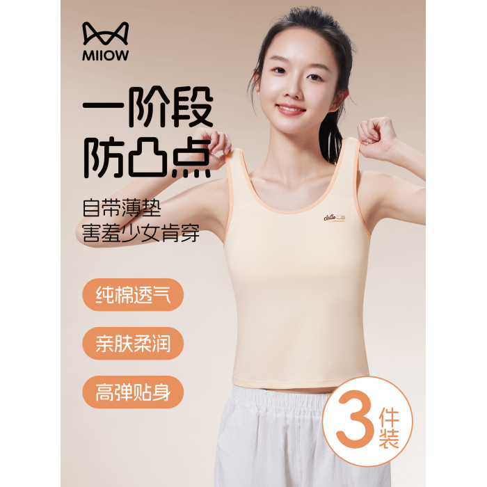 貓人少女文胸初中生女孩發育期一階段長款內衣女孩無痕純棉小背心