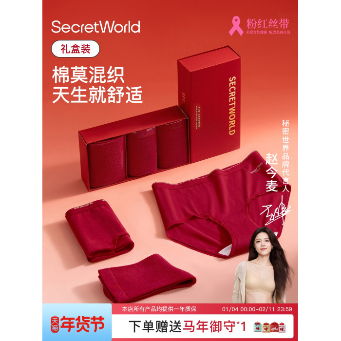趙今麥同款sw本命年紅色內褲純棉襠大紅結婚內褲襪子馬年禮盒套裝