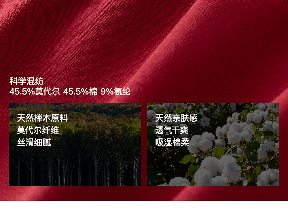 | 材質成分 | 莫代爾纖維(莫代爾)45.5% 棉45.5% 聚氨酯彈性纖維(氨綸)9% |