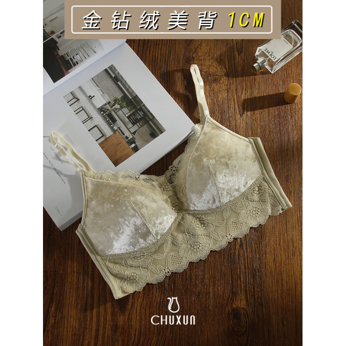 金鑽絨美背內搭吊帶背心自帶胸墊一體式文胸無鋼圈內衣女輕薄蕾絲