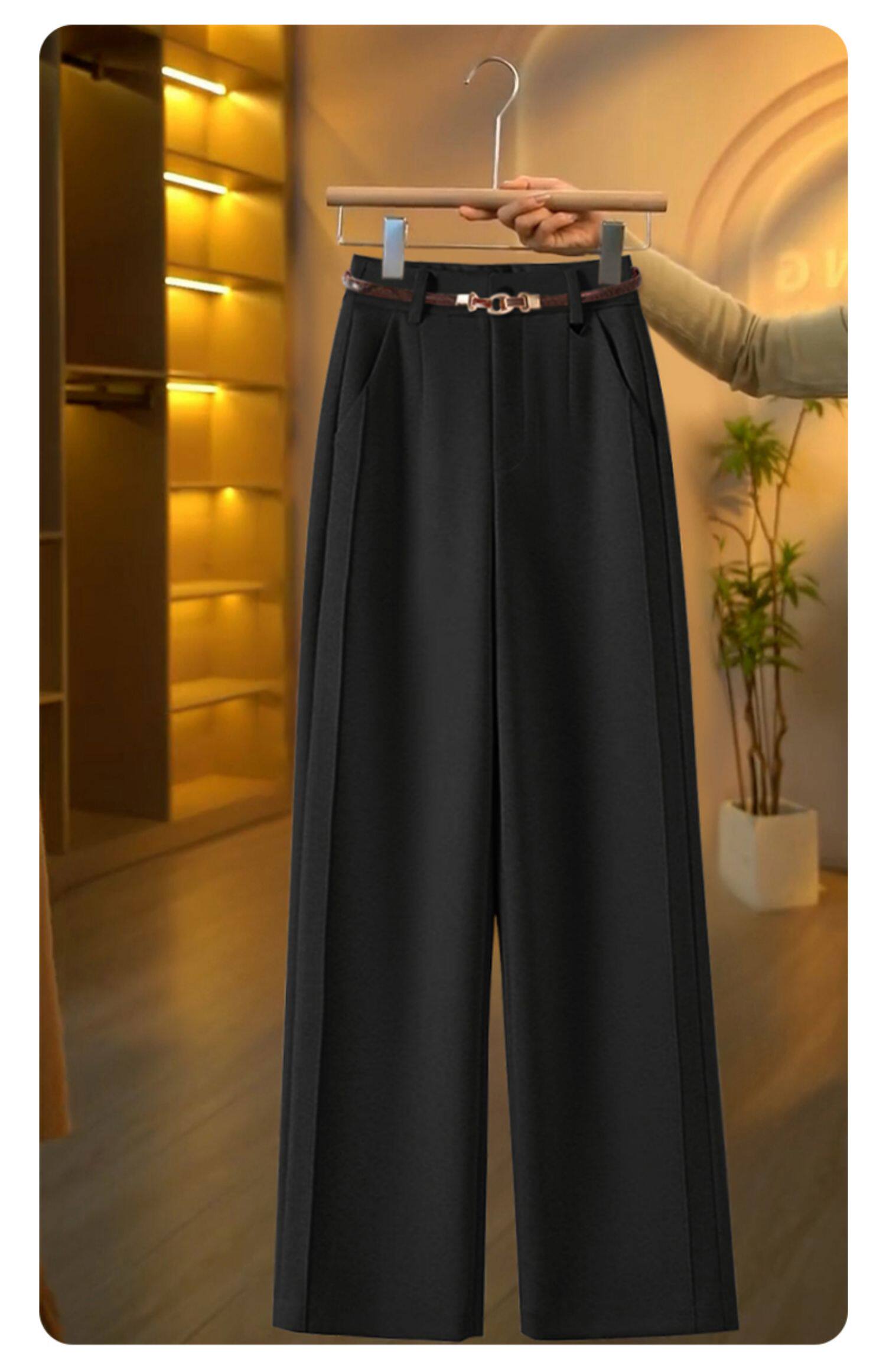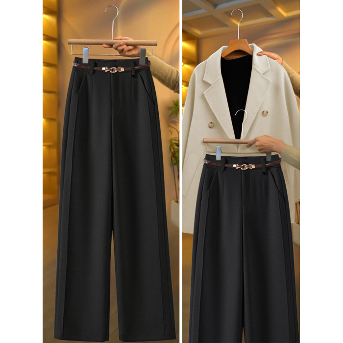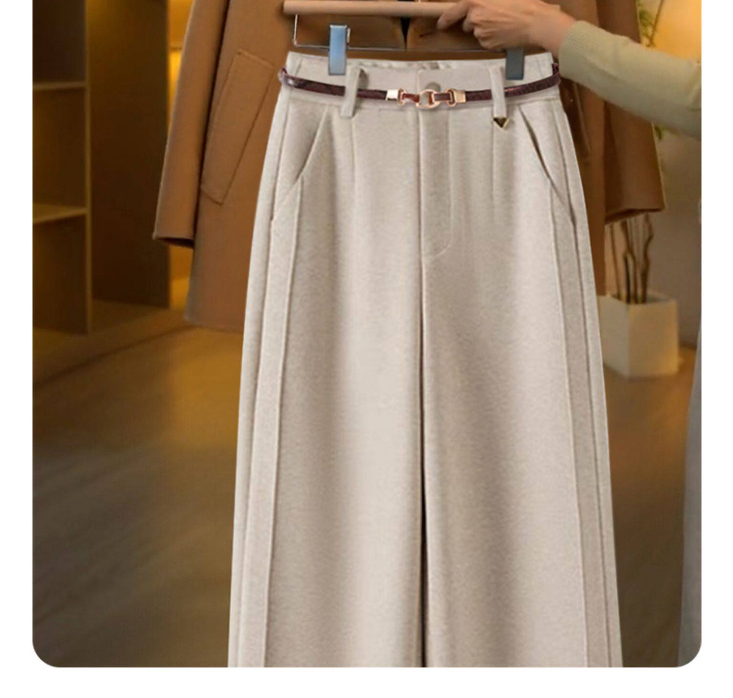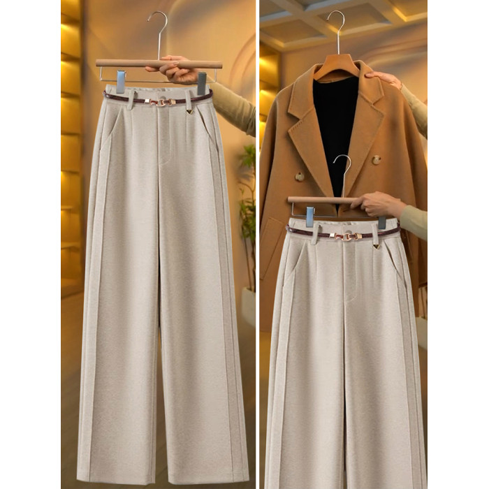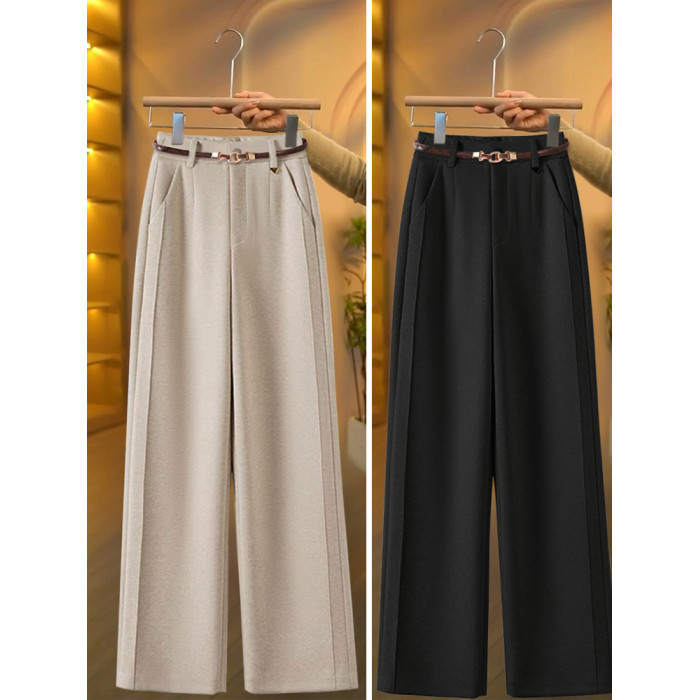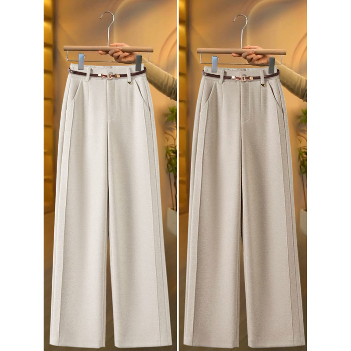 毛呢直筒褲垂感糯米褲女2025新款寬鬆濶腿褲秋冬加絨羊毛西裝褲子