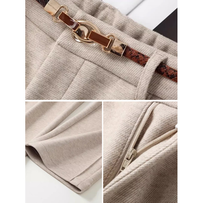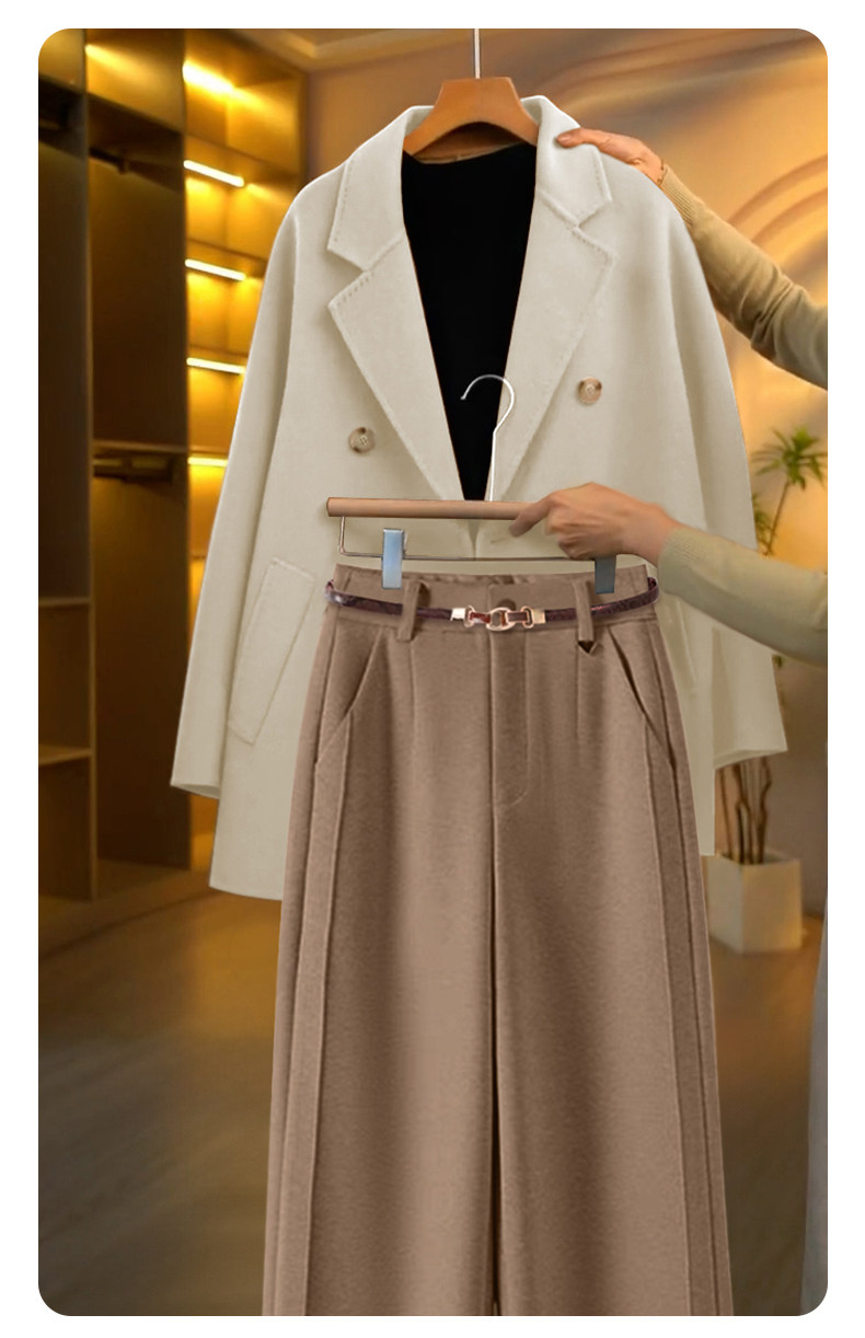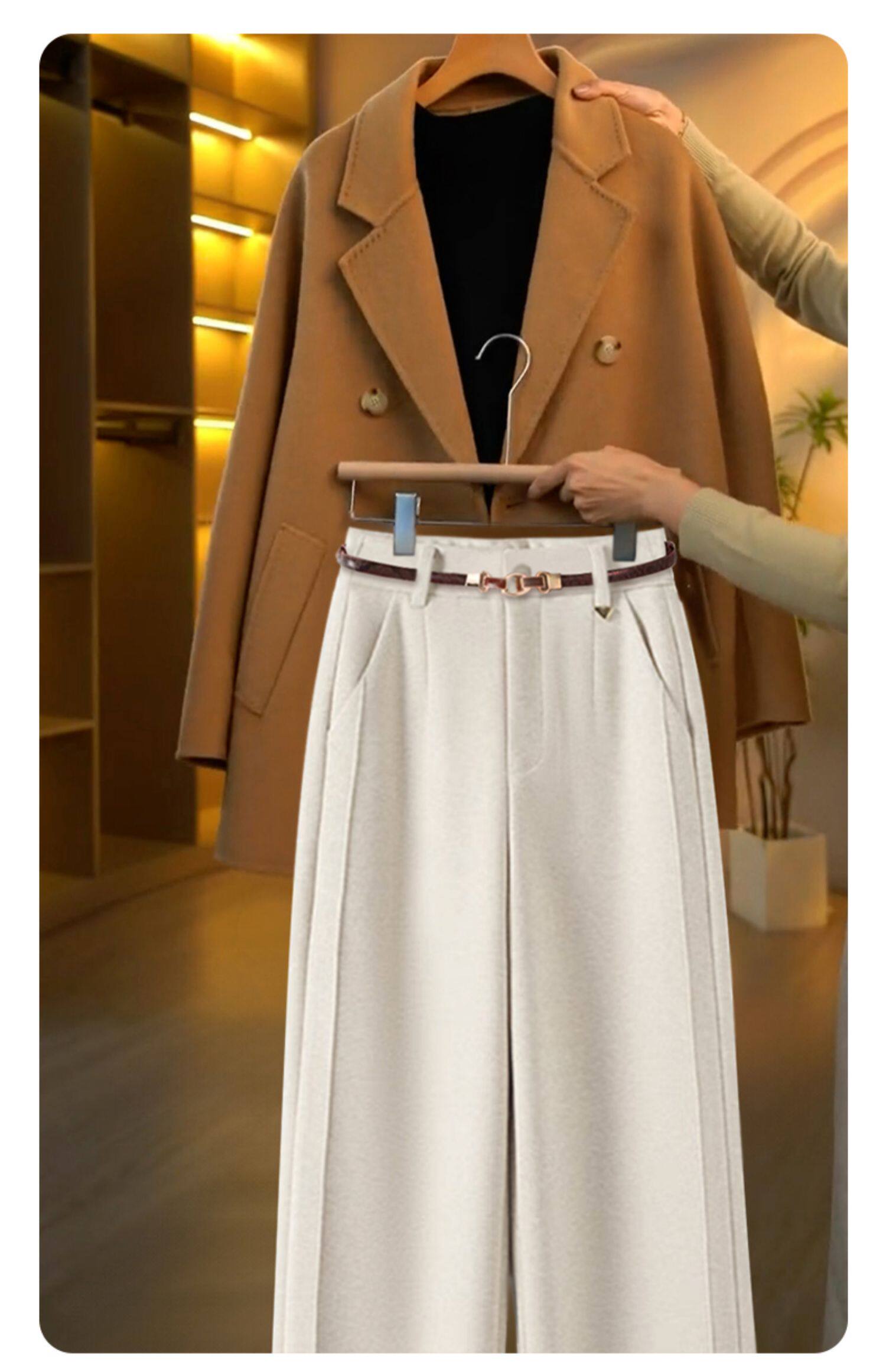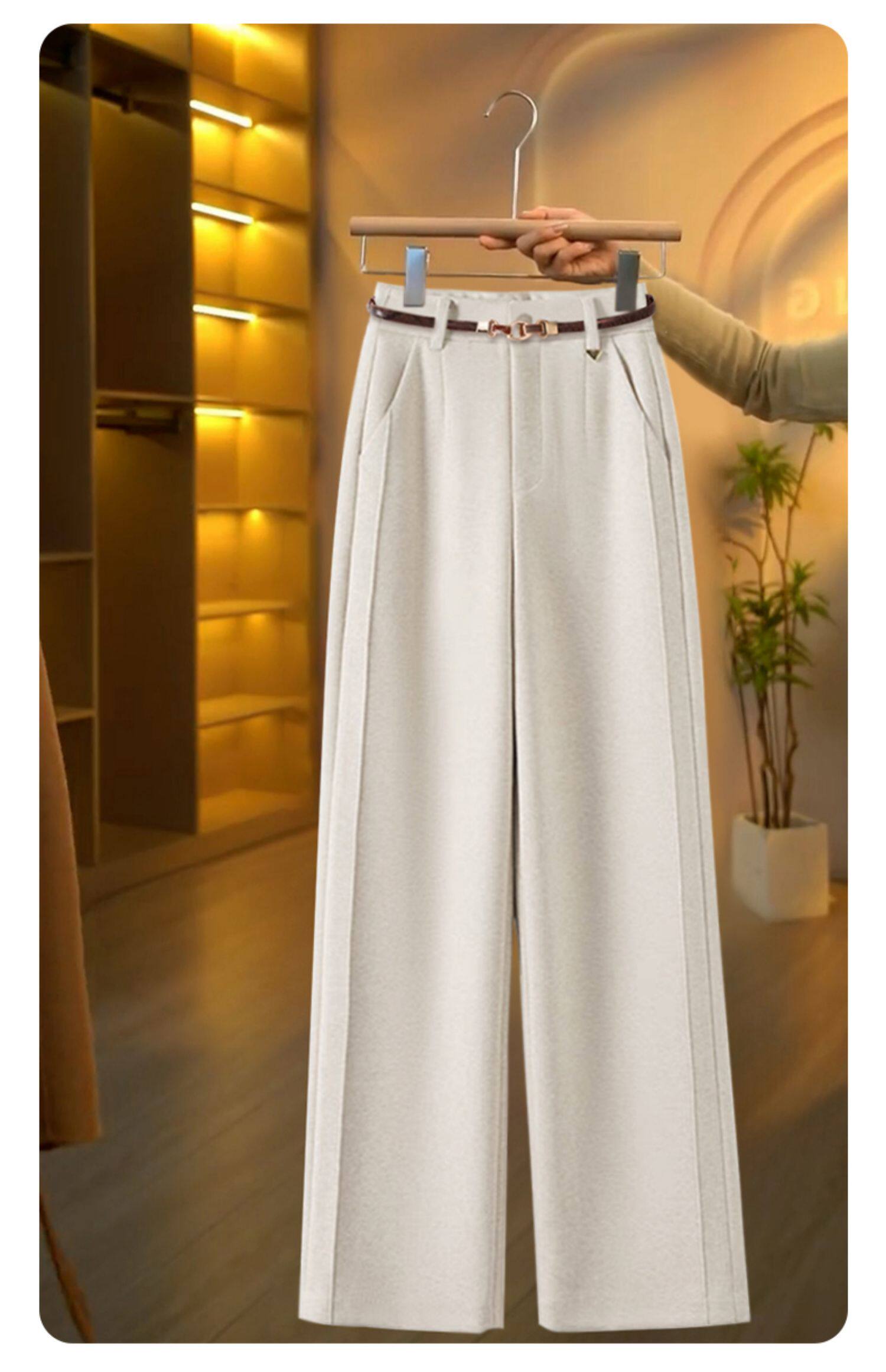 毛呢直筒褲垂感糯米褲女2025新款寬鬆濶腿褲秋冬加絨羊毛西裝褲子