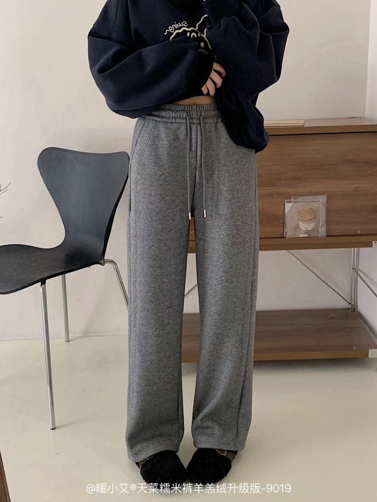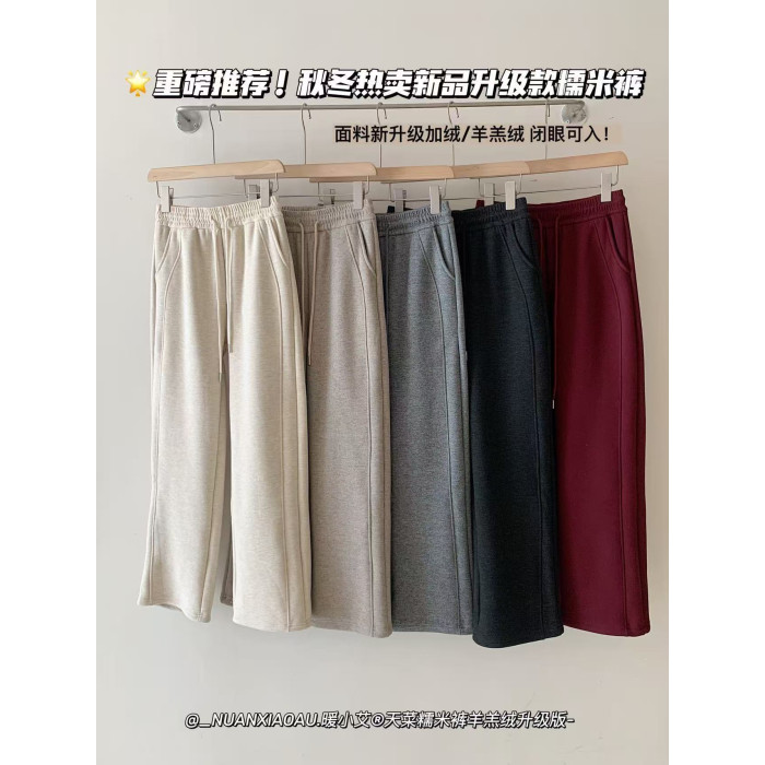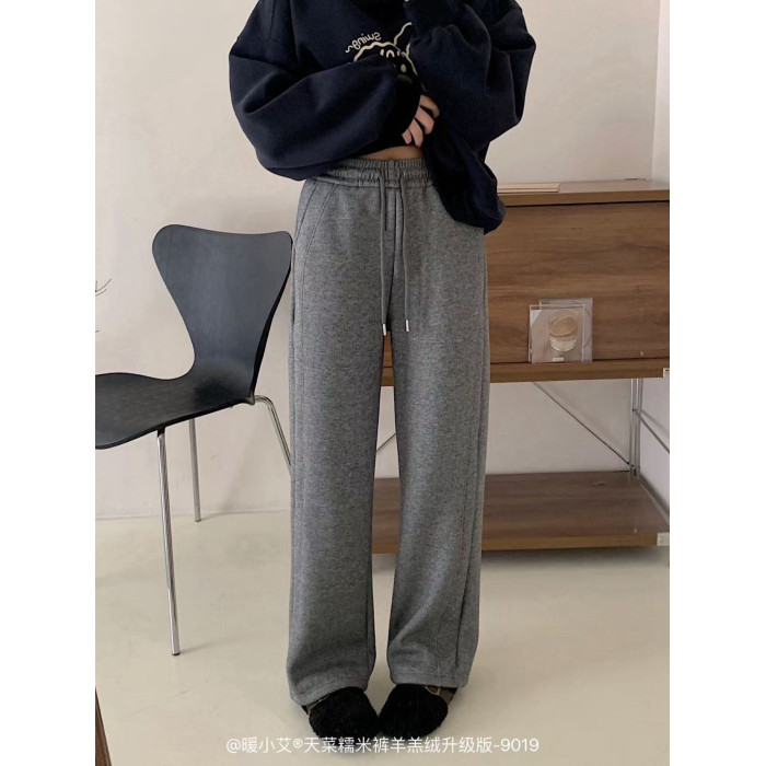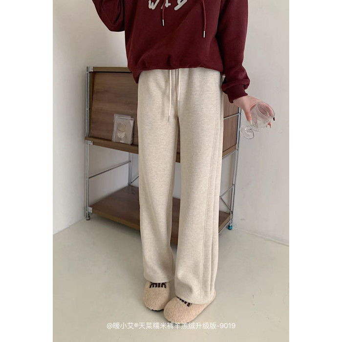 暖小艾天菜糯米褲羊羔絨升級版加絨加厚秋冬女褲濶腿顯瘦直筒