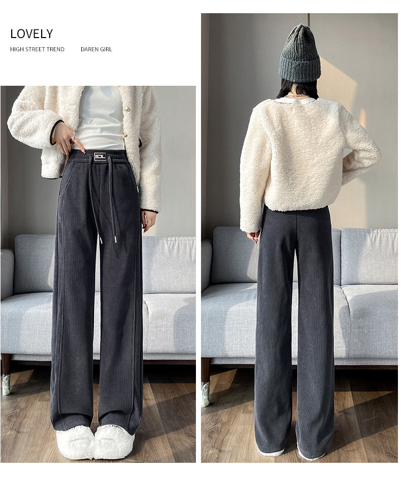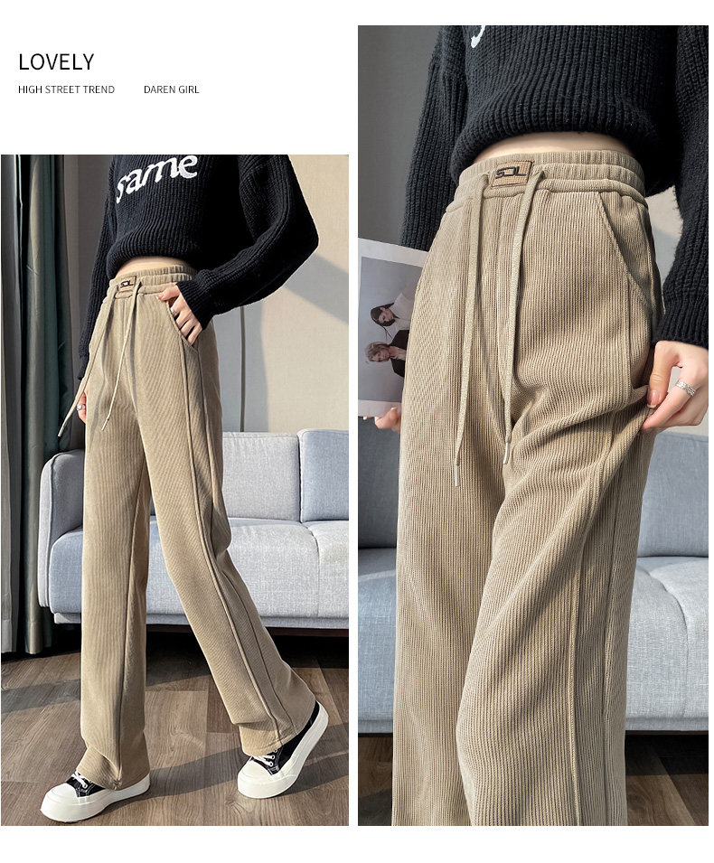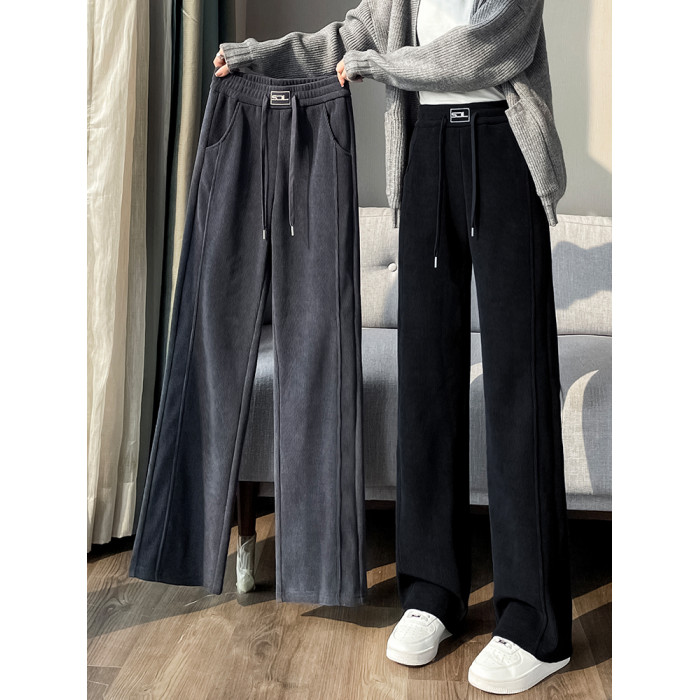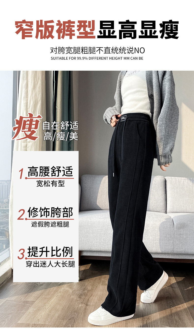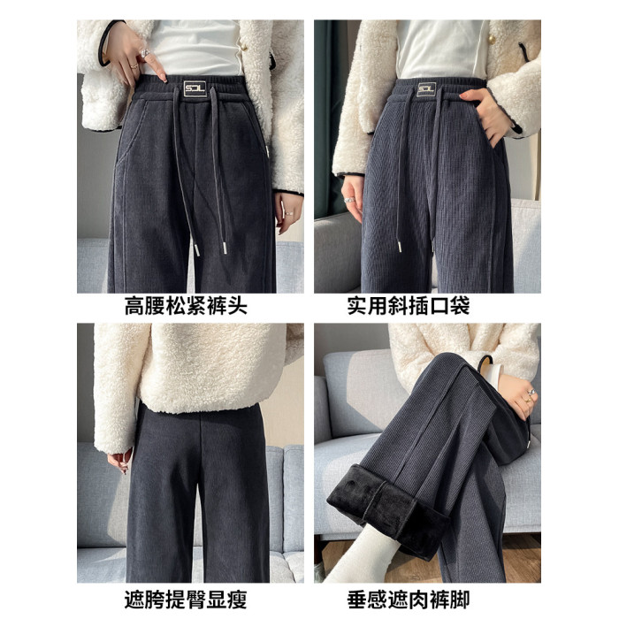 雪尼爾濶腿褲女秋冬款加絨褲子2025新款冬季加厚燈芯絨直筒女褲冬