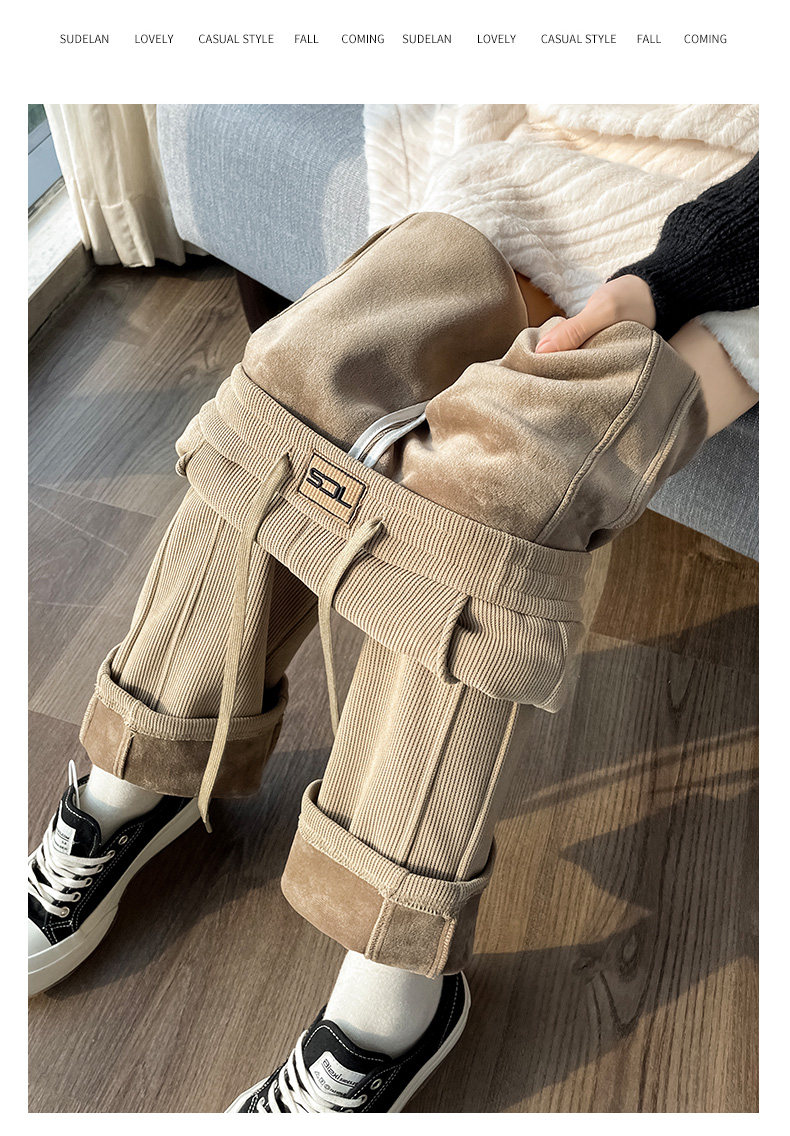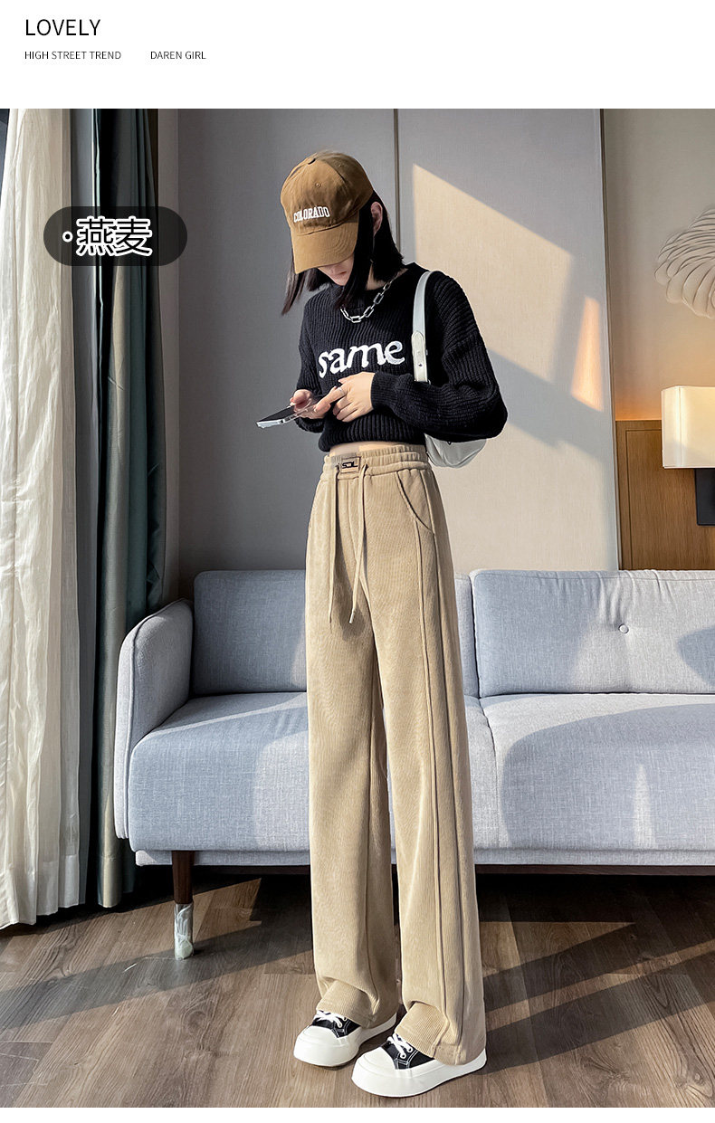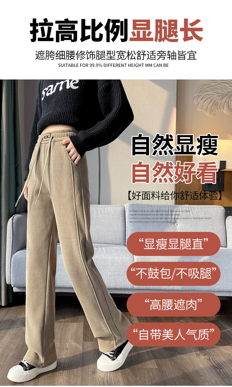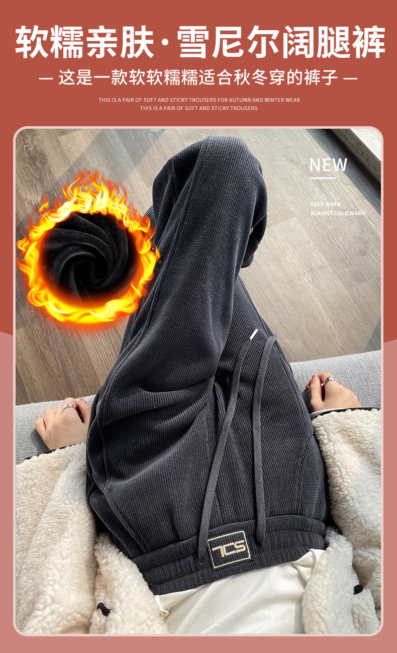 雪尼爾濶腿褲女秋冬款加絨褲子2025新款冬季加厚燈芯絨直筒女褲冬