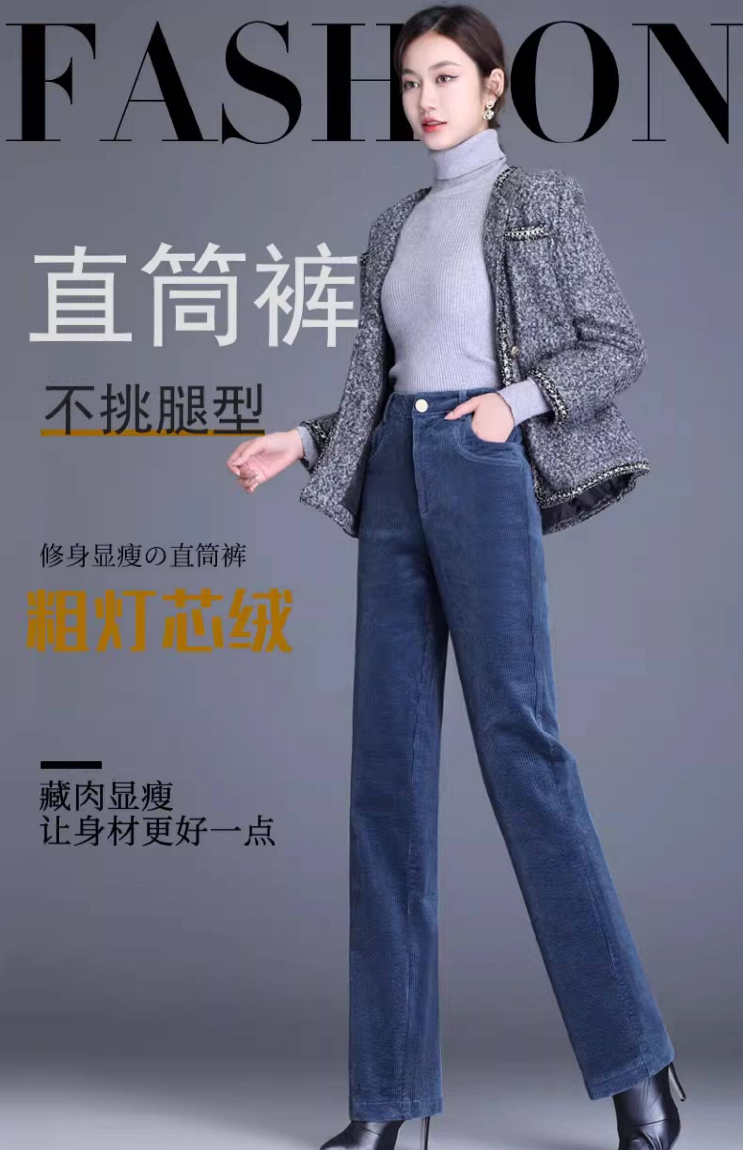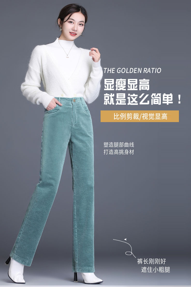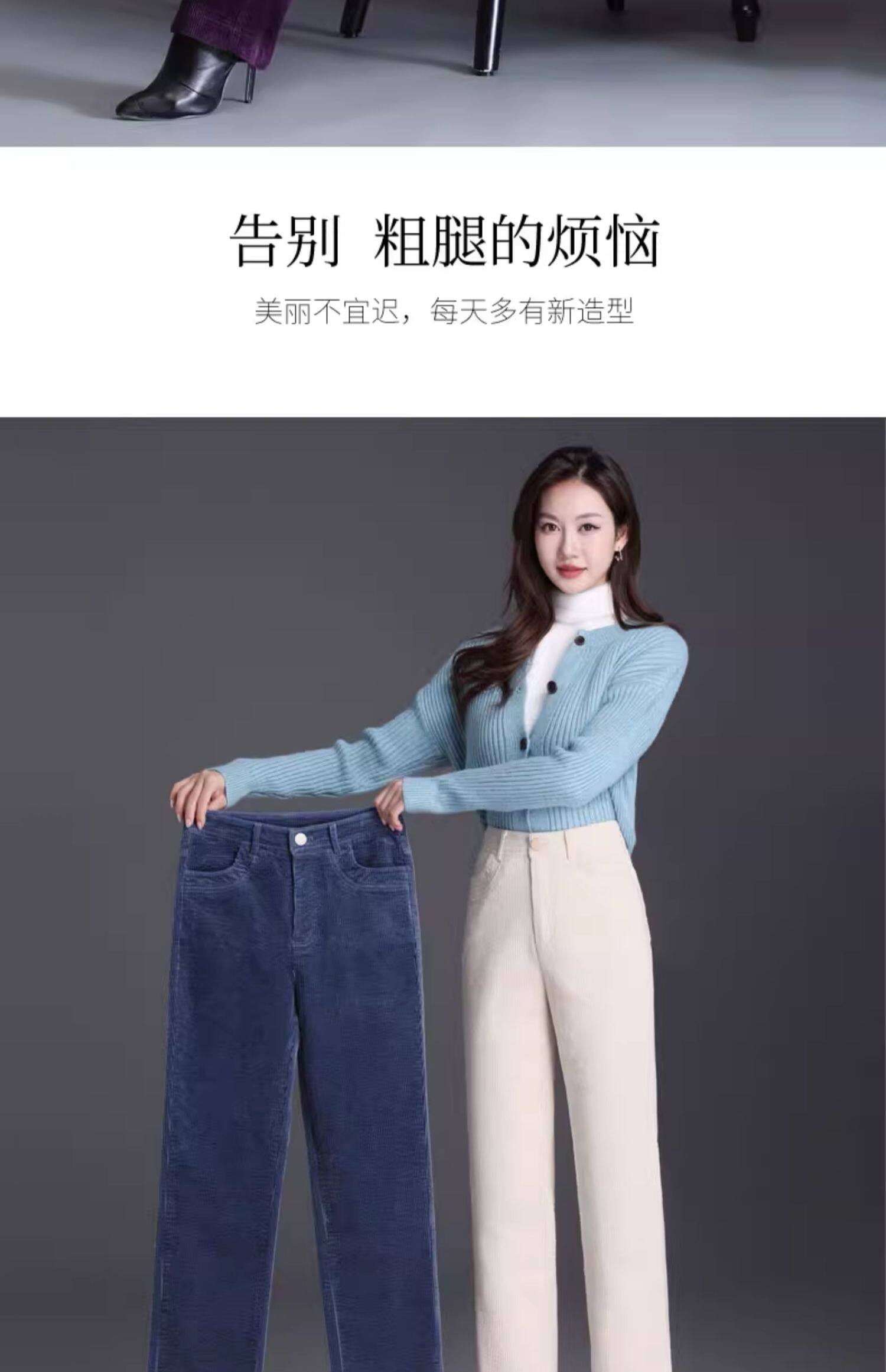 燈芯絨媽媽褲子女秋冬季2025新款加絨加厚直筒褲中老年條絨女褲