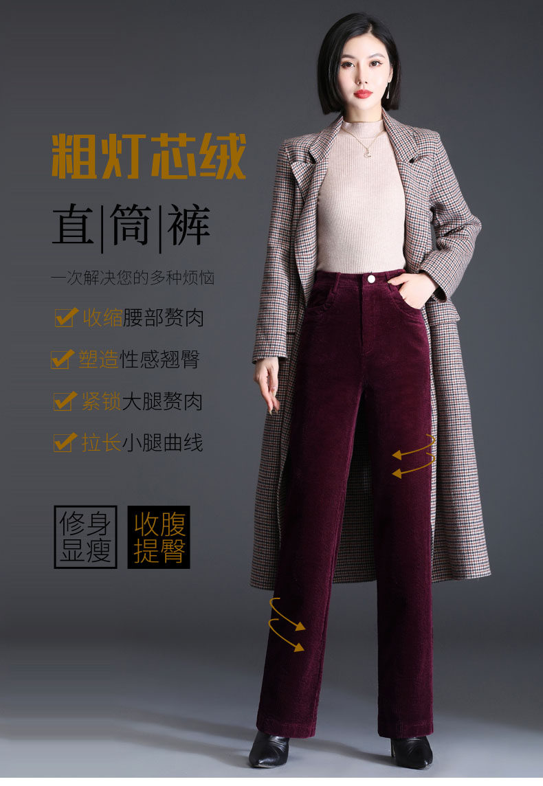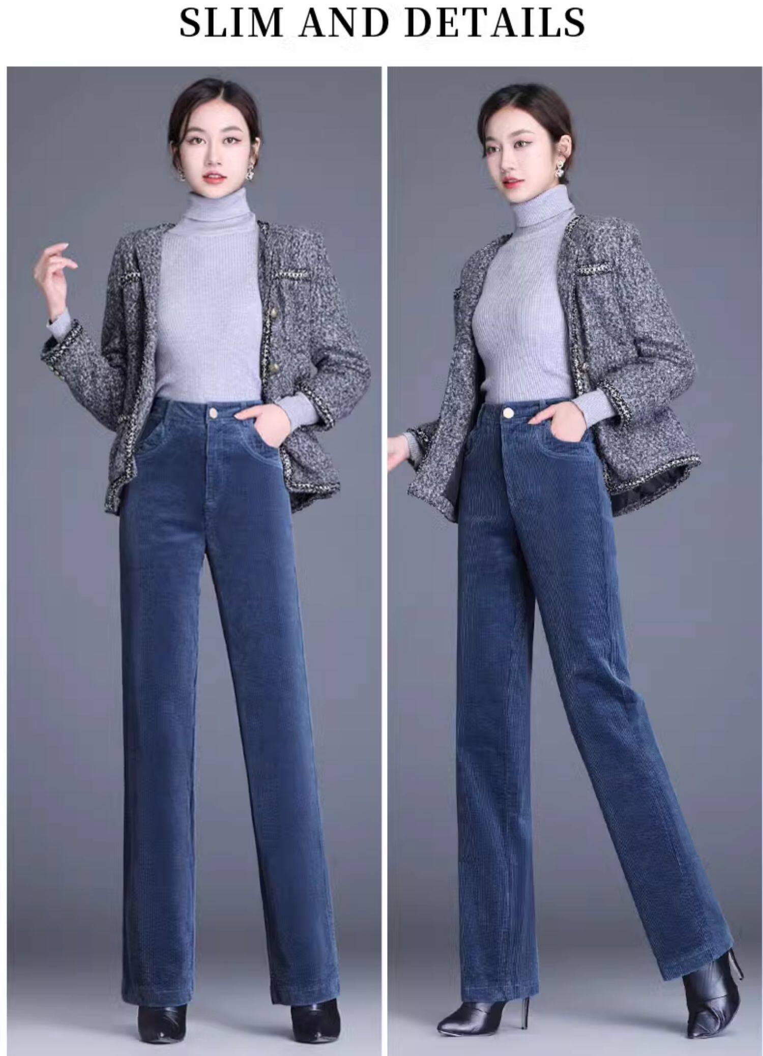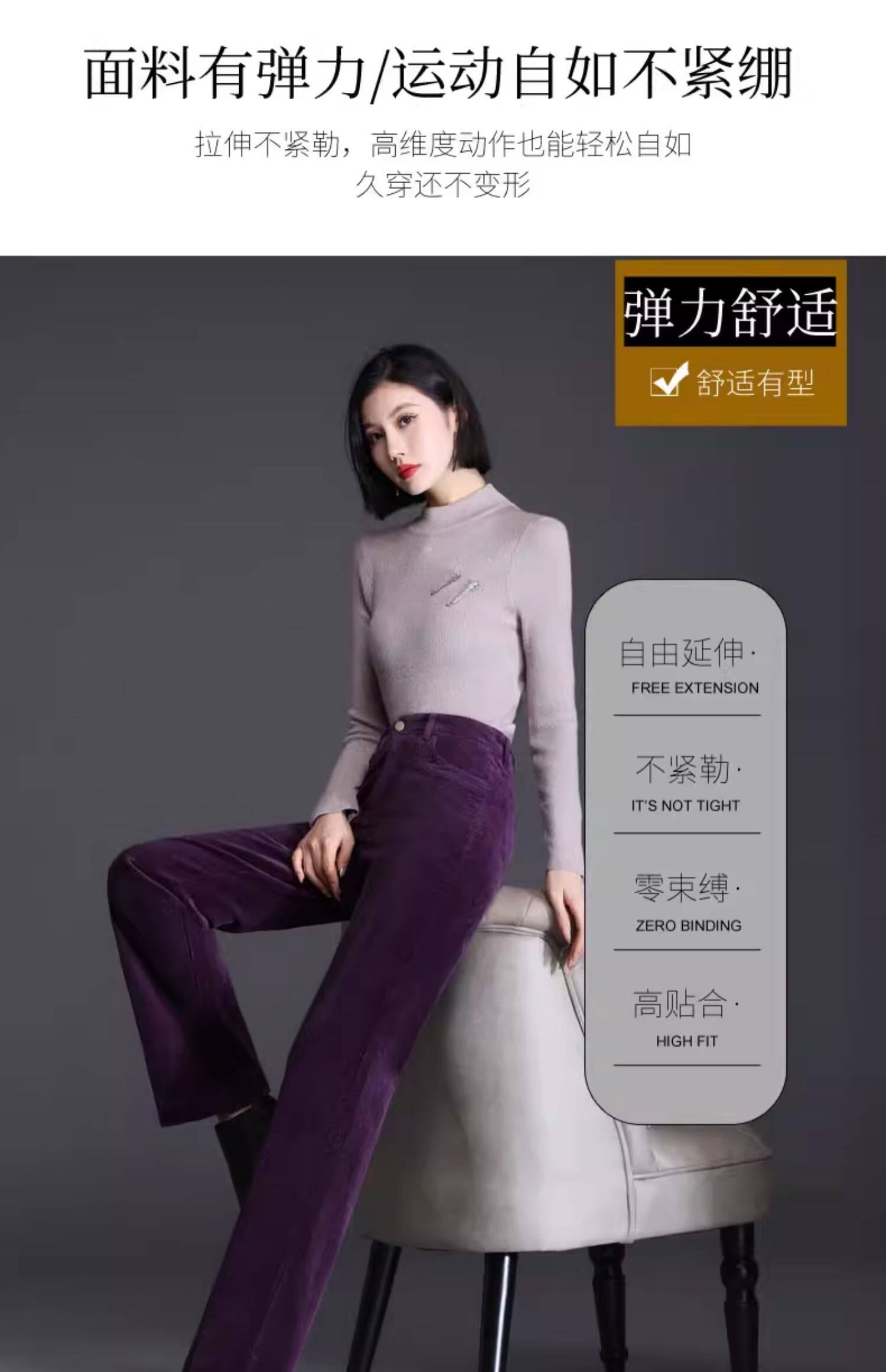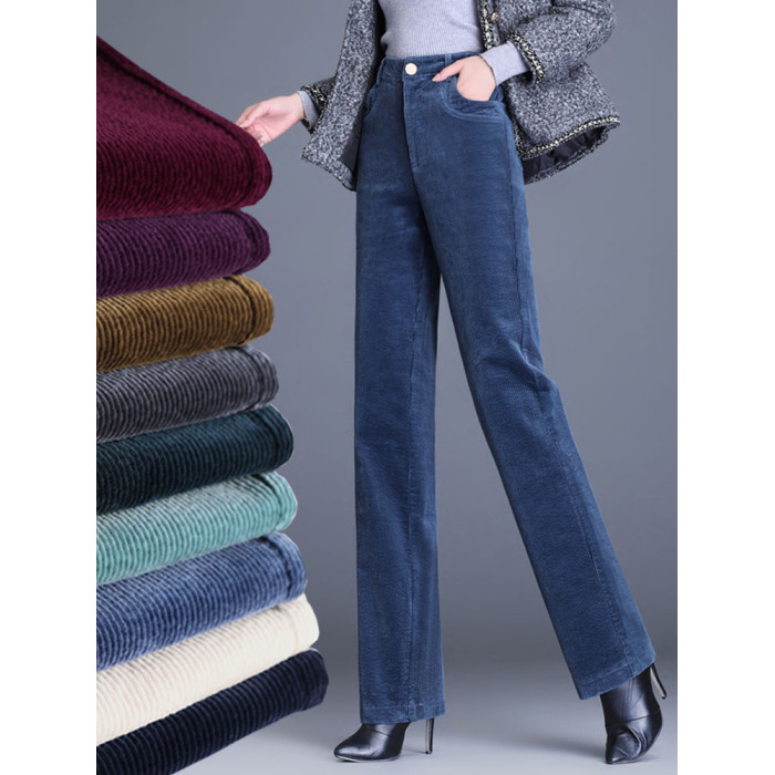 燈芯絨媽媽褲子女秋冬季2025新款加絨加厚直筒褲中老年條絨女褲