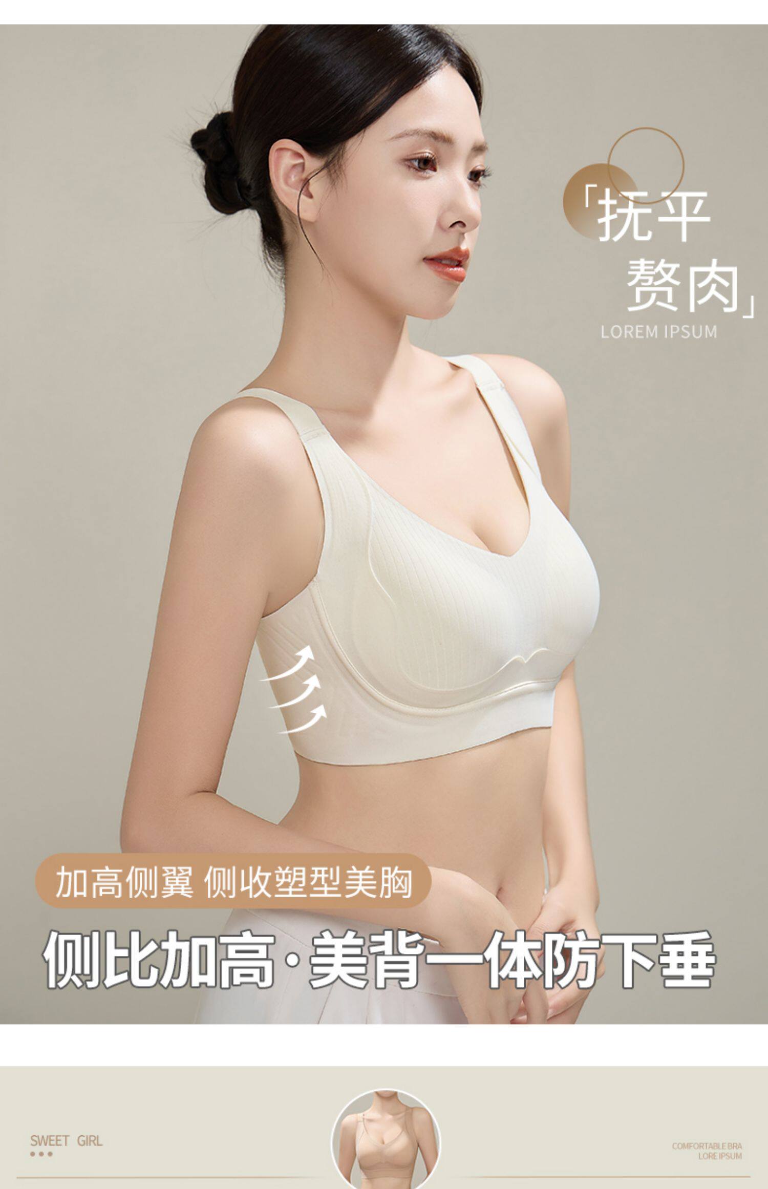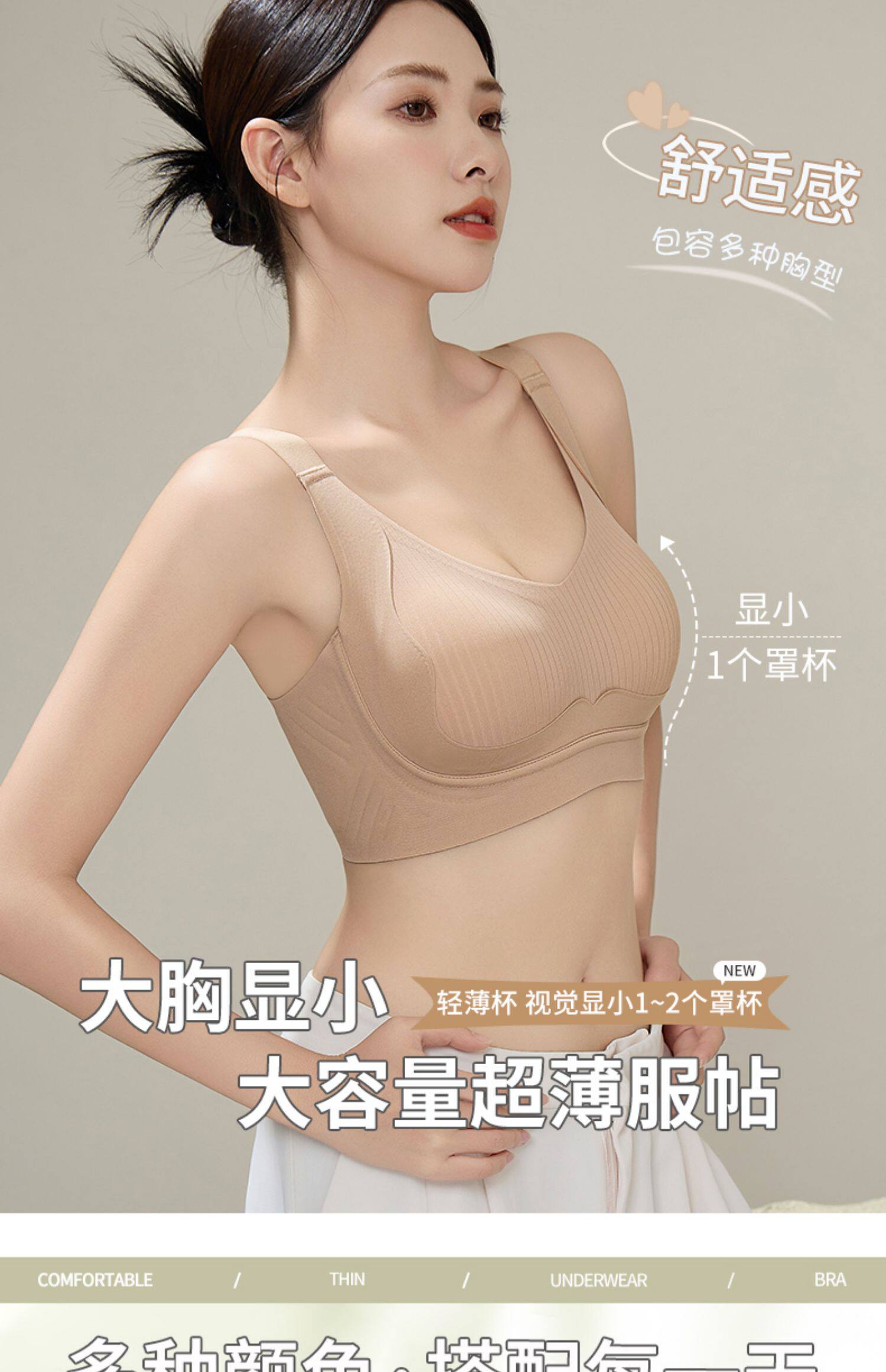 無痕內衣女大胸顯小美背全罩杯防下垂收副乳提拉上托大碼文胸薄款