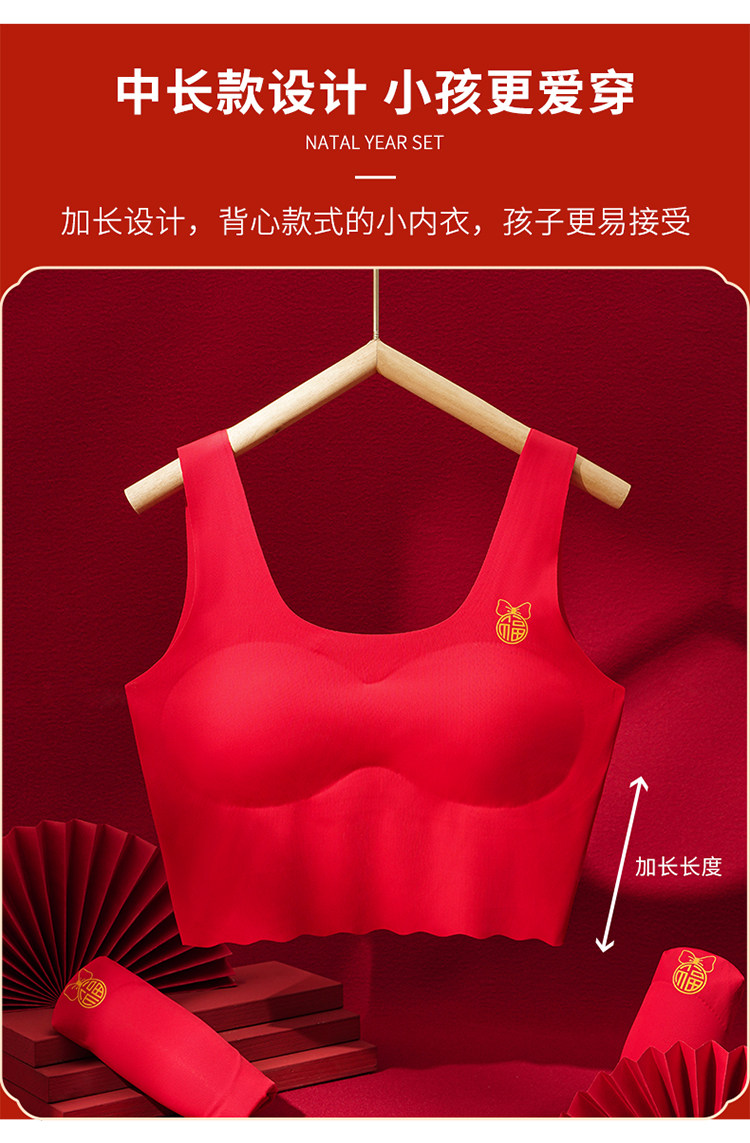 女童紅色本命年內衣2026蛇年衣服學生兒童少女發育期文胸背心12嵗
