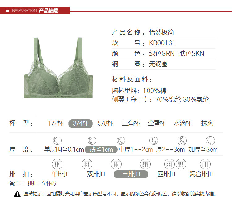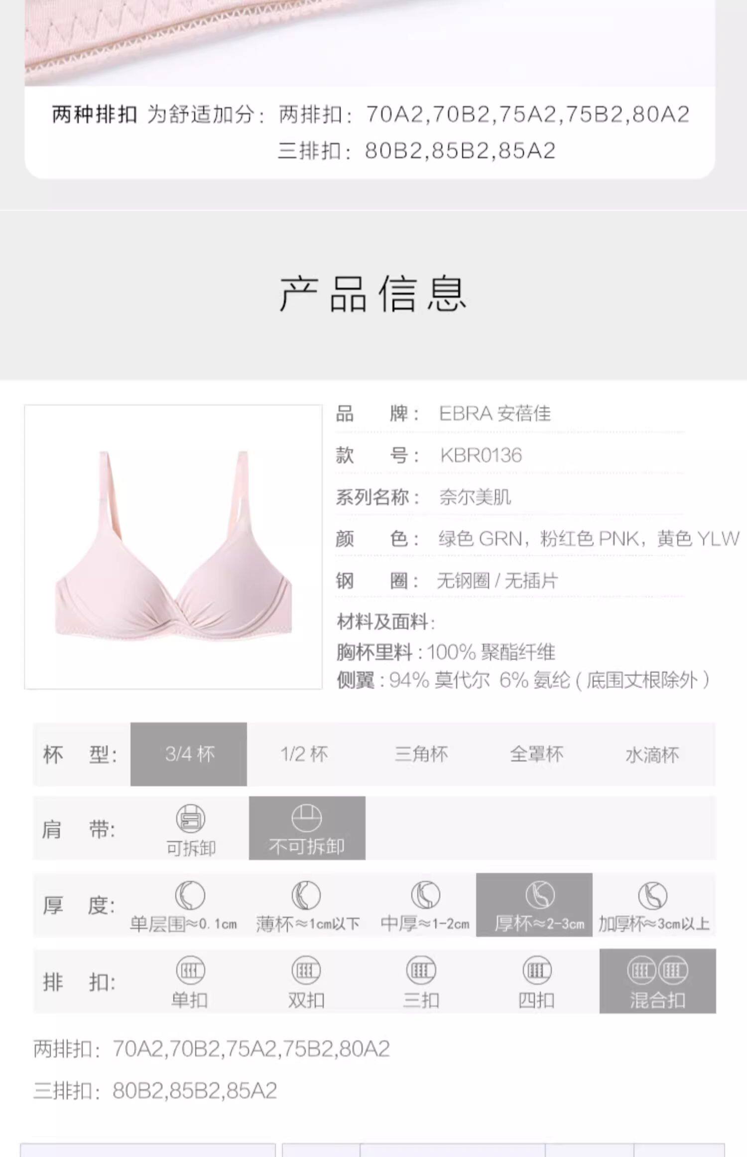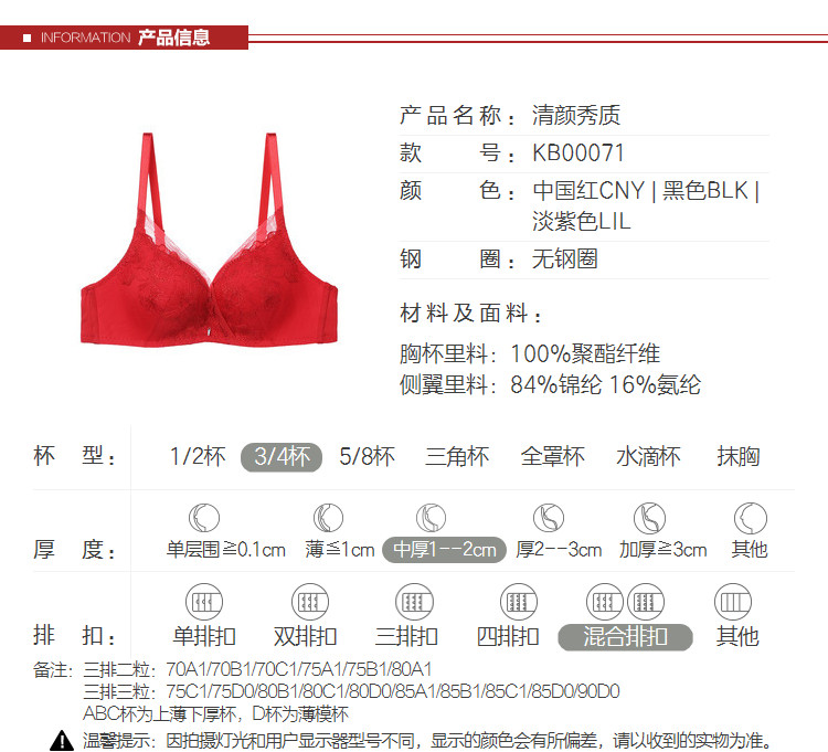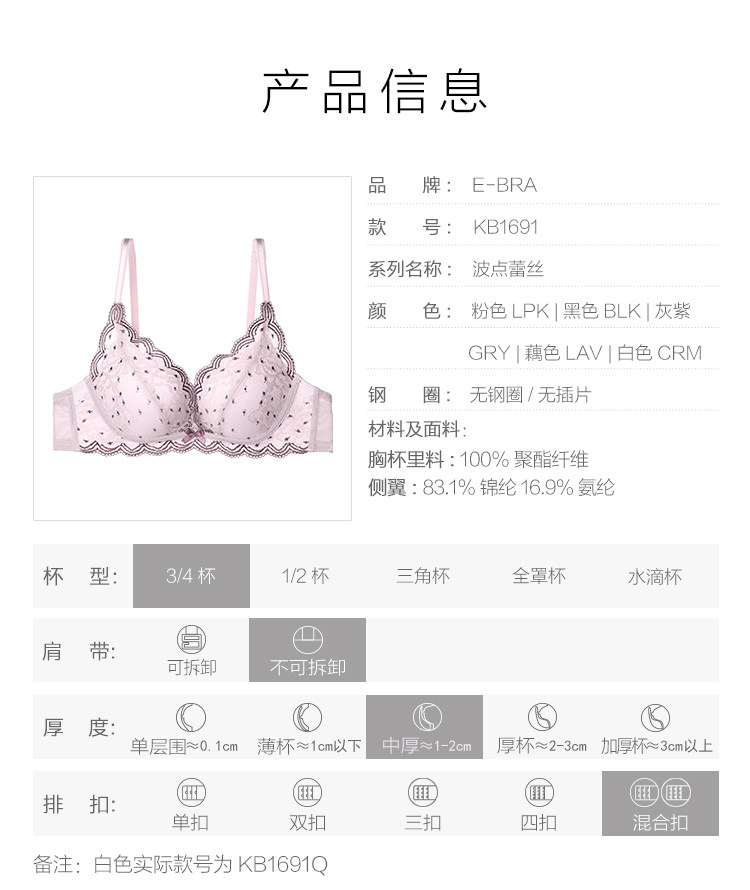 | 罩杯款式 | 3/4罩杯 |