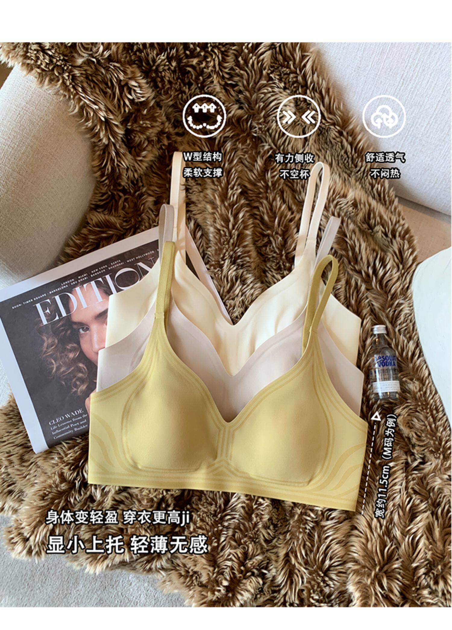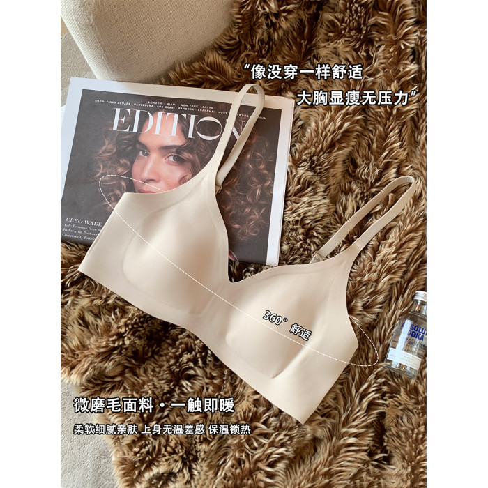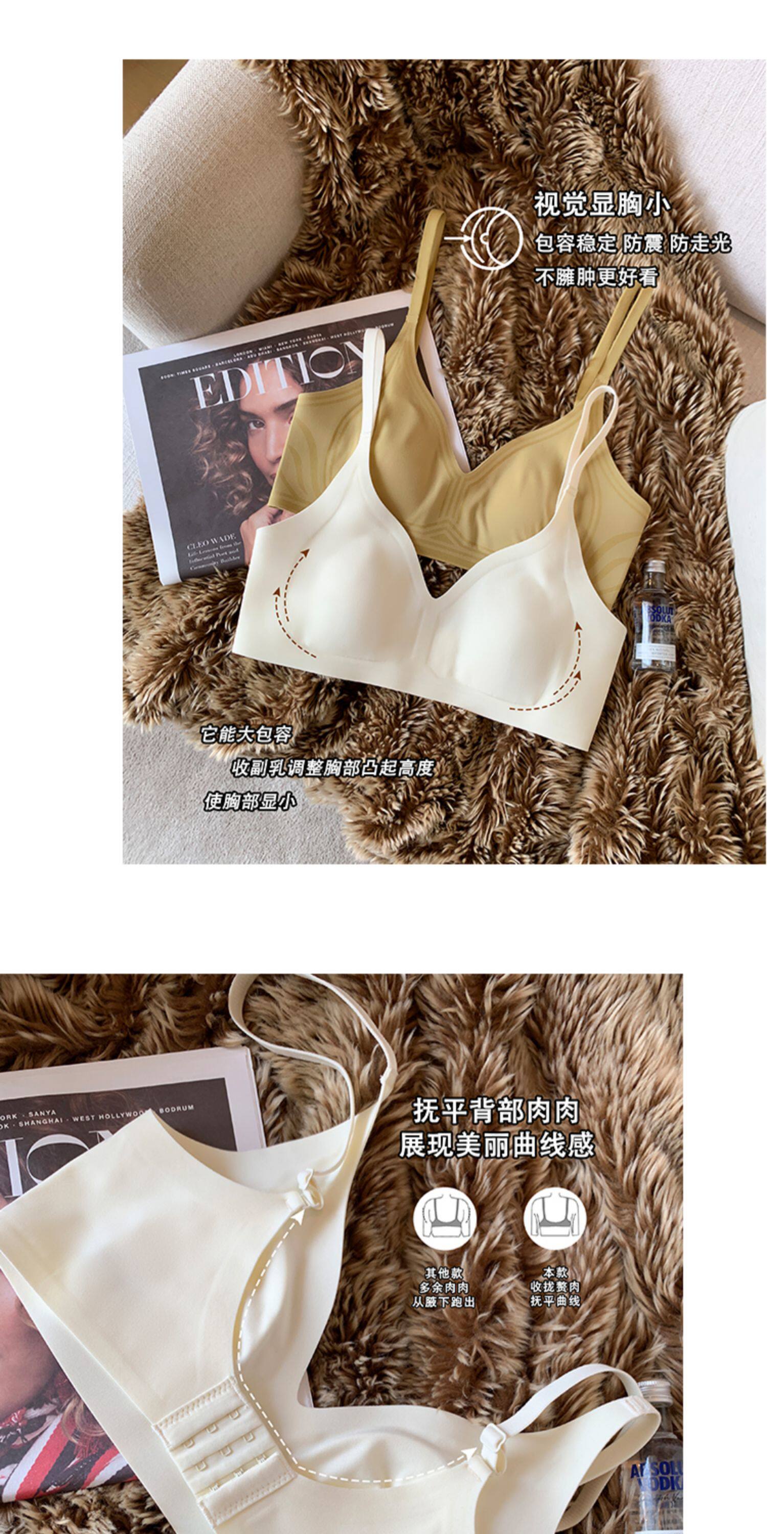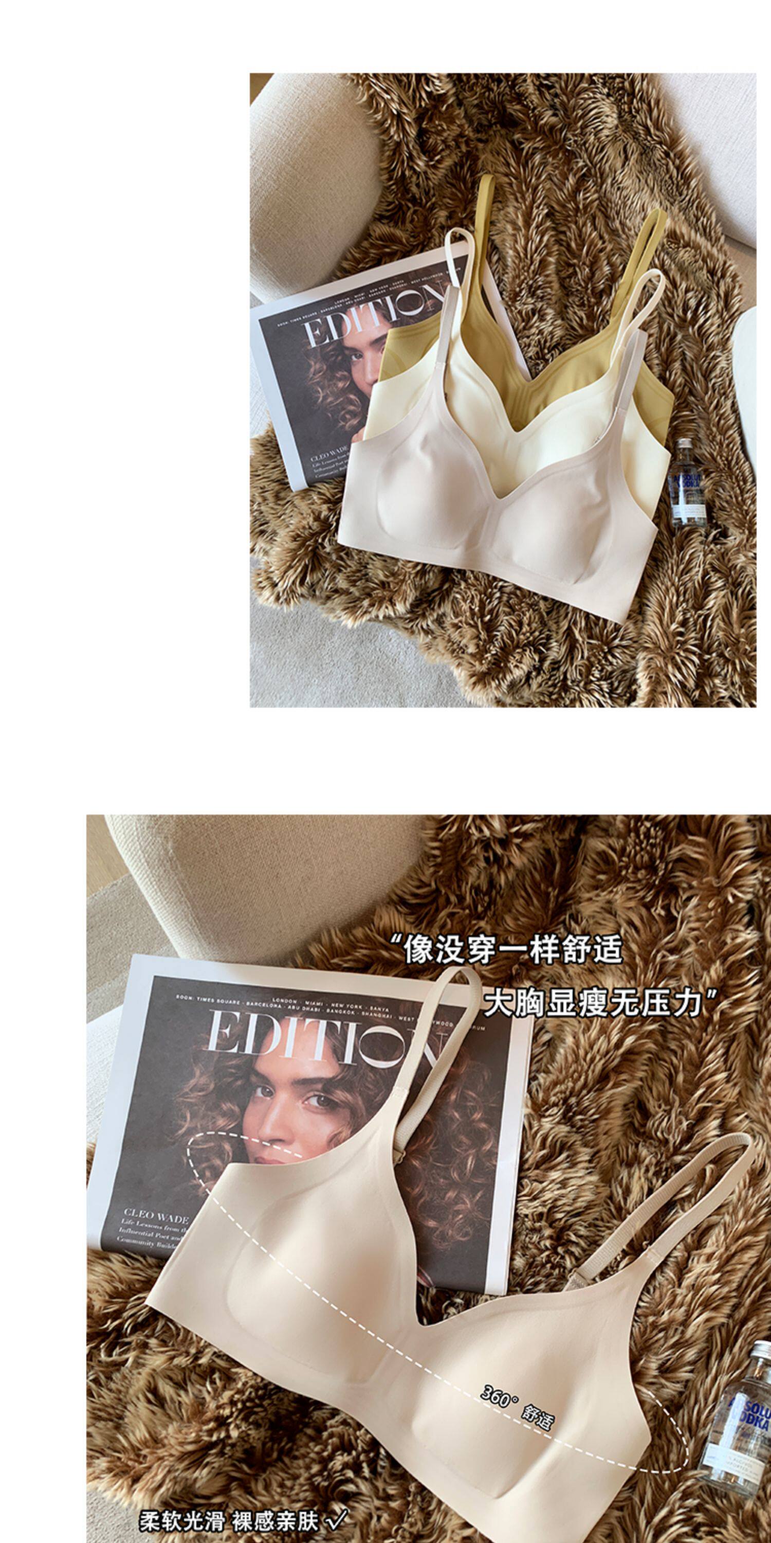 提未蘇薄款無痕內衣女士大胸顯小兔耳杯收副乳防下垂無鋼圈文胸罩