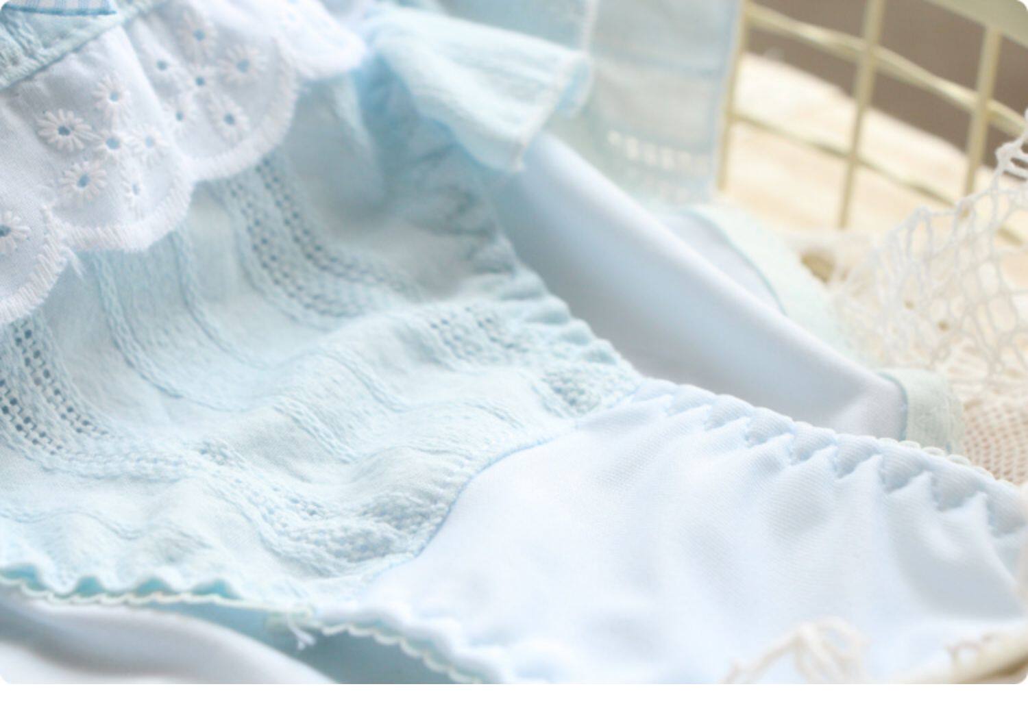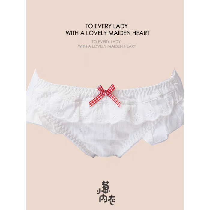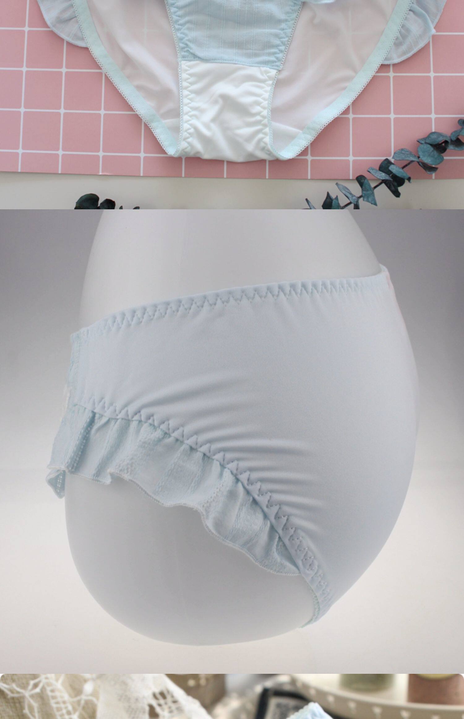 4863新款甜美純色可愛日系胖次洛麗塔飛邊三角褲絲白色藍色豆沙粉