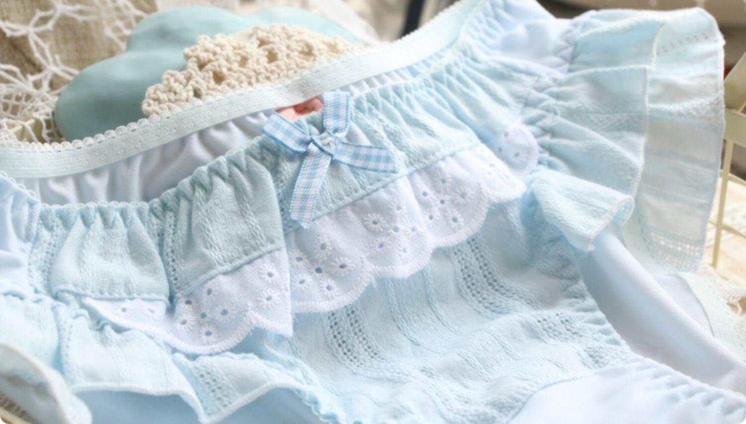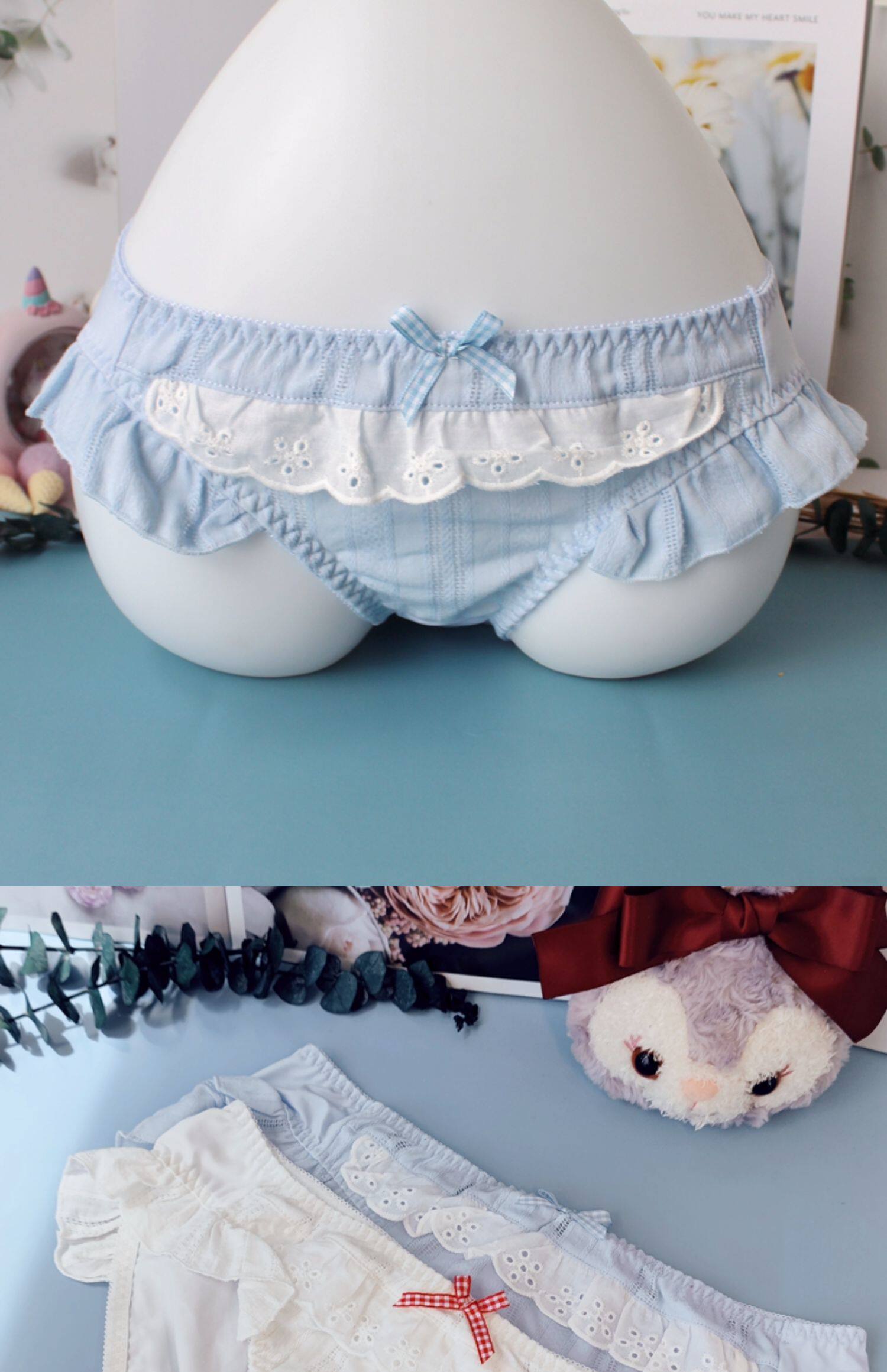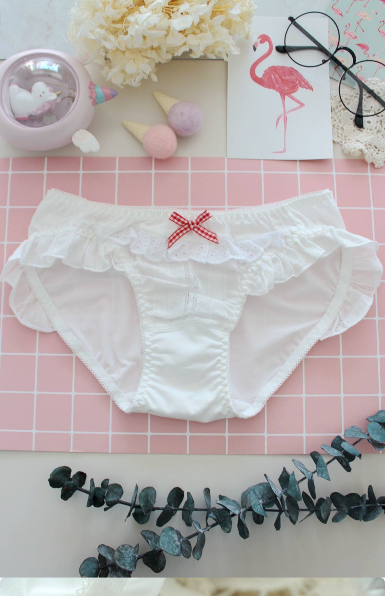 4863新款甜美純色可愛日系胖次洛麗塔飛邊三角褲絲白色藍色豆沙粉