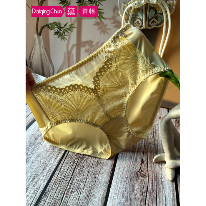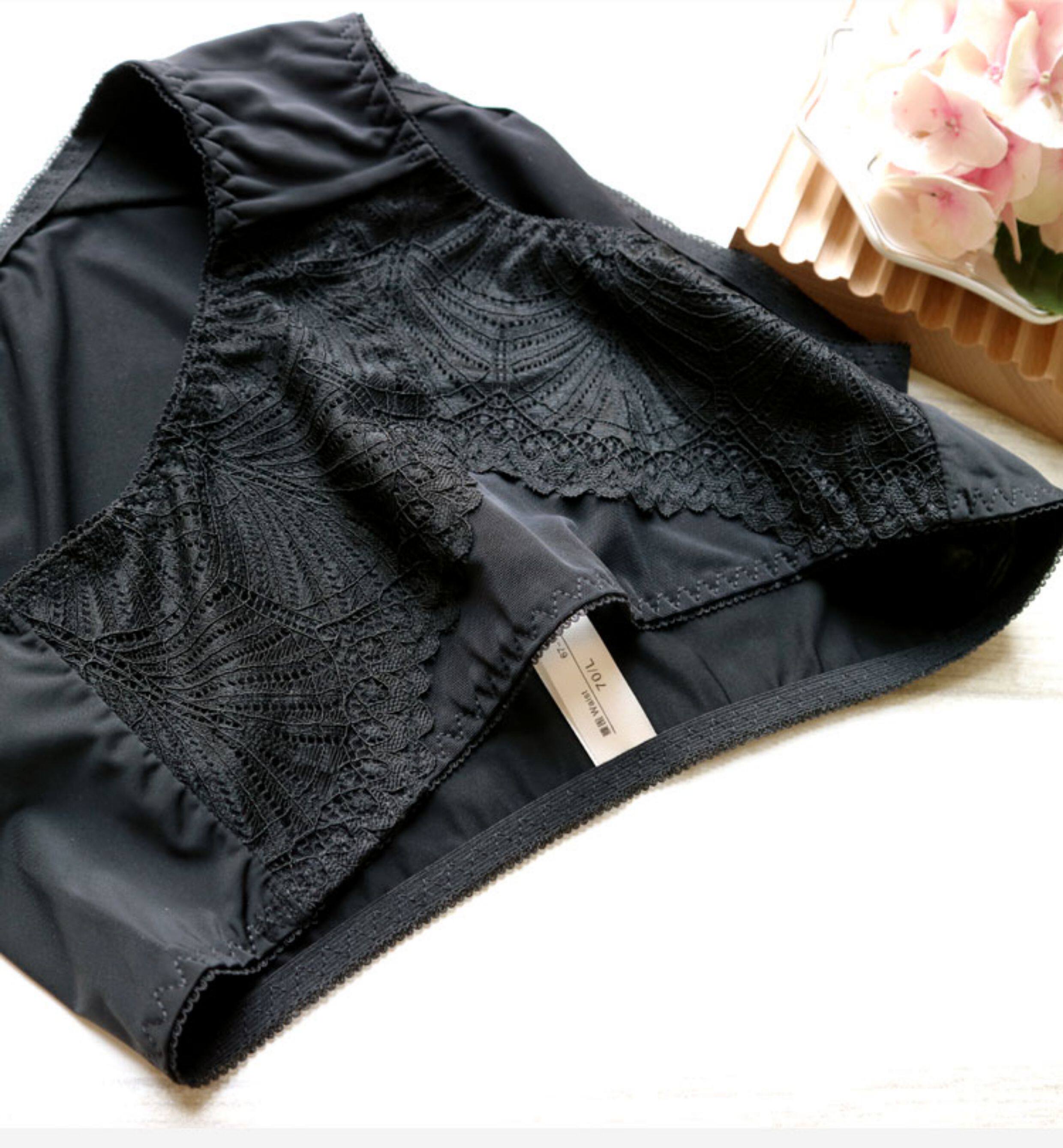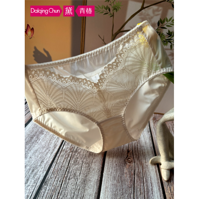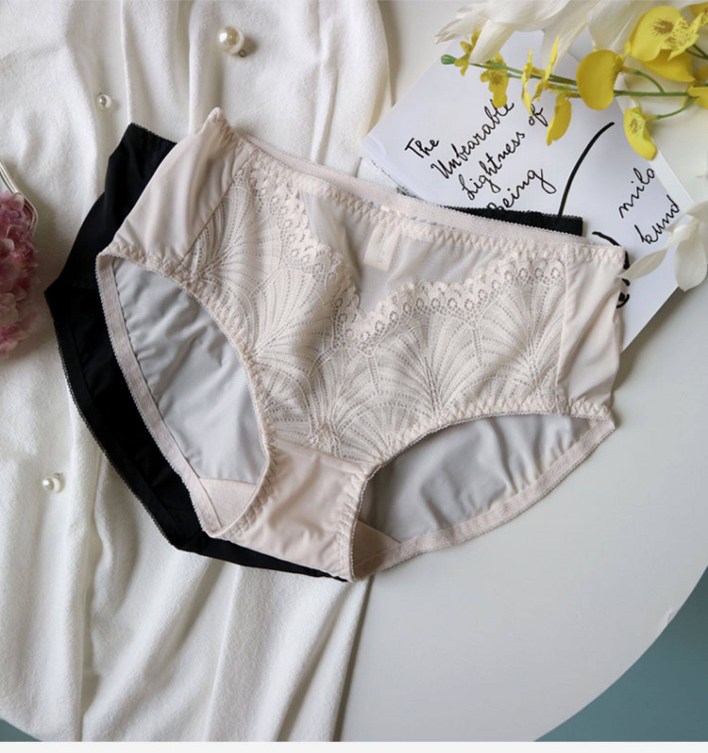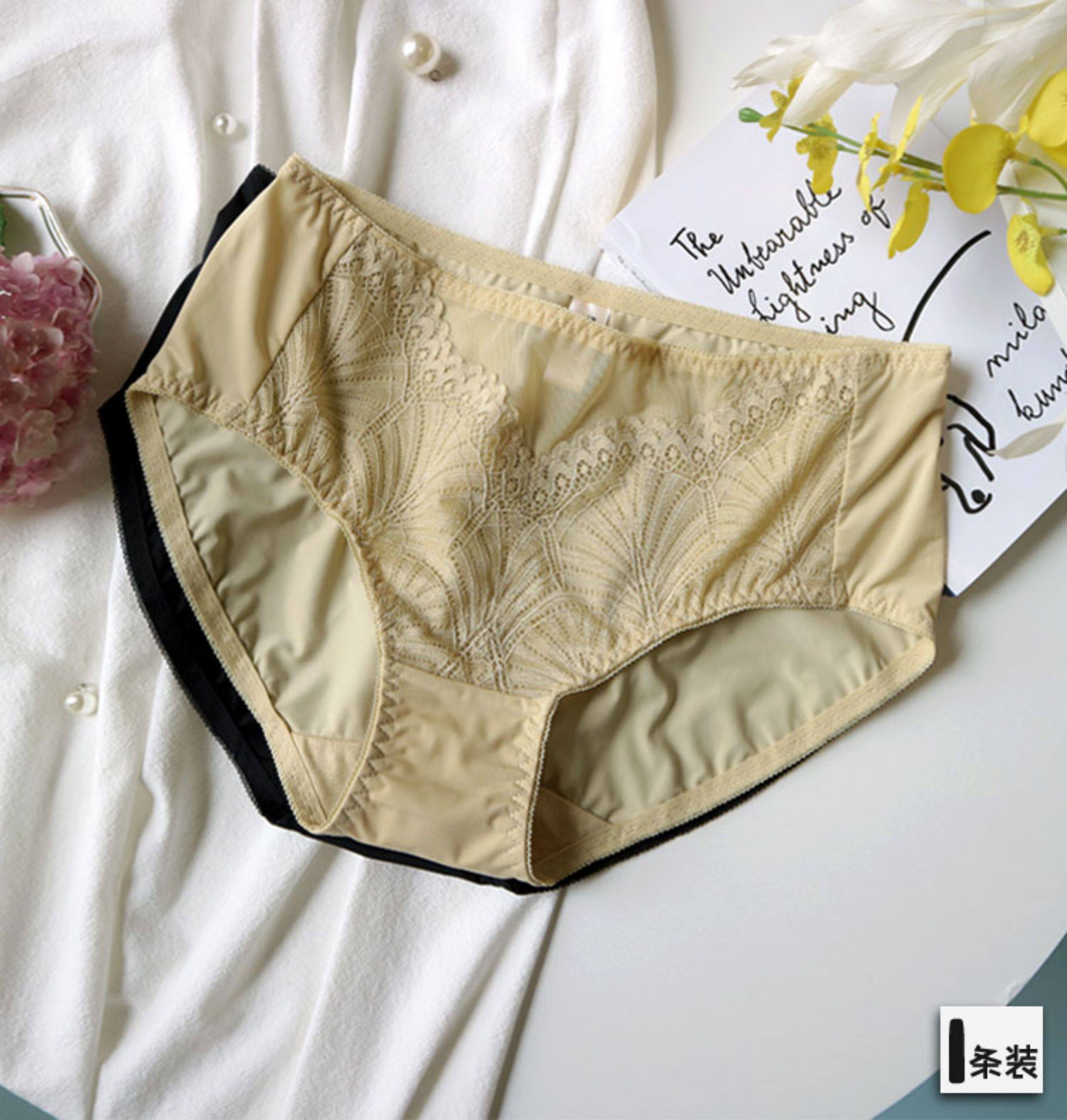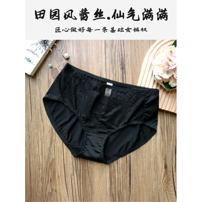 黑色品牌女士田園風蕾絲牛奶絲內褲中腰速乾舒適冰絲爆款三角短褲