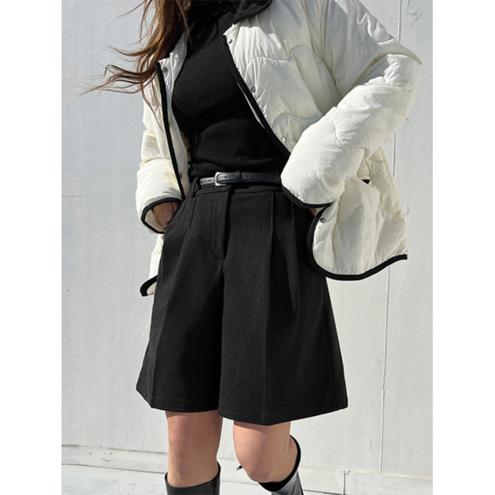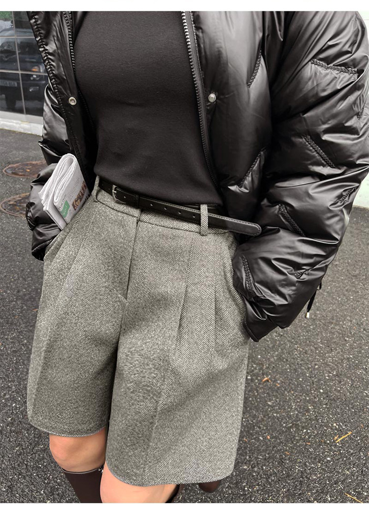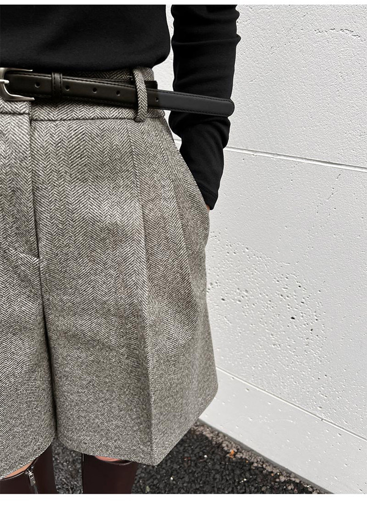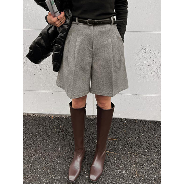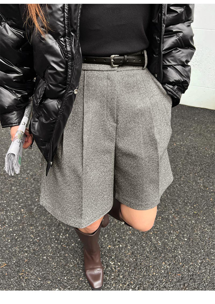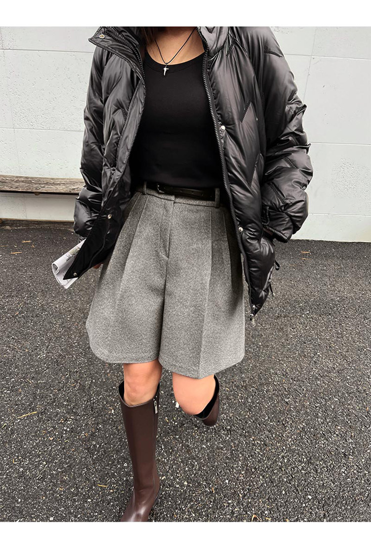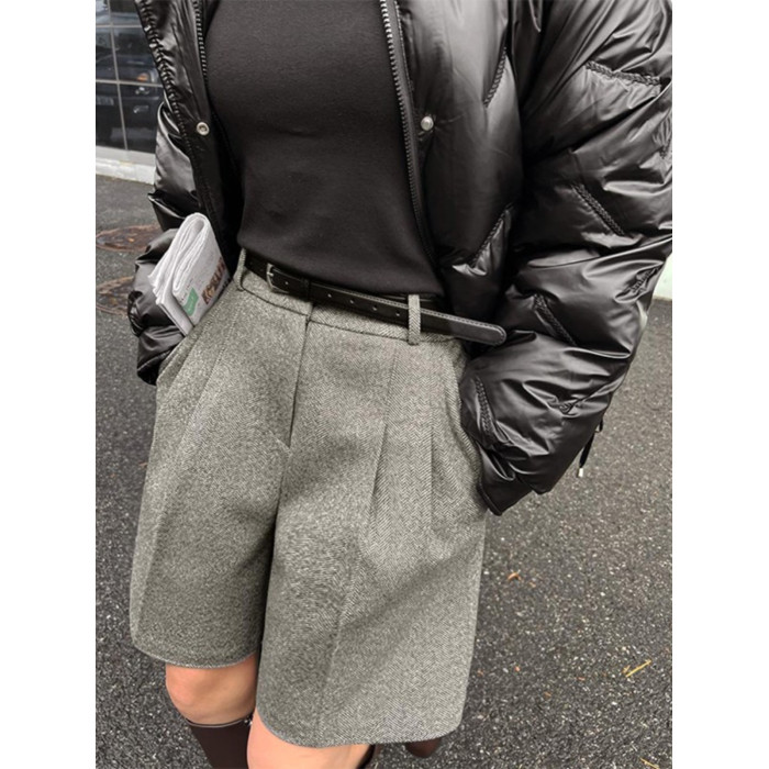 灰色毛呢短褲女秋冬季2025新款爆款潮小個子外穿加厚a字版五分褲