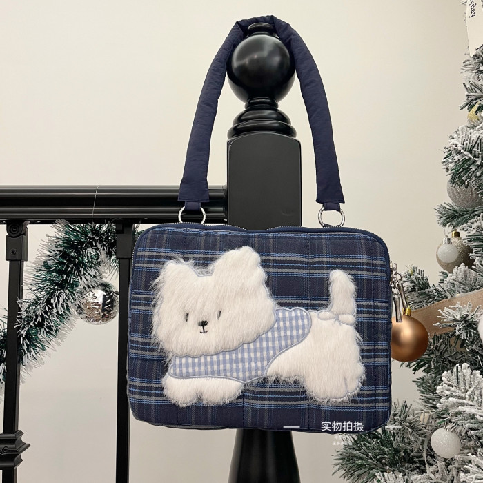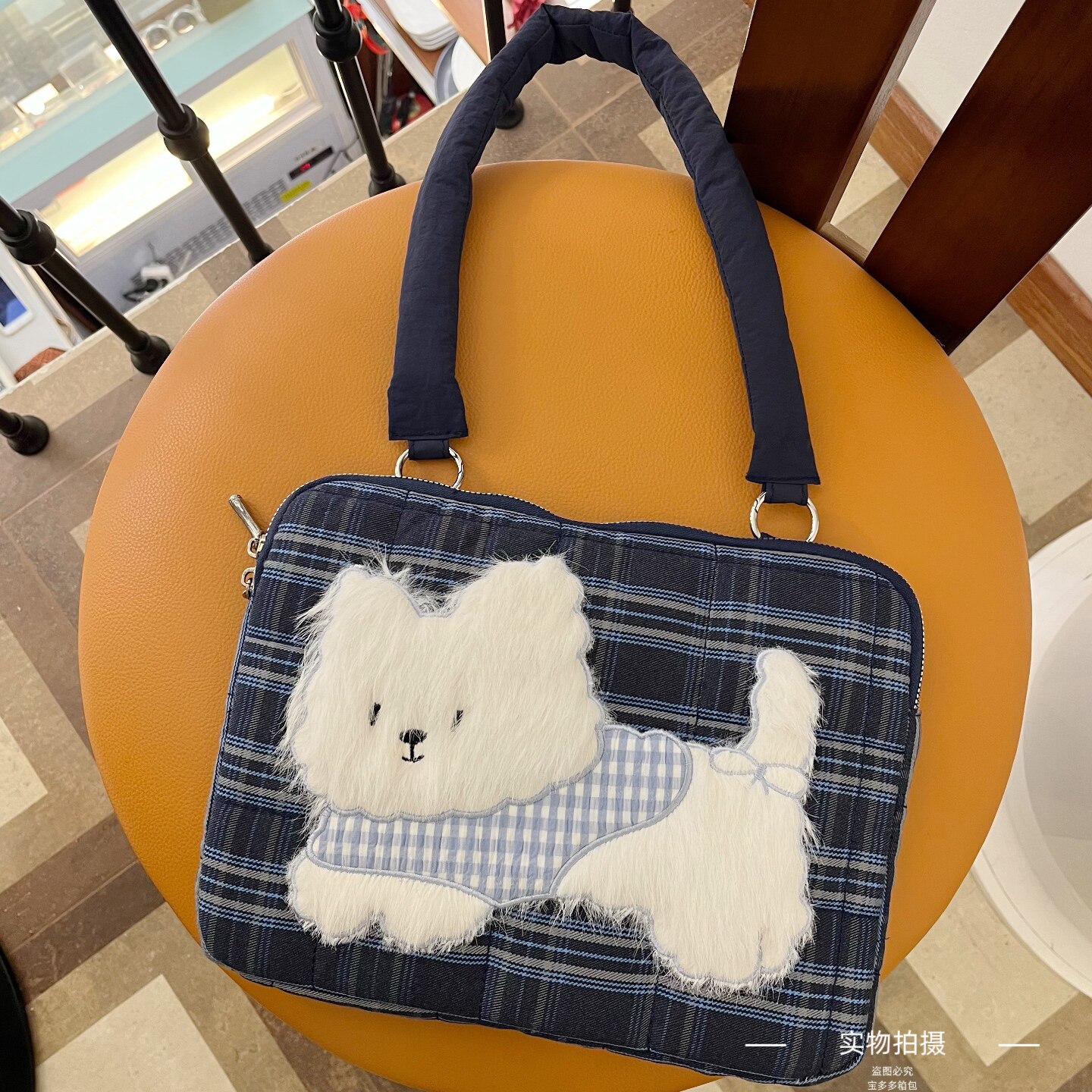 原創長毛小狗貼布平板IPAD筆電單肩帶內膽電腦包太空棉防震防摔日常防濺水適用10寸11寸13寸14寸15寸16寸