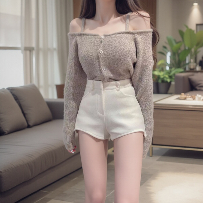 短褲女秋冬款外穿冬季2024新款爆款毛呢加厚氣質高腰濶腿a字靴褲