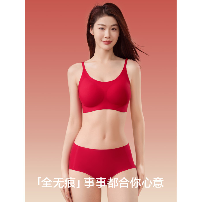 草本初色內衣套裝女本命年紅反重力提拉聚攏7A無鋼圈收副乳文胸罩