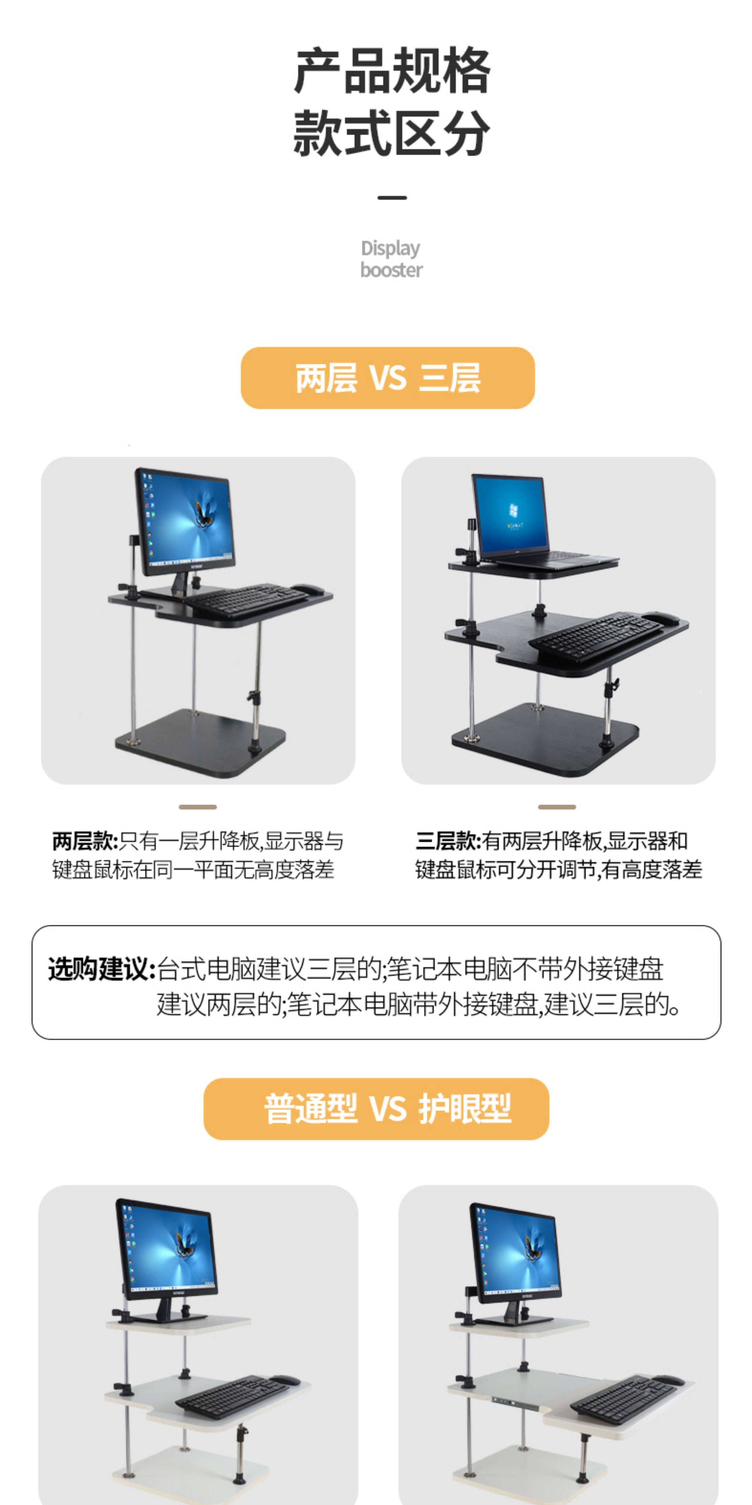 站立式辦公升降電腦桌筆電顯示器鍵盤升降支架站著用寫字看書桌