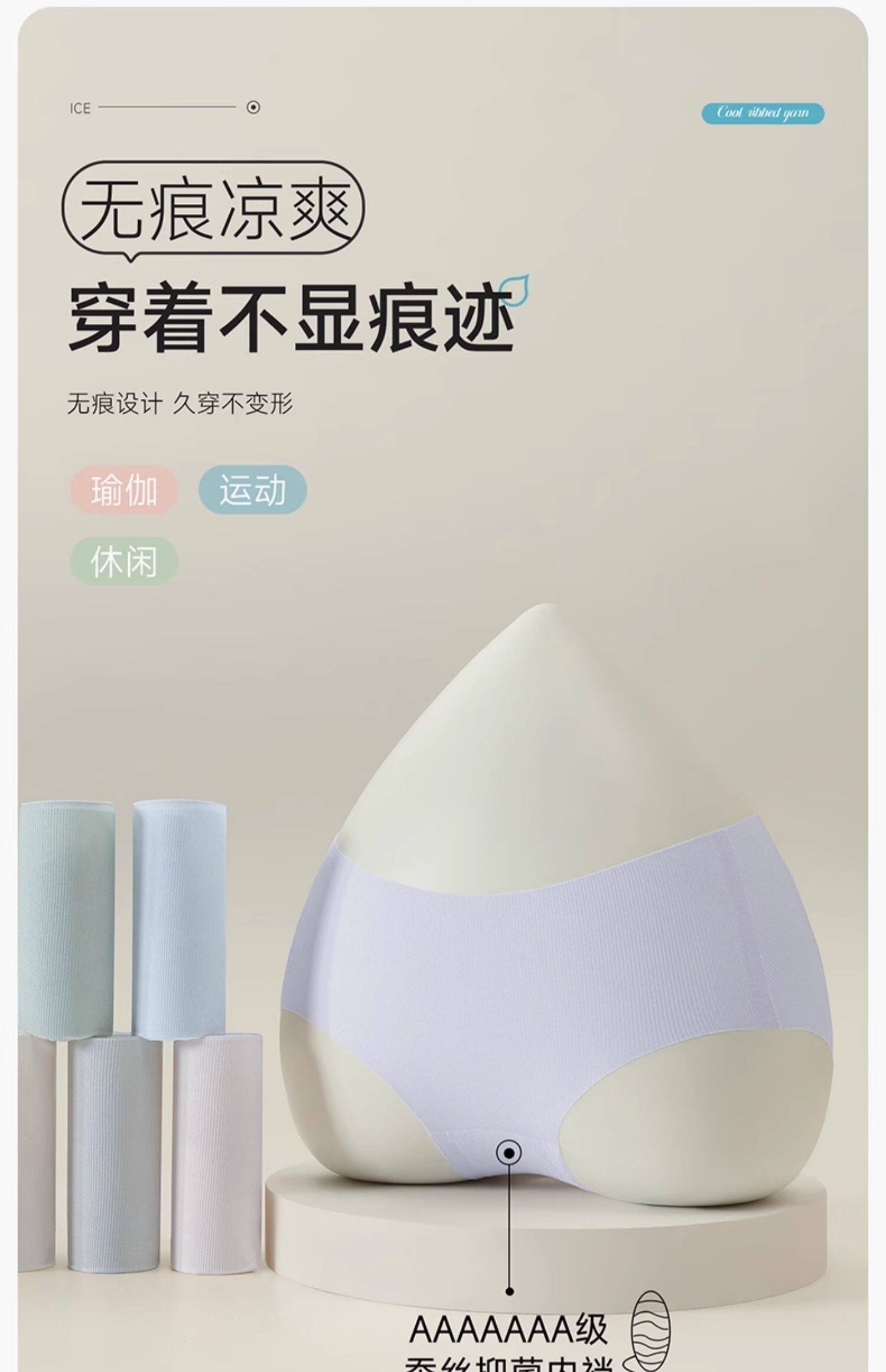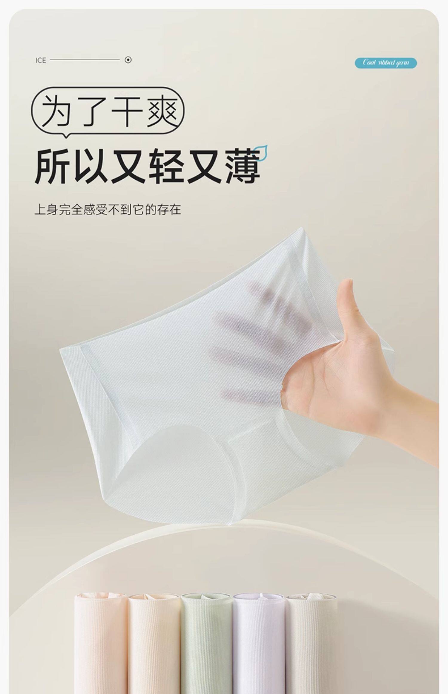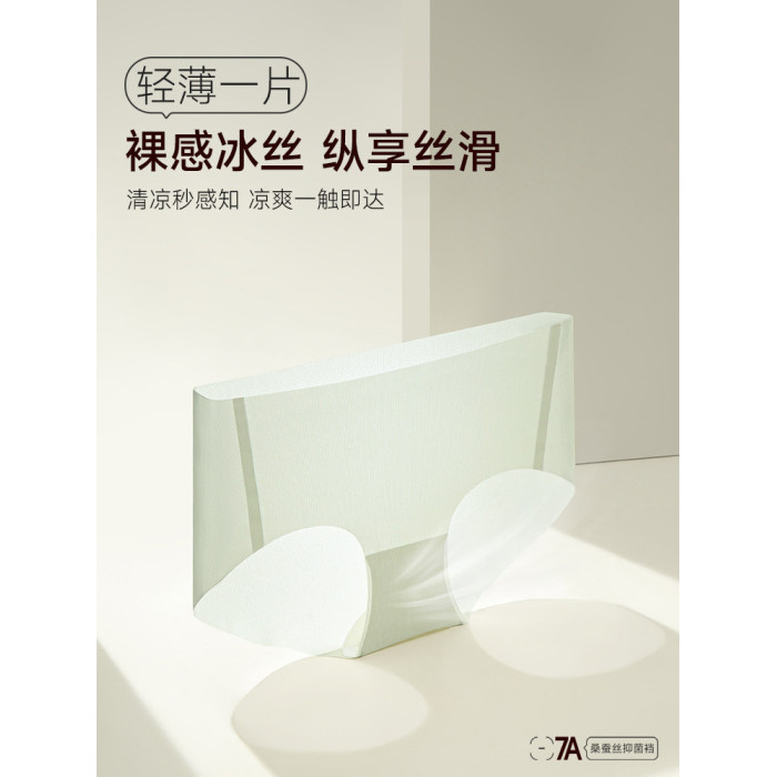 歐迪芬冰絲無痕內褲女士中腰夏季薄款7A桑蠶絲抗菌速乾女生三角褲