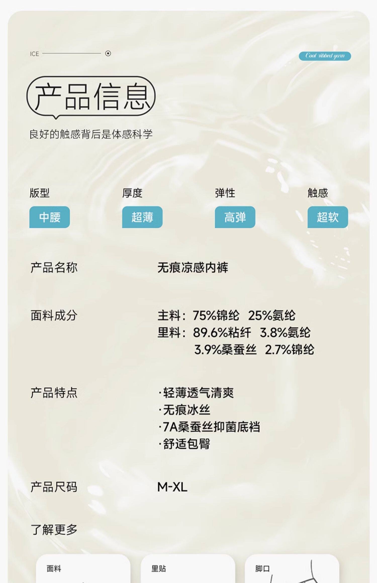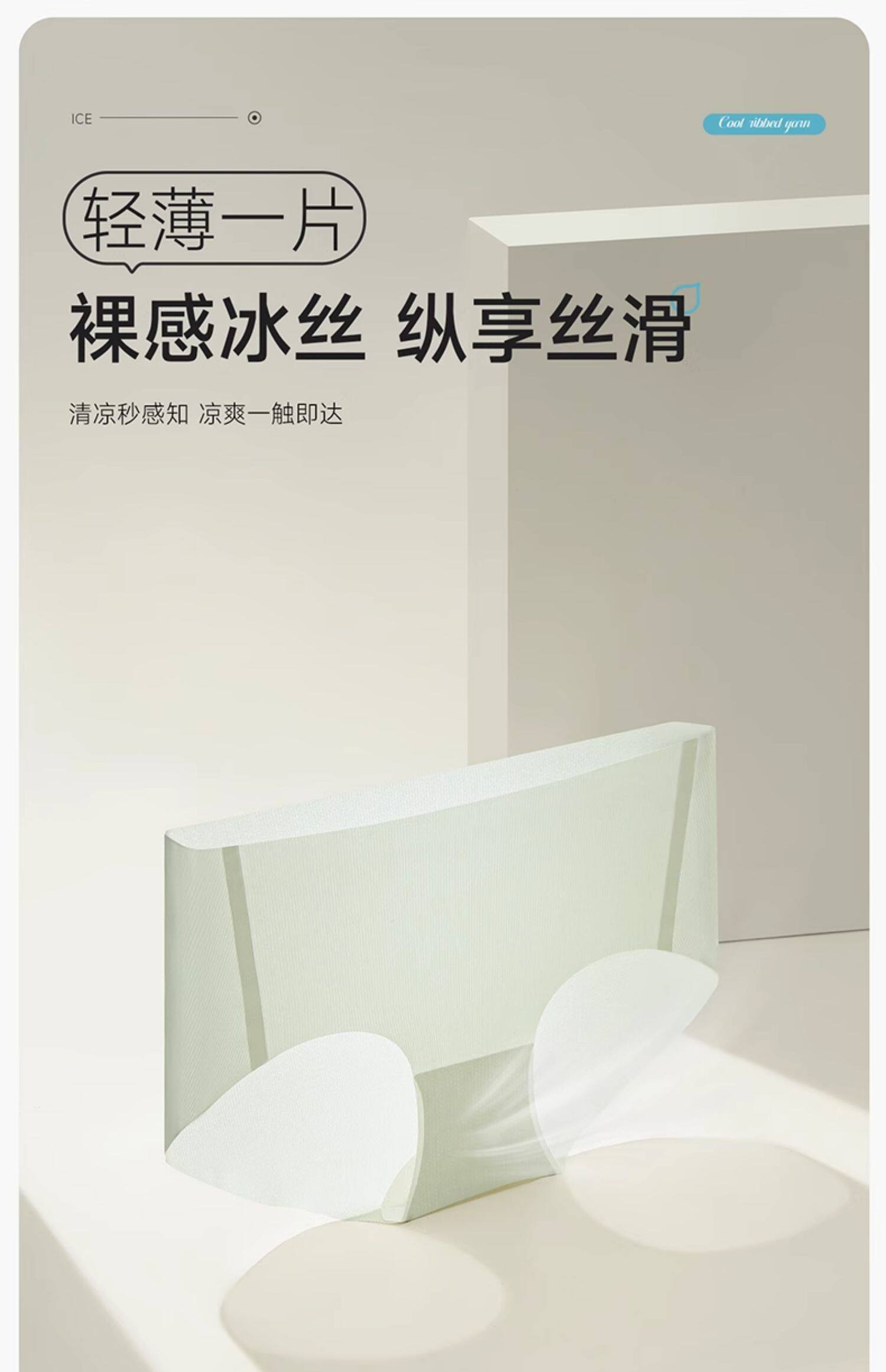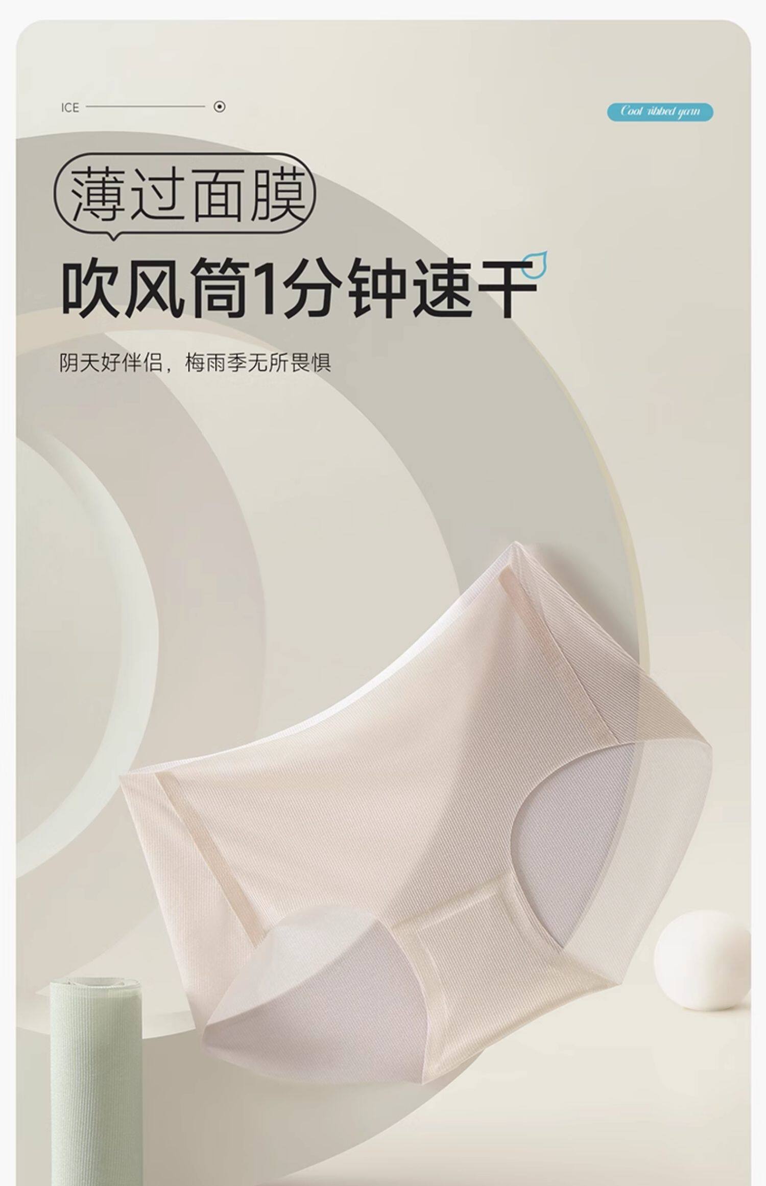 歐迪芬冰絲無痕內褲女士中腰夏季薄款7A桑蠶絲抗菌速乾女生三角褲