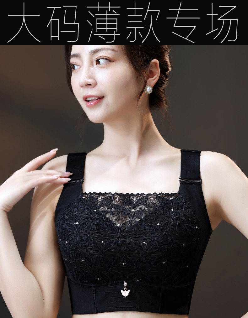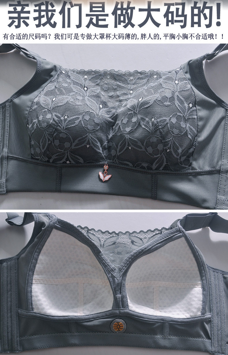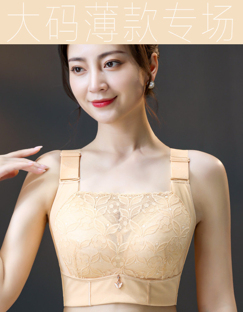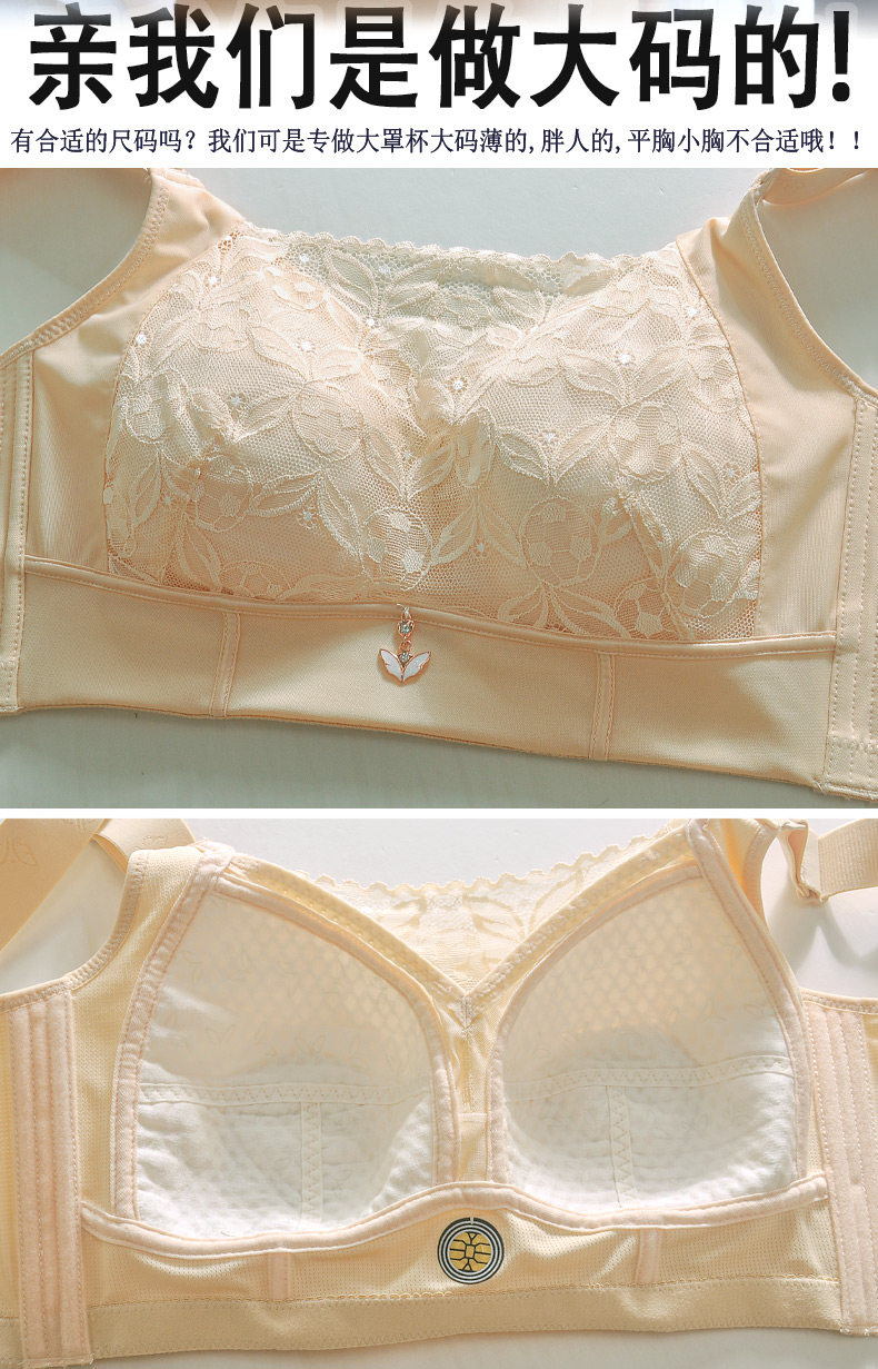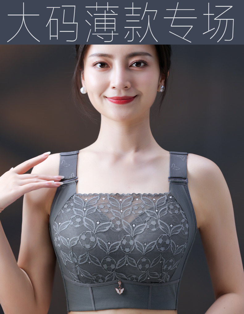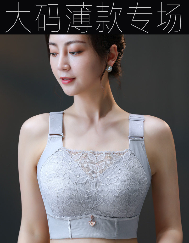 大碼大胸顯小文胸薄款收副乳防下垂聚攏無鋼圈透氣性感蕾絲內衣女