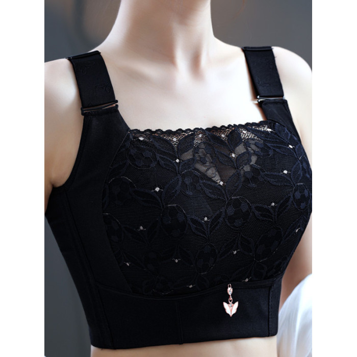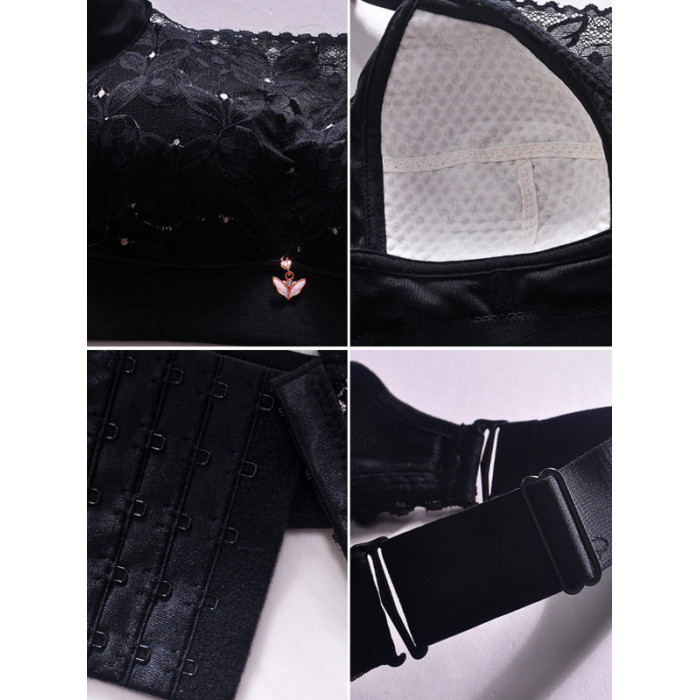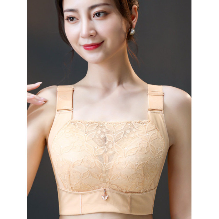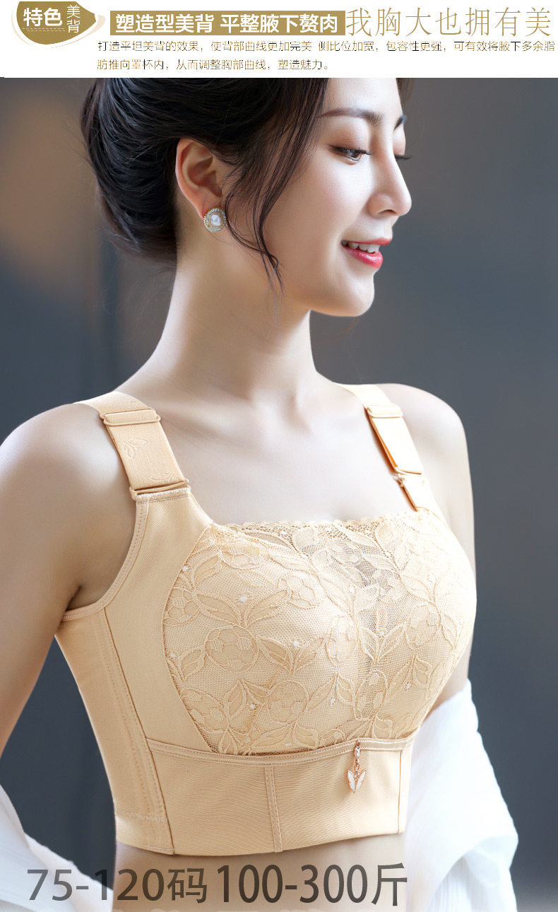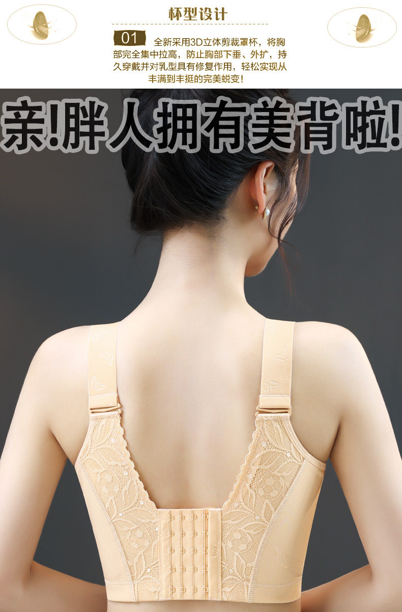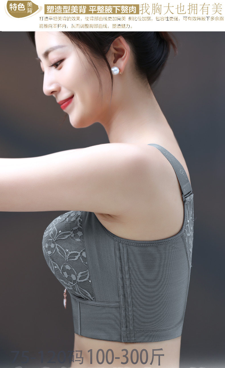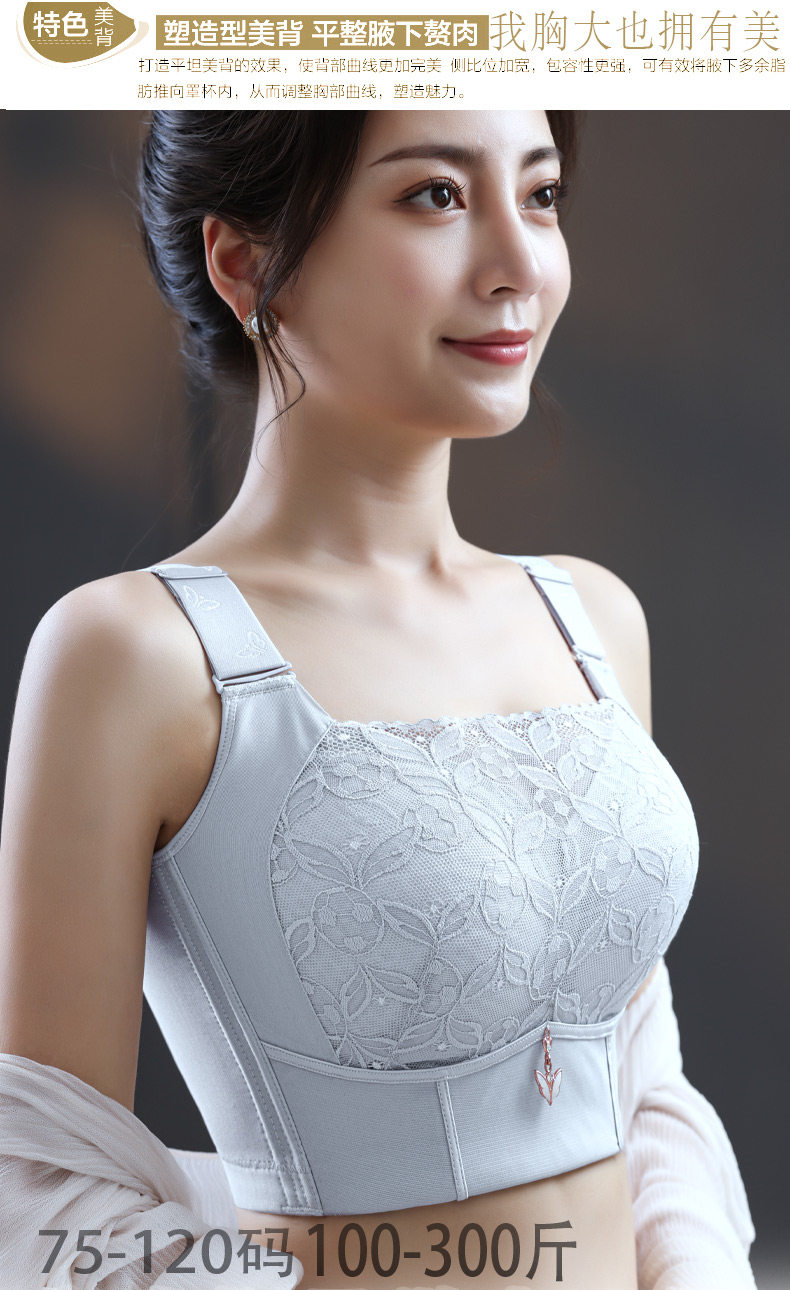 大碼大胸顯小文胸薄款收副乳防下垂聚攏無鋼圈透氣性感蕾絲內衣女