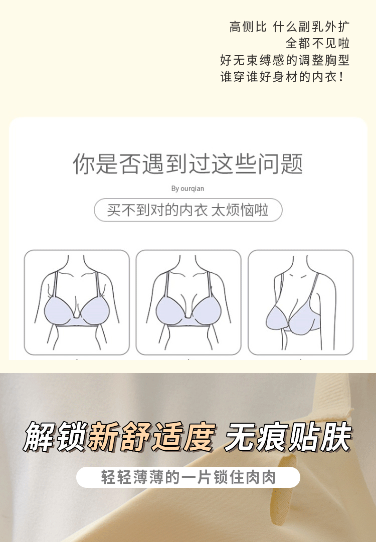 無痕內衣女聚攏小胸夏季薄款無鋼圈少女固定杯收副乳防下垂文胸罩