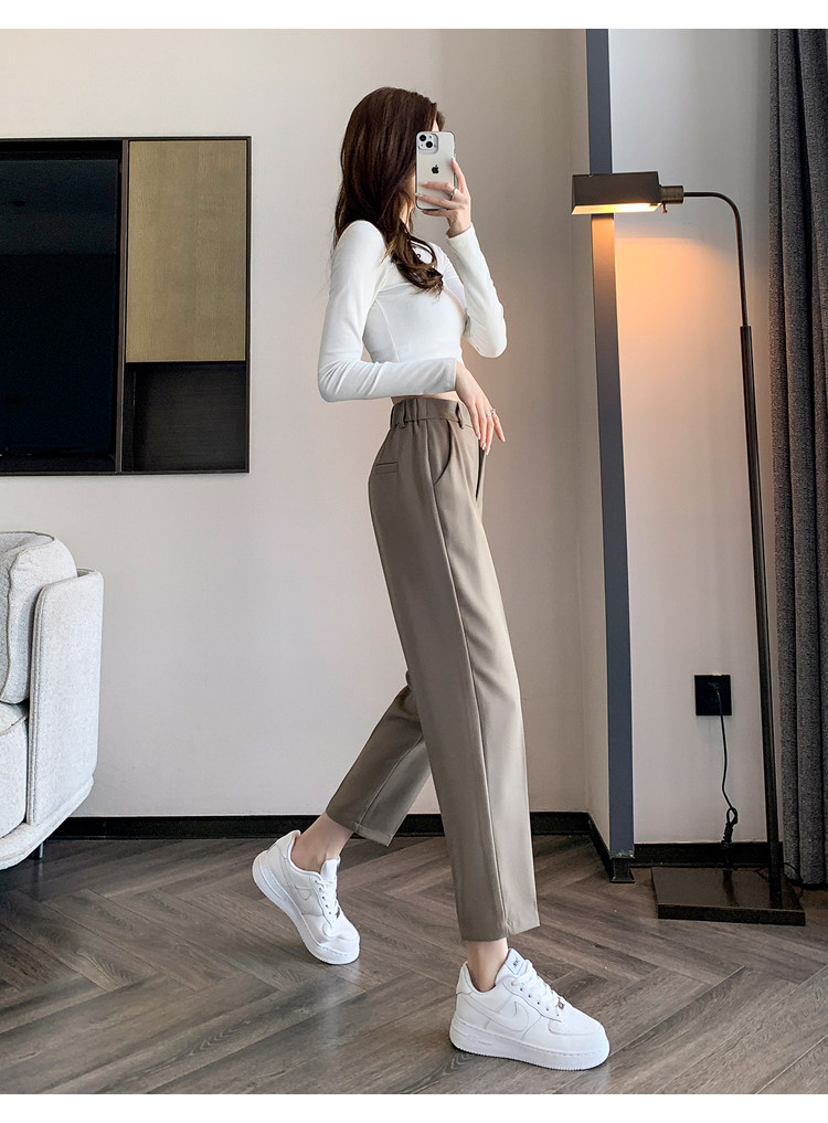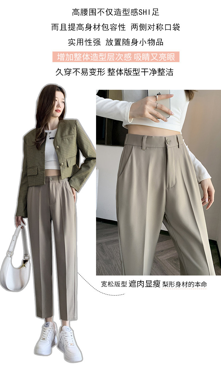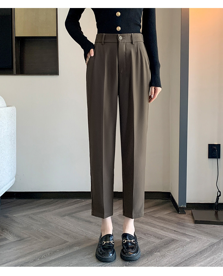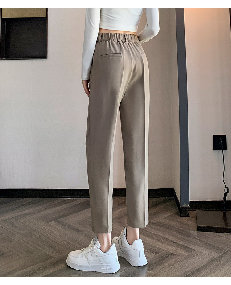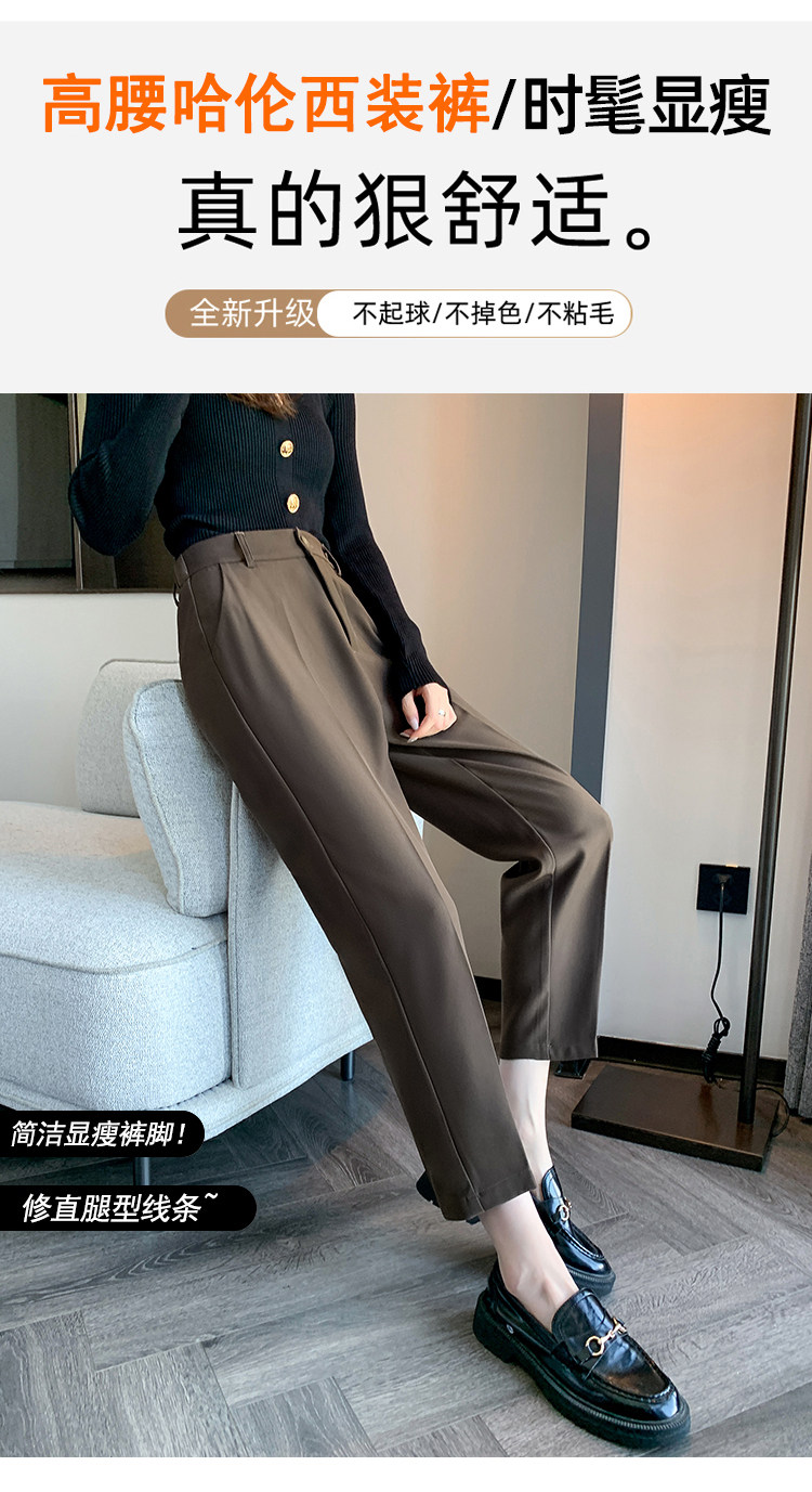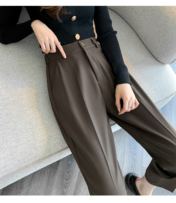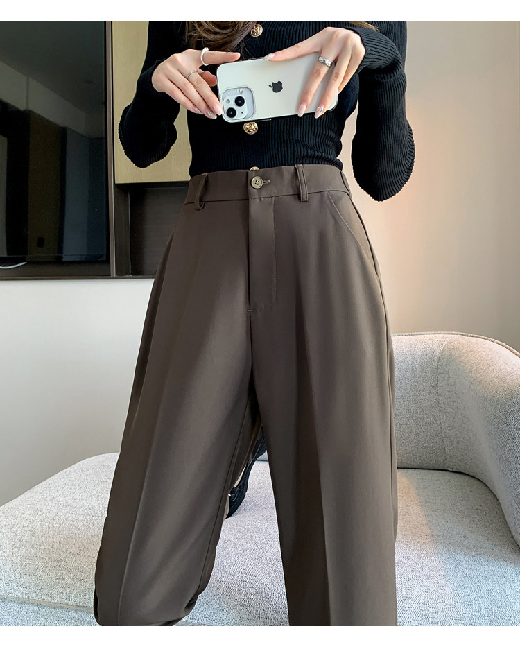 松緊腰咖色西裝褲女春秋季高腰寬鬆直筒小個子八分九分哈倫菸琯褲