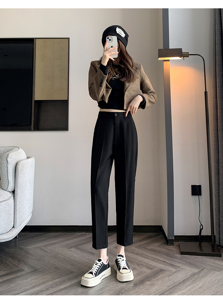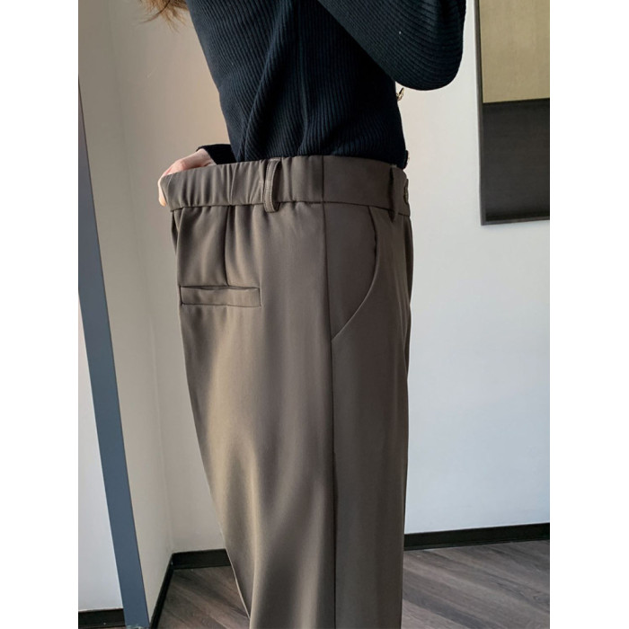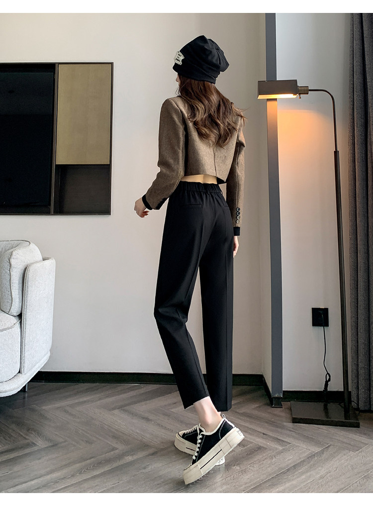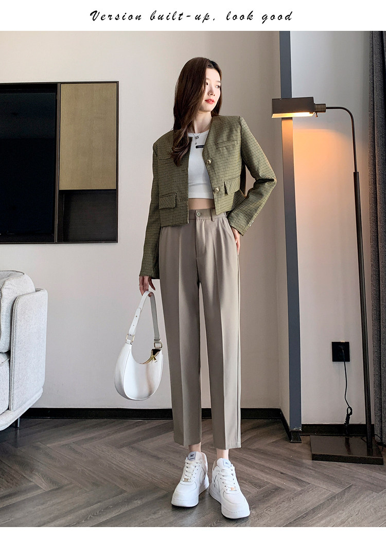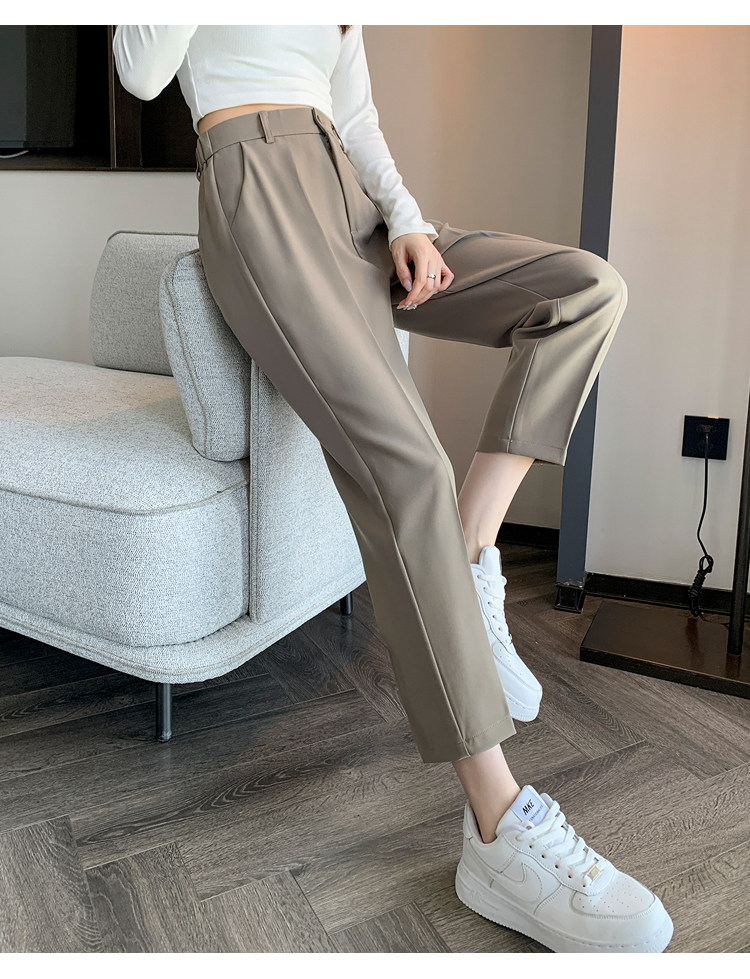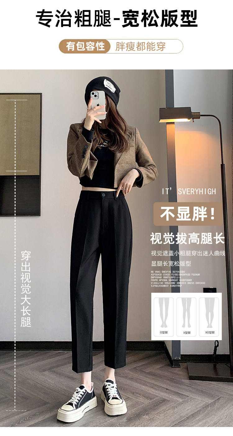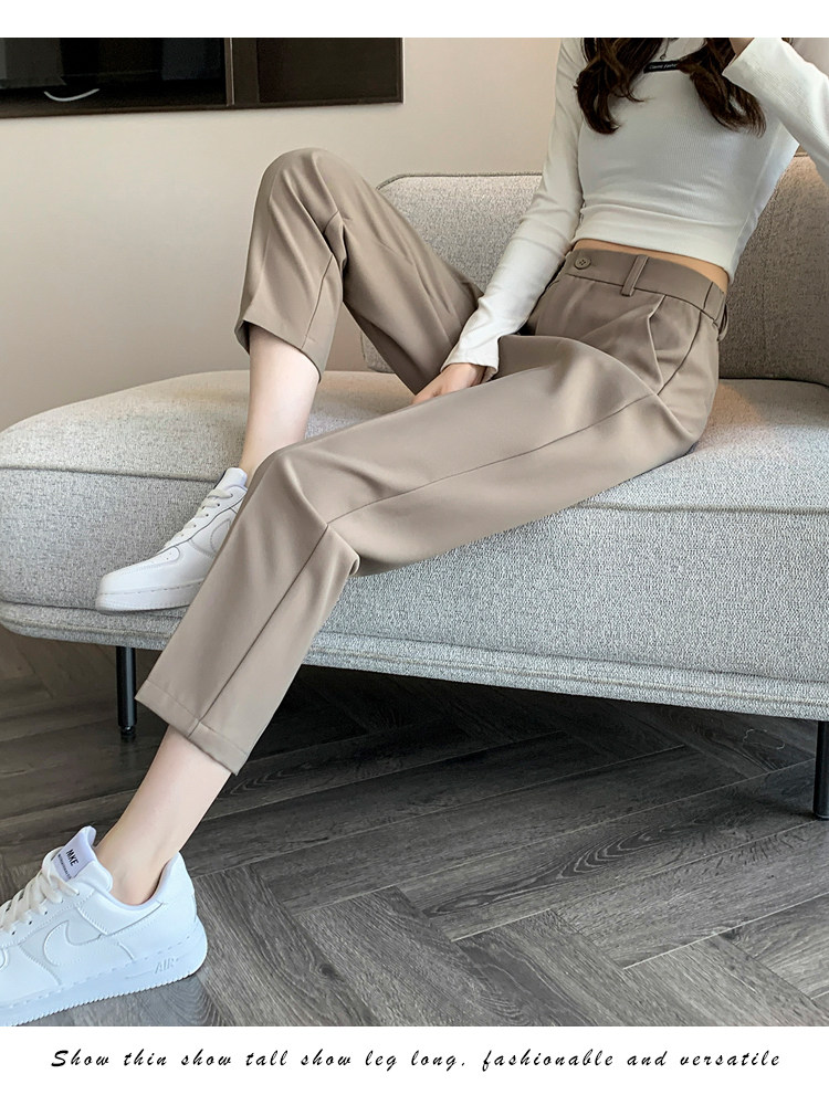 松緊腰咖色西裝褲女春秋季高腰寬鬆直筒小個子八分九分哈倫菸琯褲
