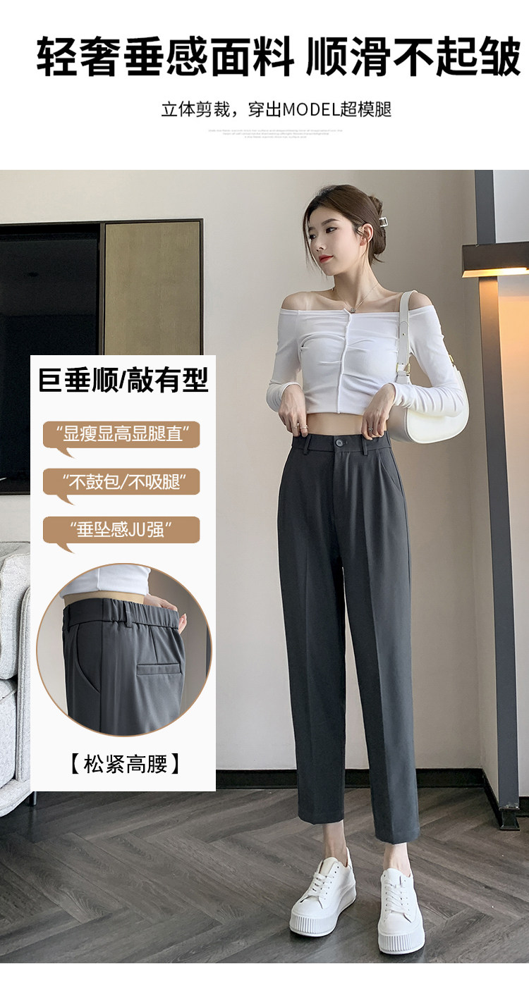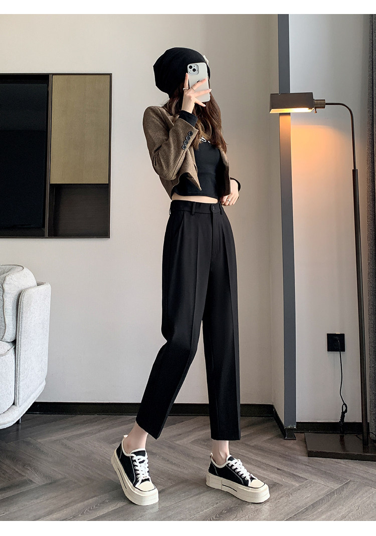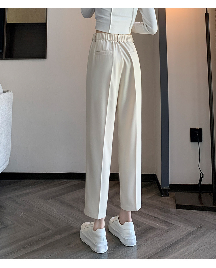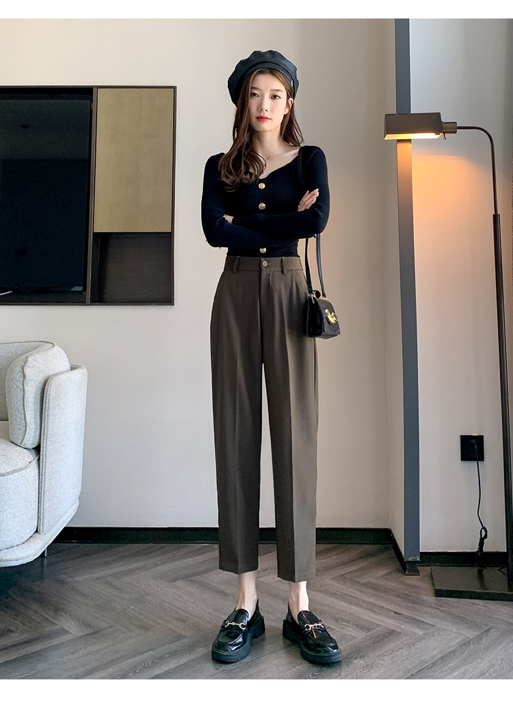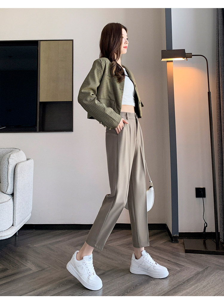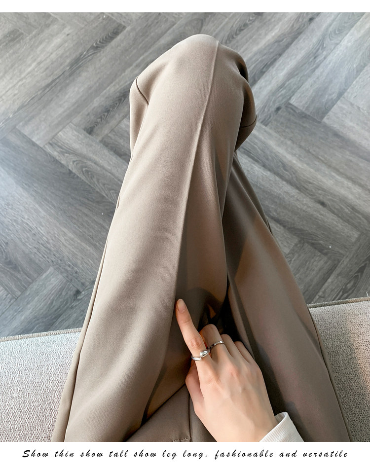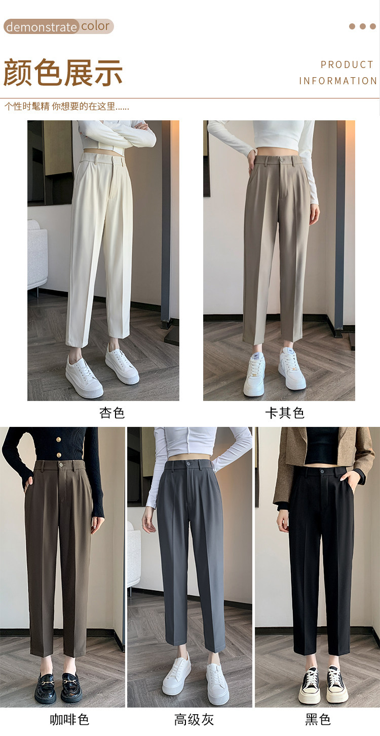 松緊腰咖色西裝褲女春秋季高腰寬鬆直筒小個子八分九分哈倫菸琯褲