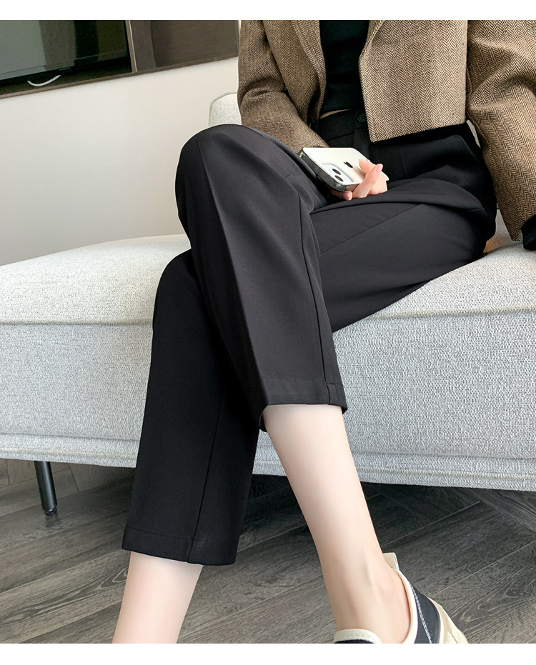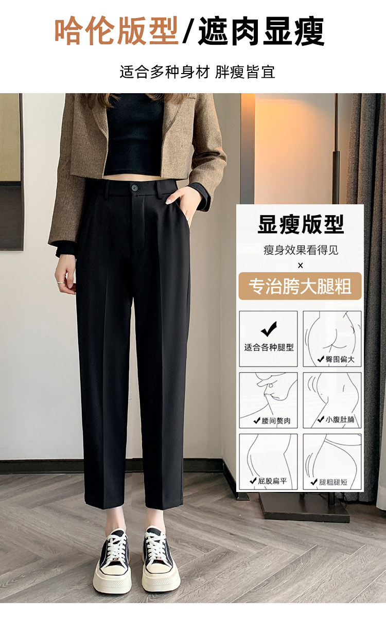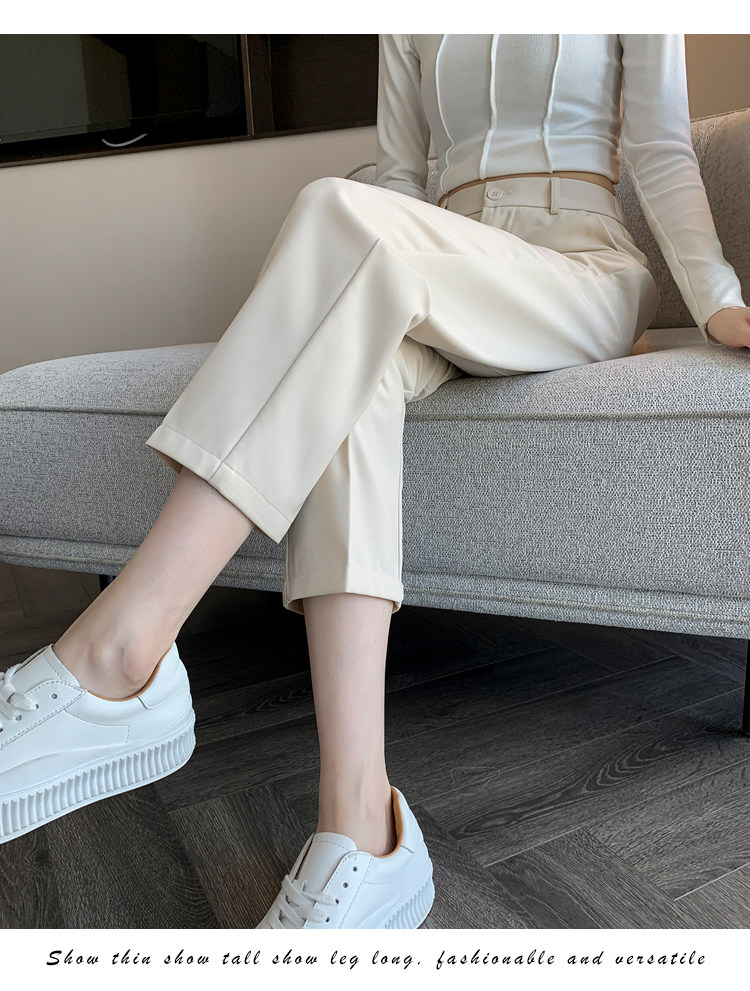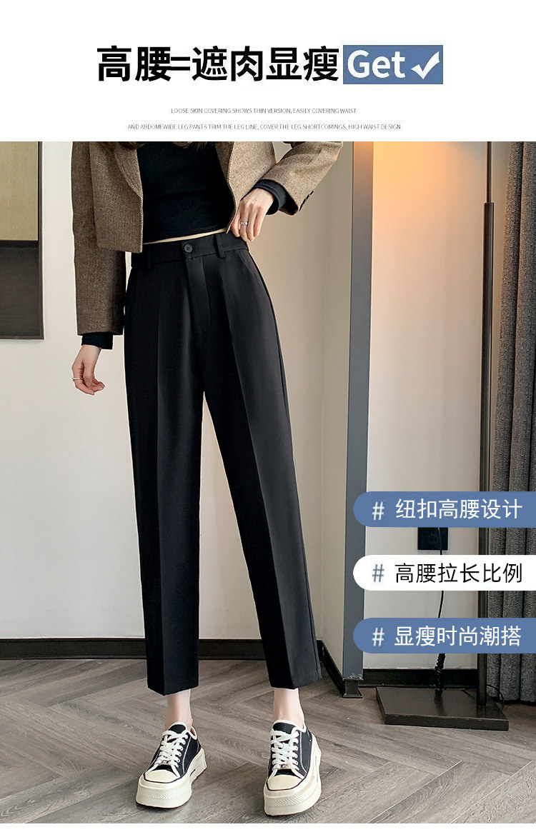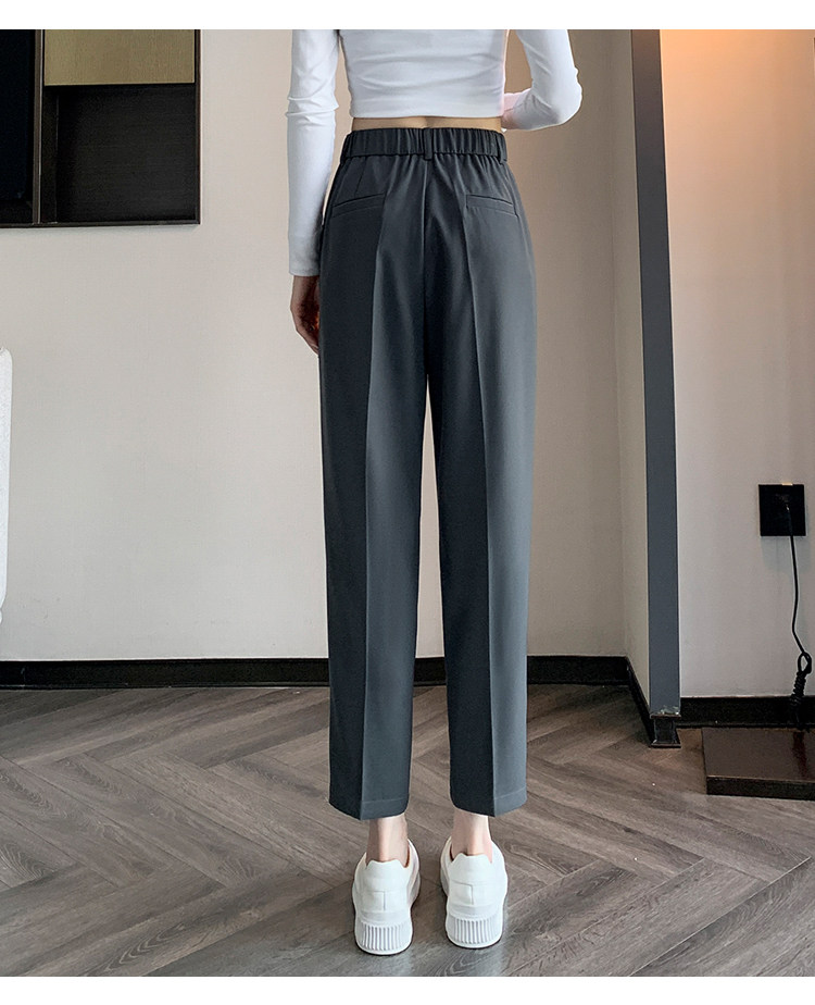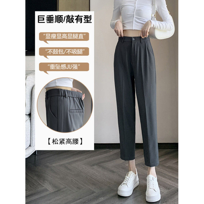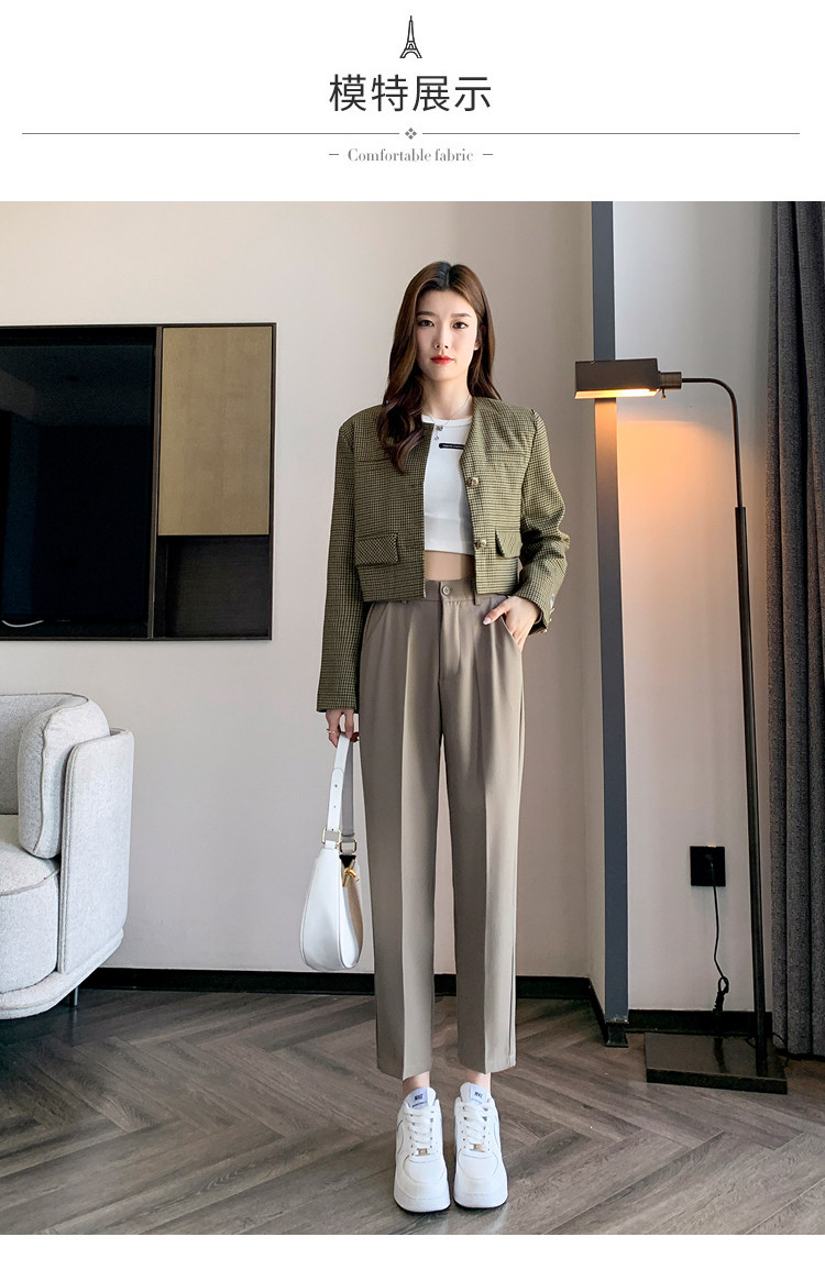 松緊腰咖色西裝褲女春秋季高腰寬鬆直筒小個子八分九分哈倫菸琯褲