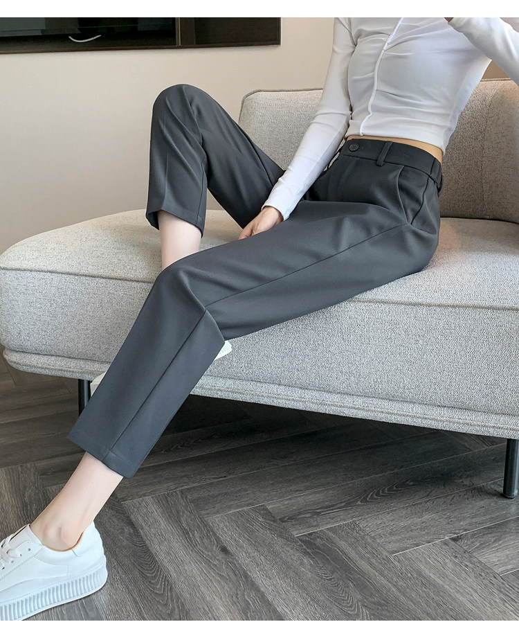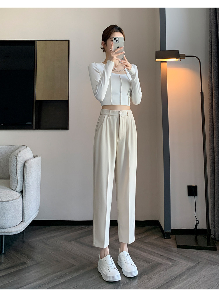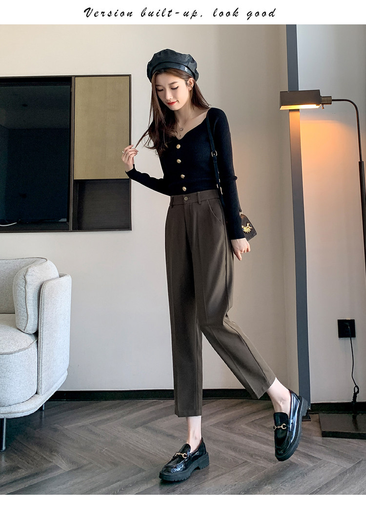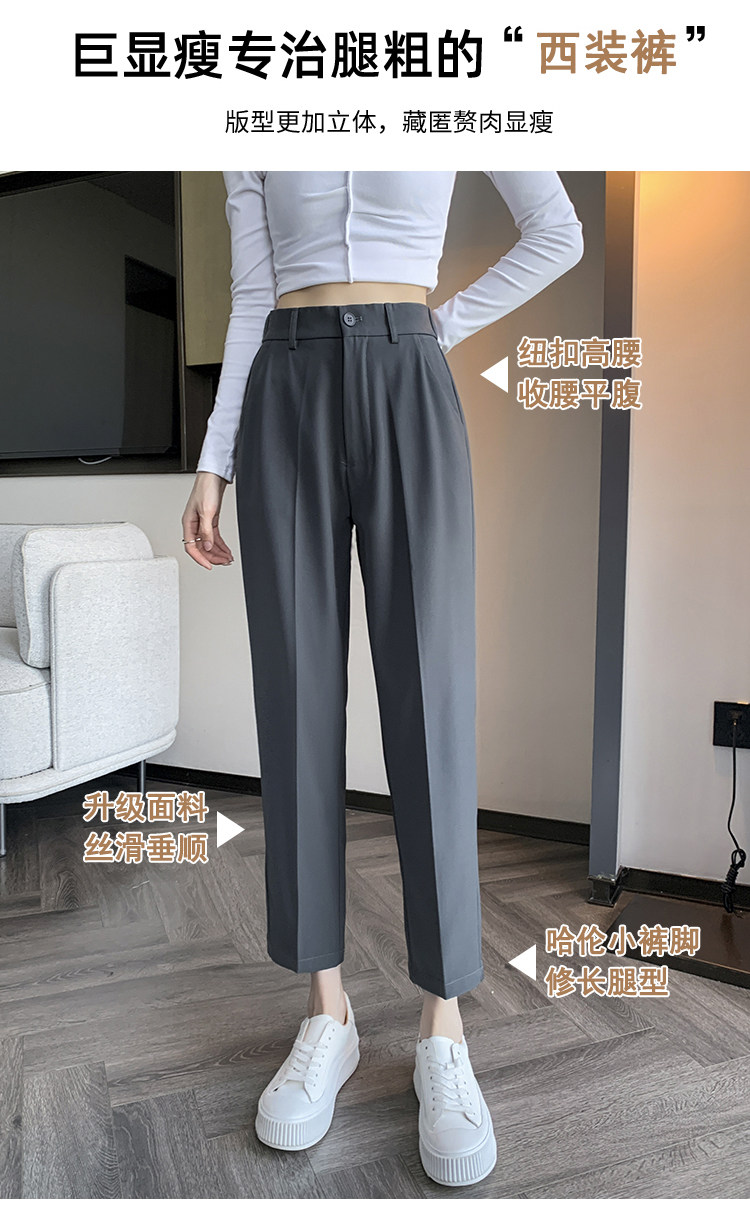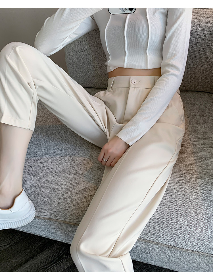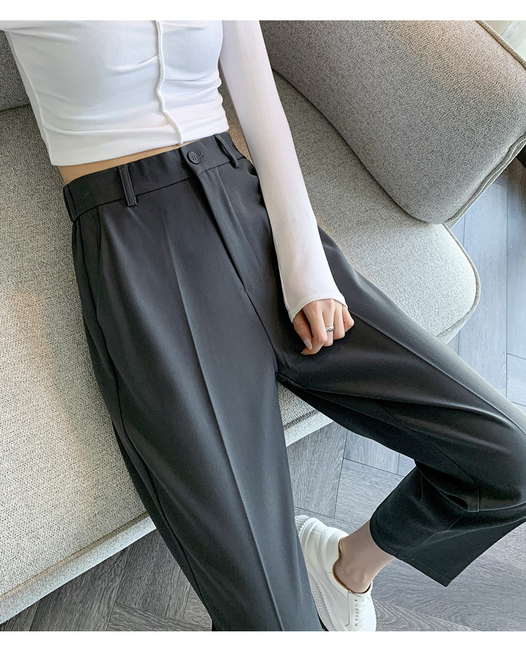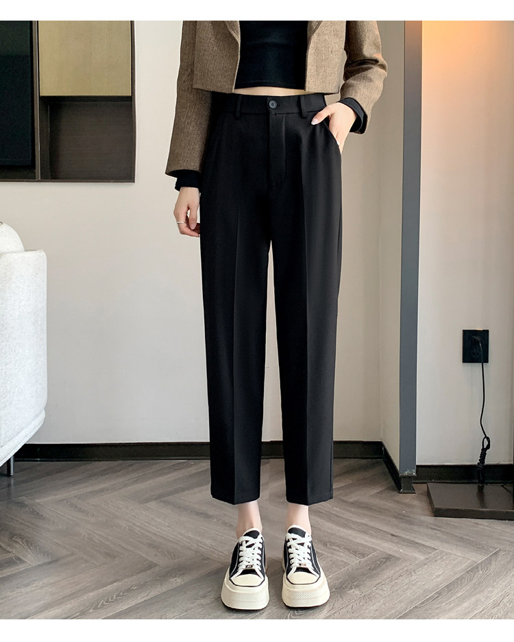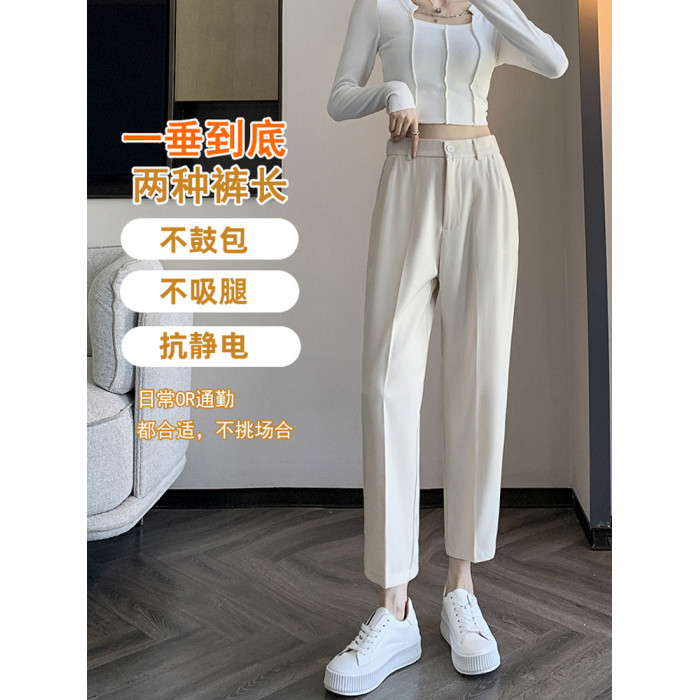 松緊腰咖色西裝褲女春秋季高腰寬鬆直筒小個子八分九分哈倫菸琯褲