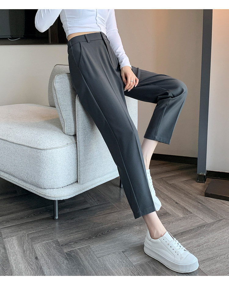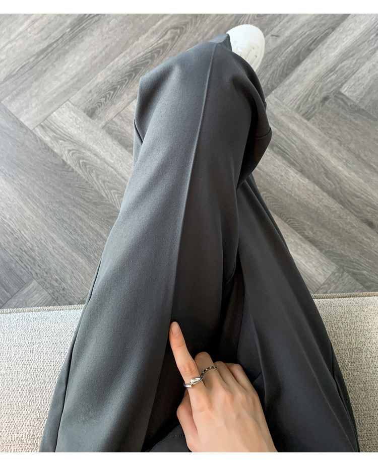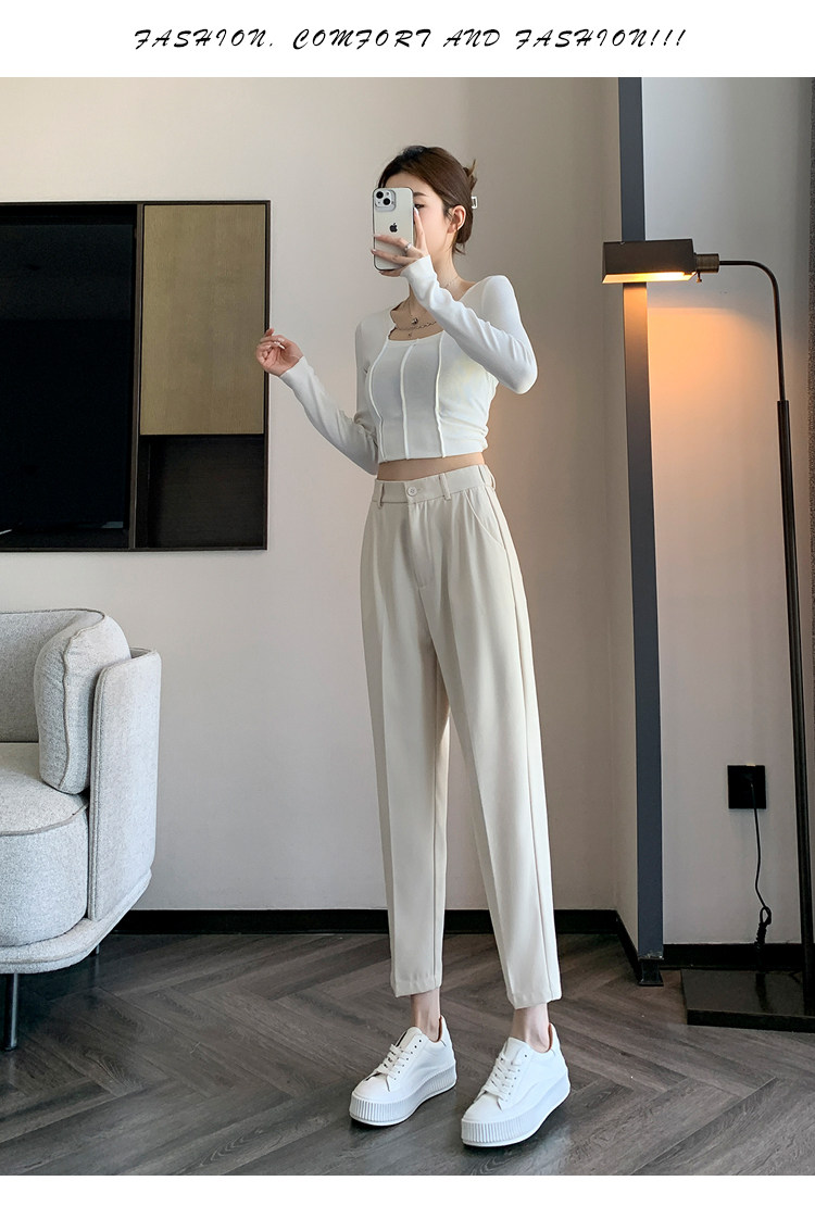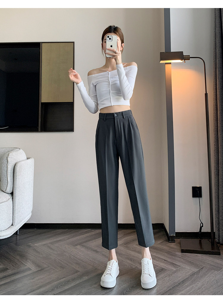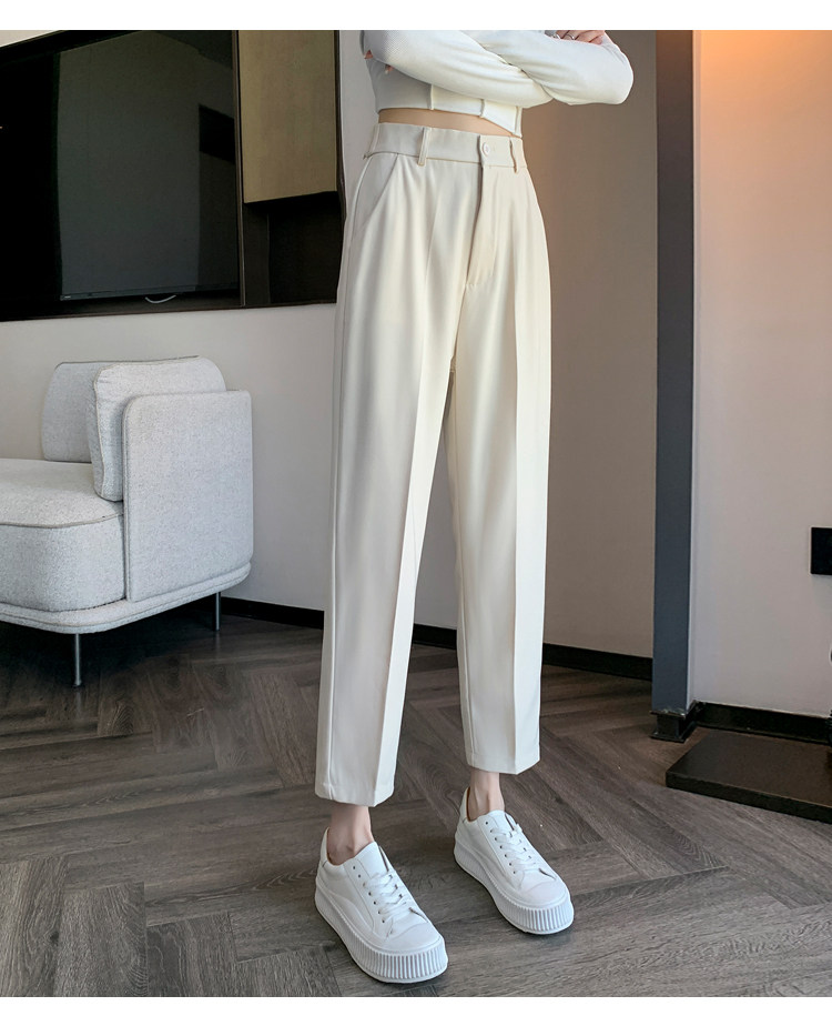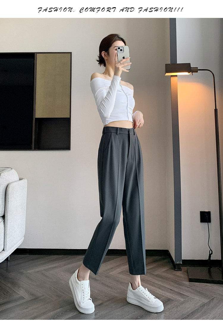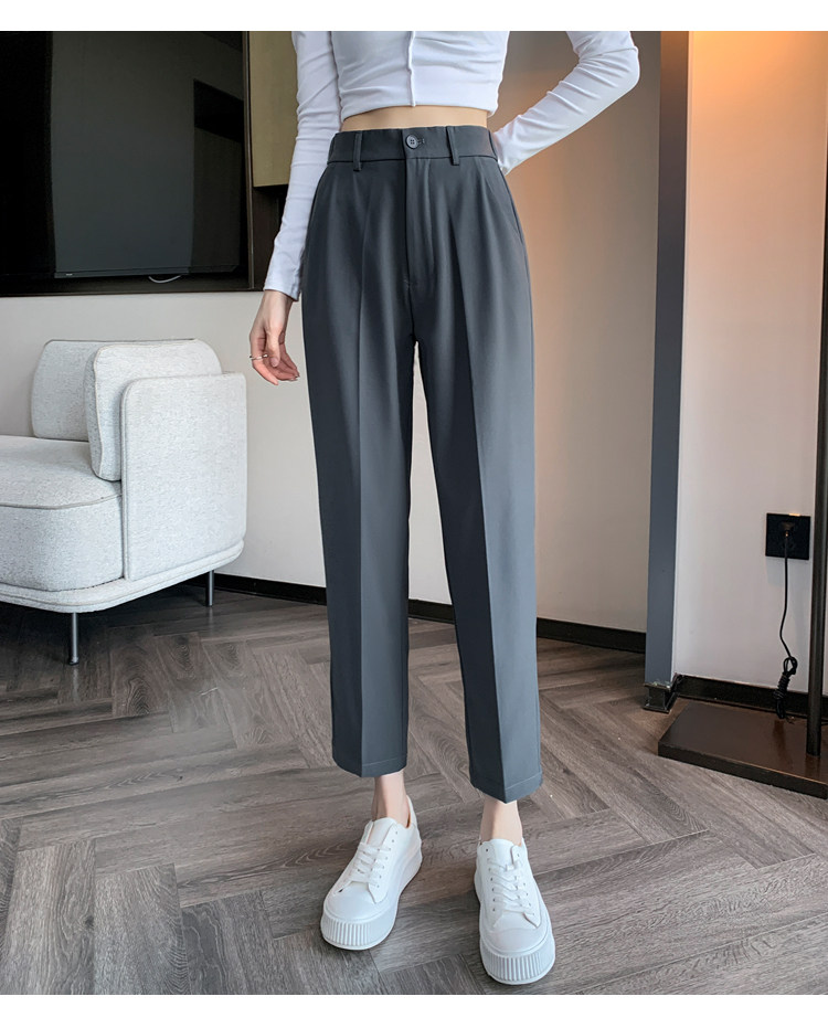 松緊腰咖色西裝褲女春秋季高腰寬鬆直筒小個子八分九分哈倫菸琯褲