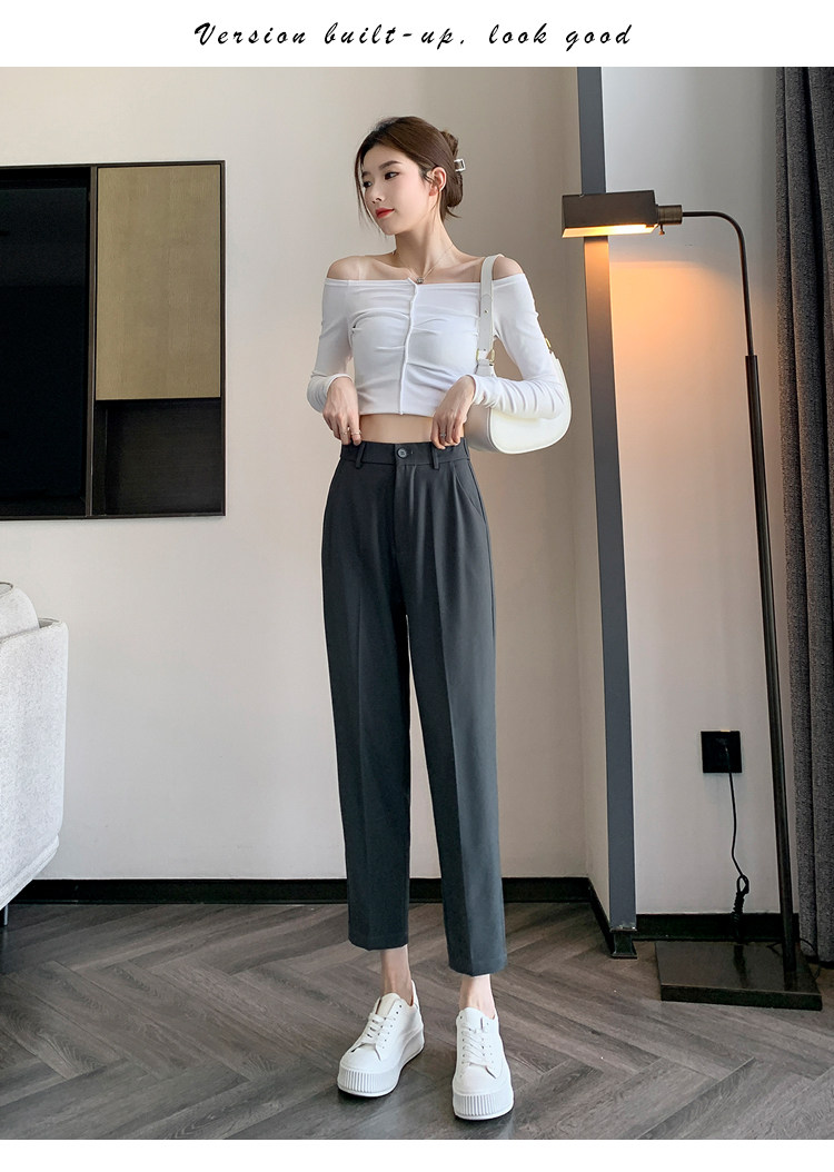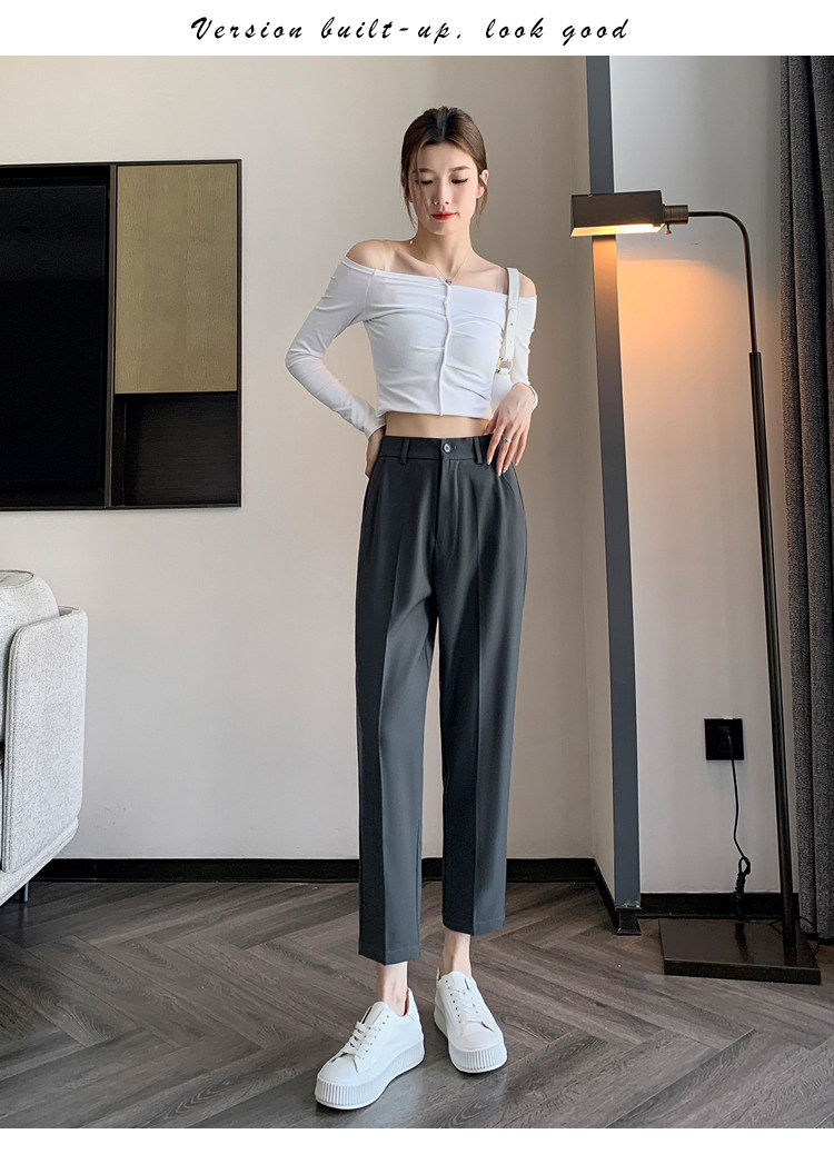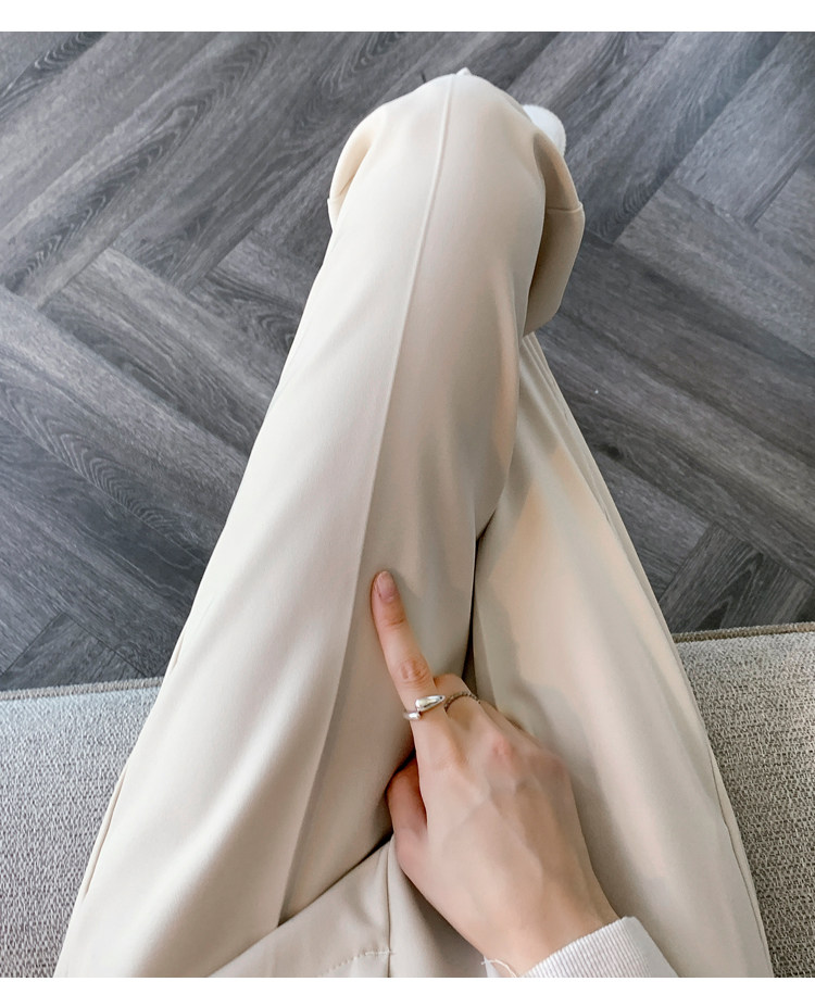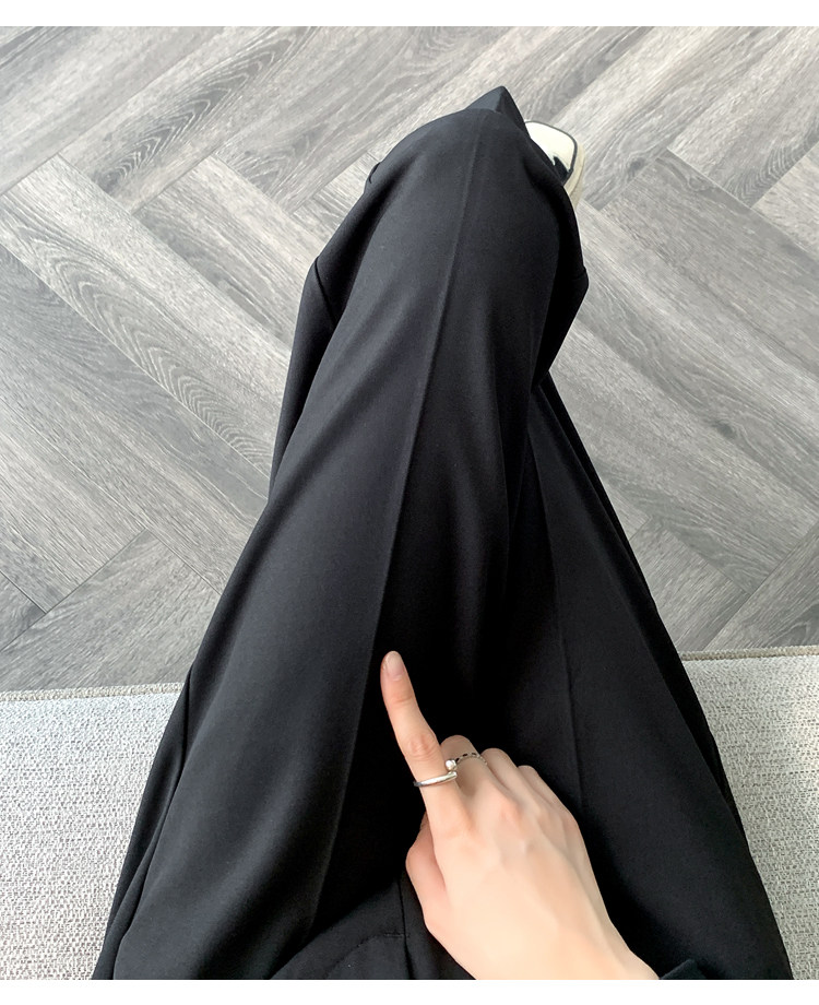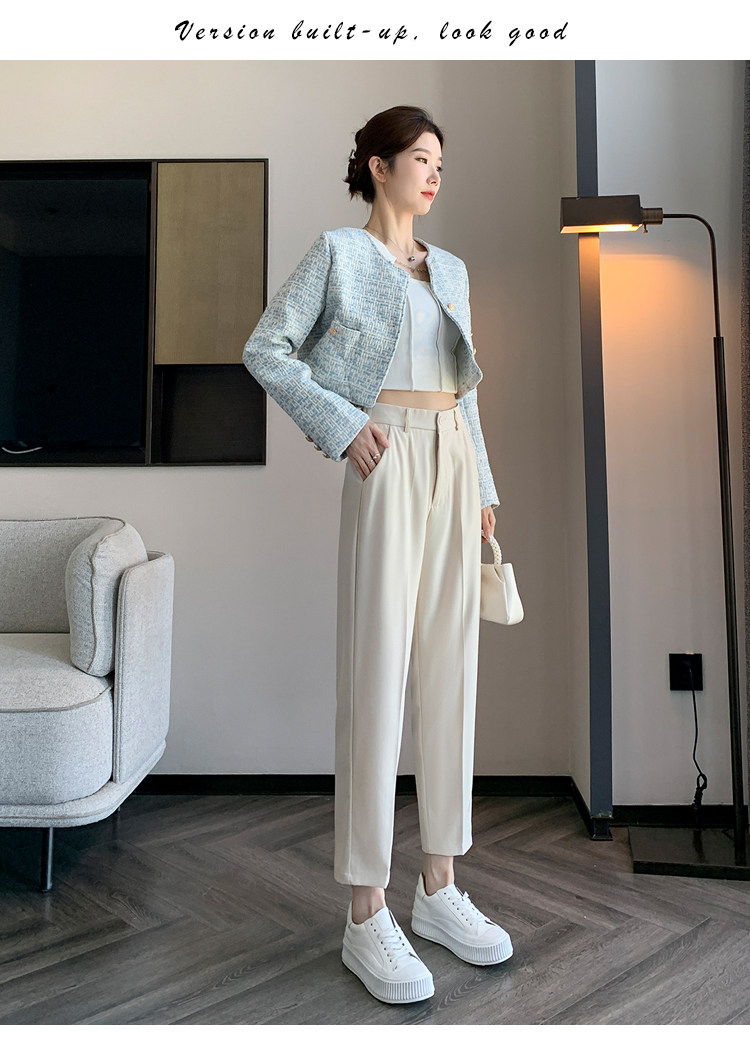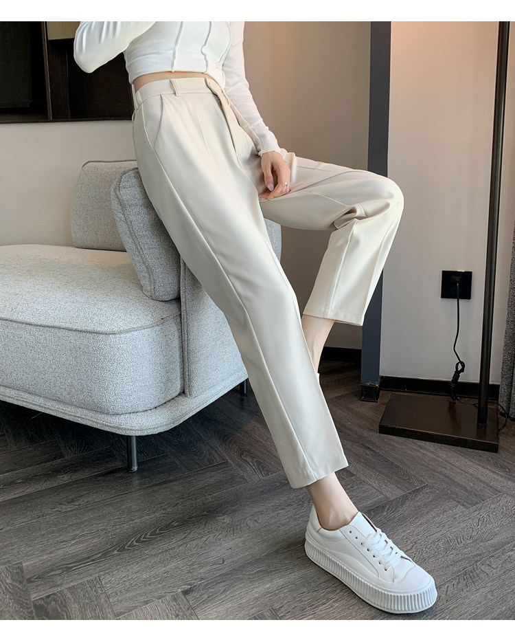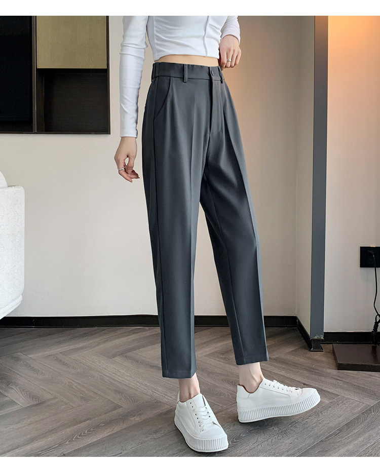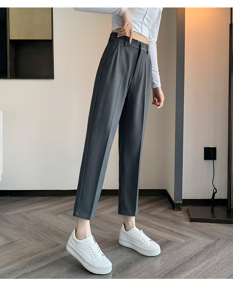 松緊腰咖色西裝褲女春秋季高腰寬鬆直筒小個子八分九分哈倫菸琯褲
