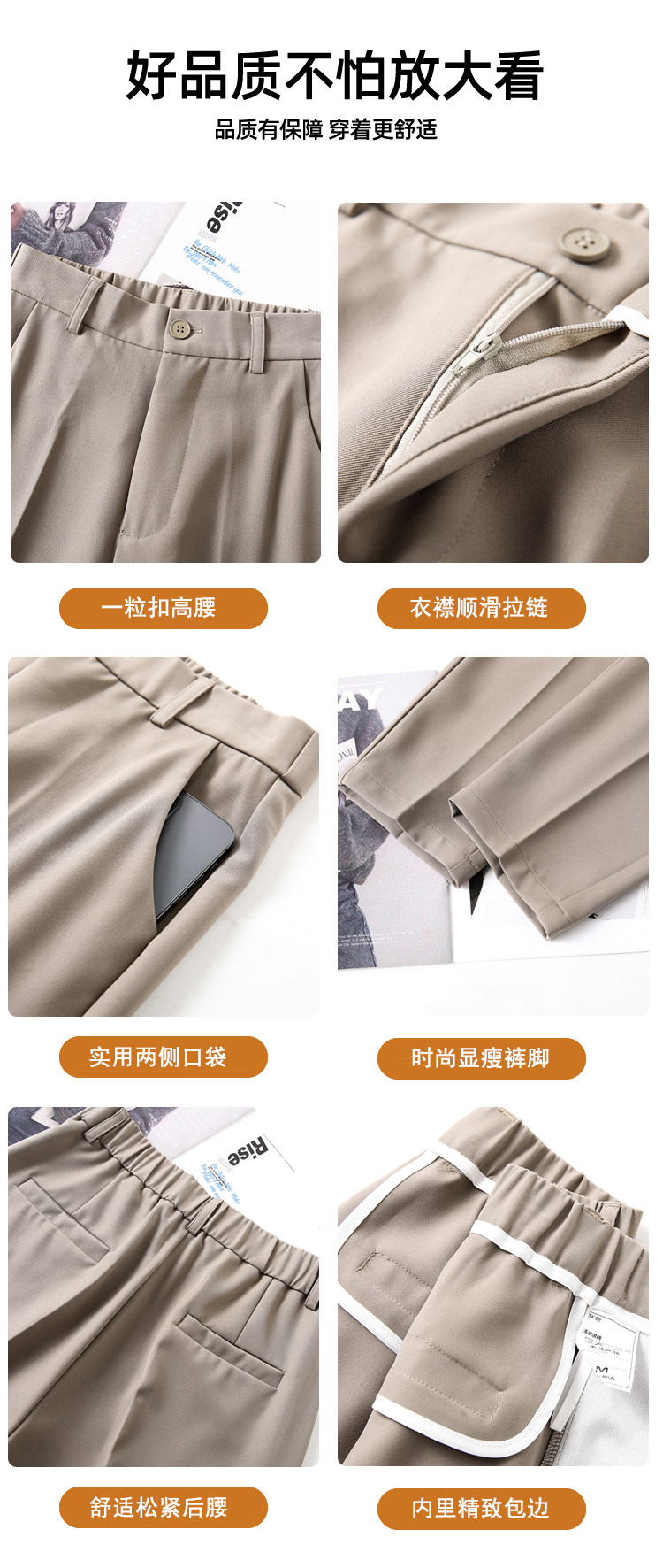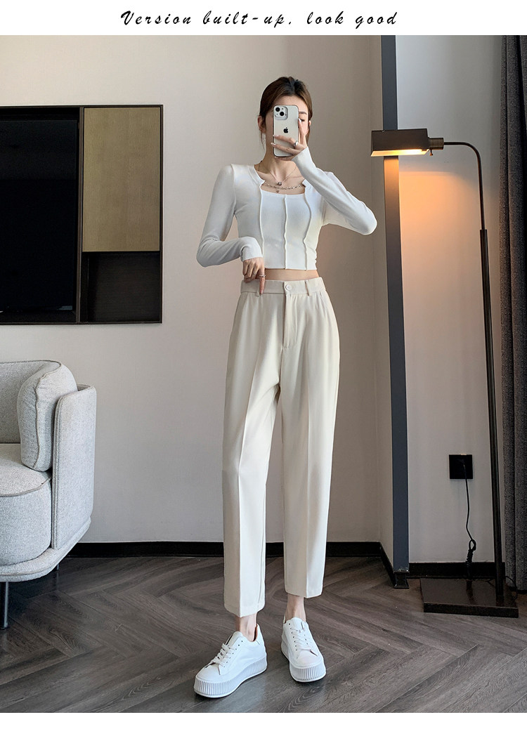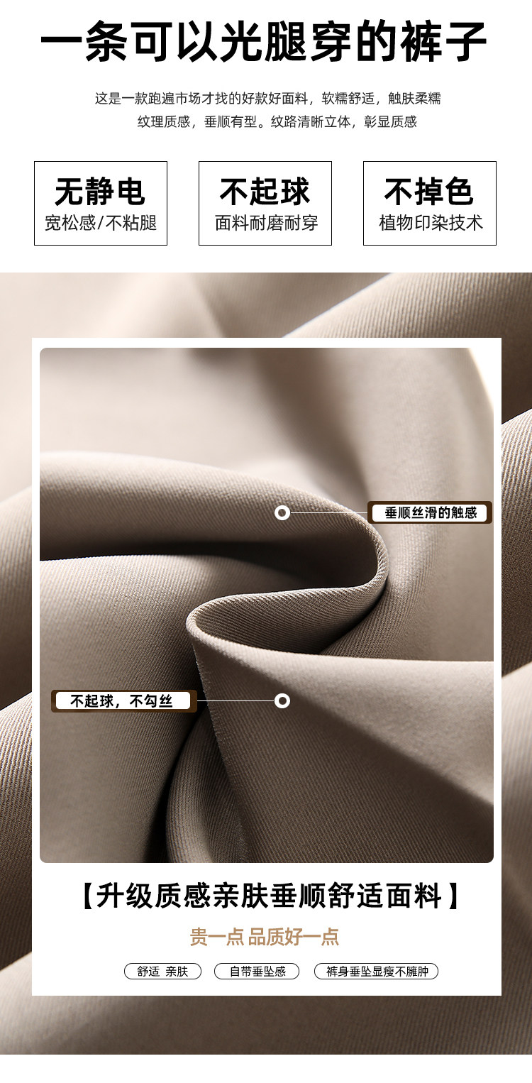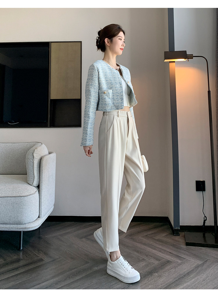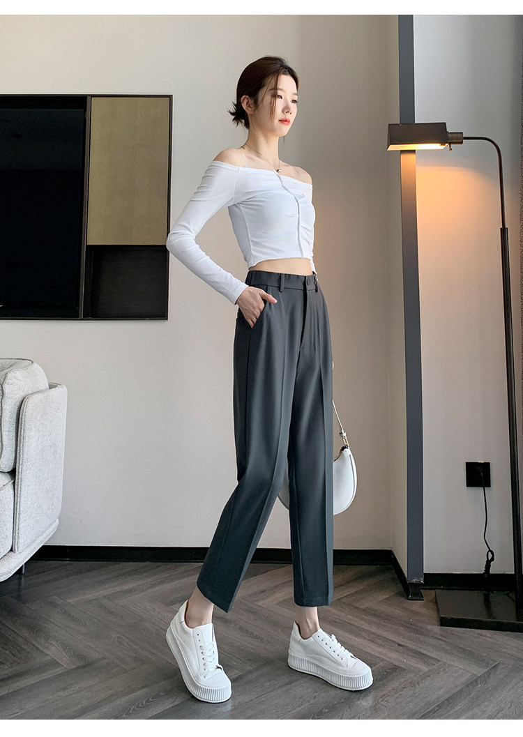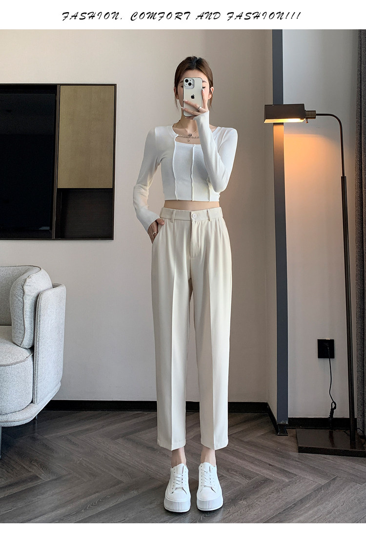 松緊腰咖色西裝褲女春秋季高腰寬鬆直筒小個子八分九分哈倫菸琯褲